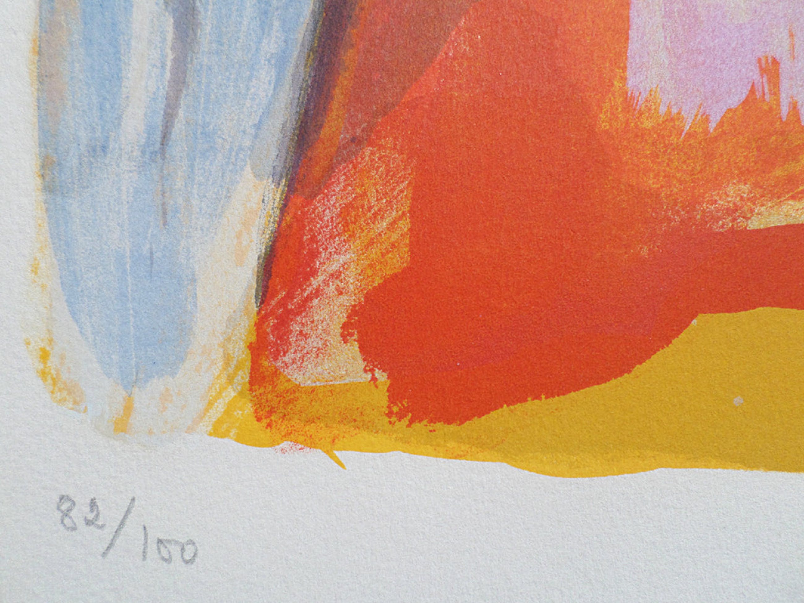 Mooie negenkleuren litho van Bram van Velde uit 1972. Handgesigneerd rechtsonder en genummerd linksonder. Dit is nummer 82 uit een oplage van 100 stuks. Deze litho staat afgebeeld in het boek Bram van Velde Les Lithographies I 1923-1973 (YR no. 75).