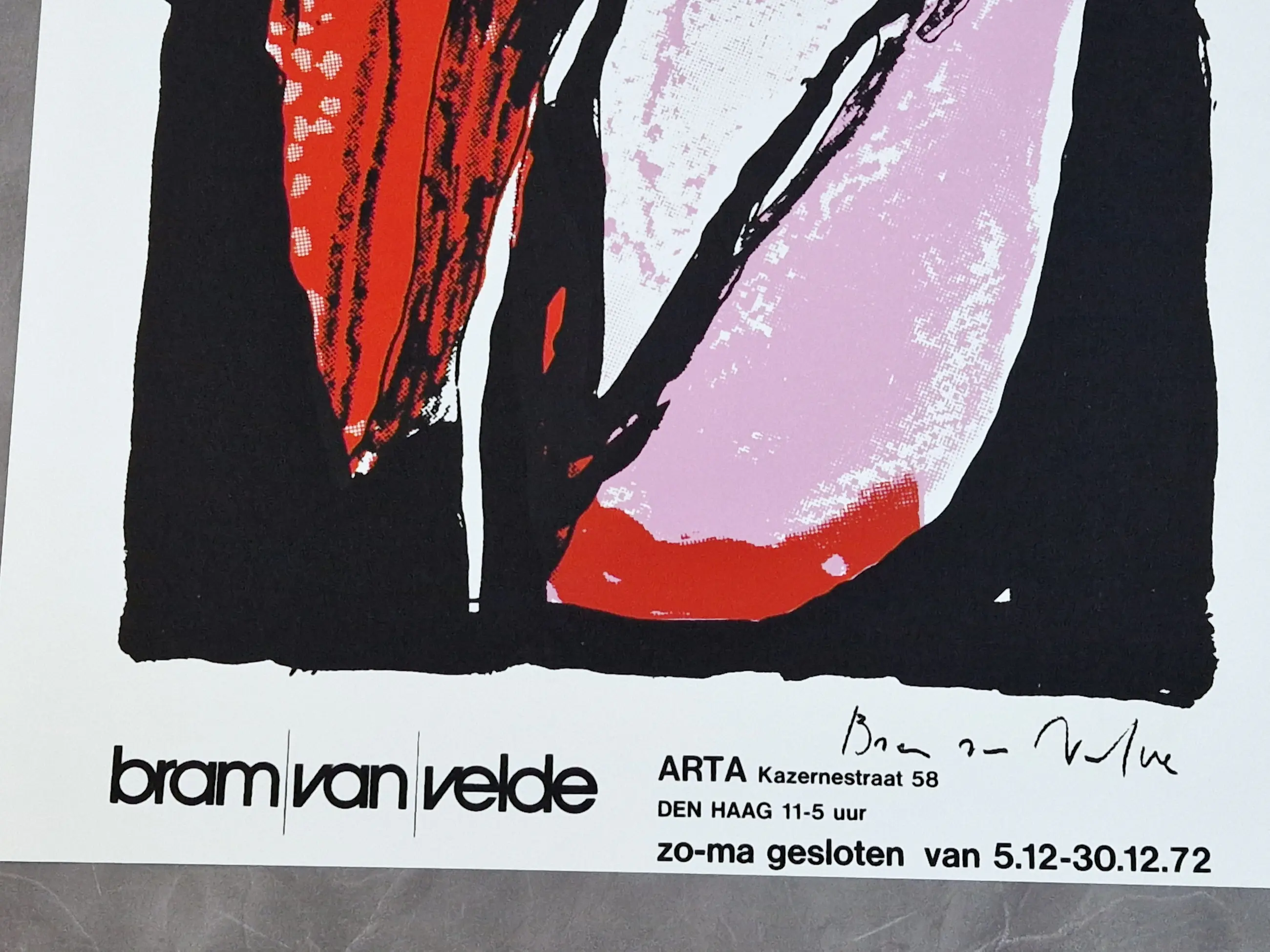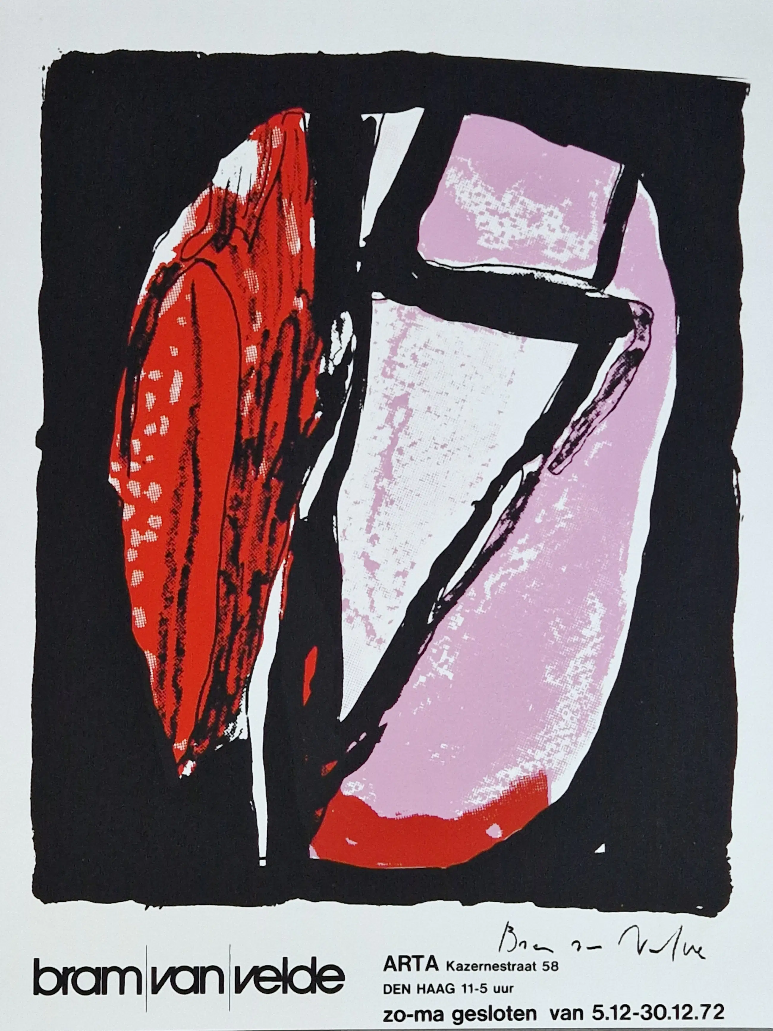 - Bram van Velde (1895-1981) is een Nederlandse kunstenaar die het grootste deel van zijn leven in het buitenland heeft doorgebracht. Nadat zijn vader het gezin had verlaten, moest de jonge Van Velde al vroeg aan het werk om zijn familie te kunnen onderhouden. Bij het schilder- en decoratie-atelier Van Schaijk in Den Haag kopieerde hij op twaalfjarige leeftijd kunstwerken van oude meesters en decoreerde hij meubels en lampenkappen. Zijn werkgever zag dat hij talent had en stimuleerde hem zich verder te ontwikkelen. Aan het begin van de jaren twintig reisde hij daarom af naar de kunstenaarskolonie van Worpswede in Duitsland. Daar maakte hij een aantal expressionistische werken en zijn eerste litho. In 1924 ging hij samen met zijn broer naar Parijs. In deze stad kreeg zijn schilderscarrière steeds meer vorm. Na Parijs verhuisde hij naar het Corsica. Dit Franse eiland werd een grote inspiratiebron voor zijn stillevens.