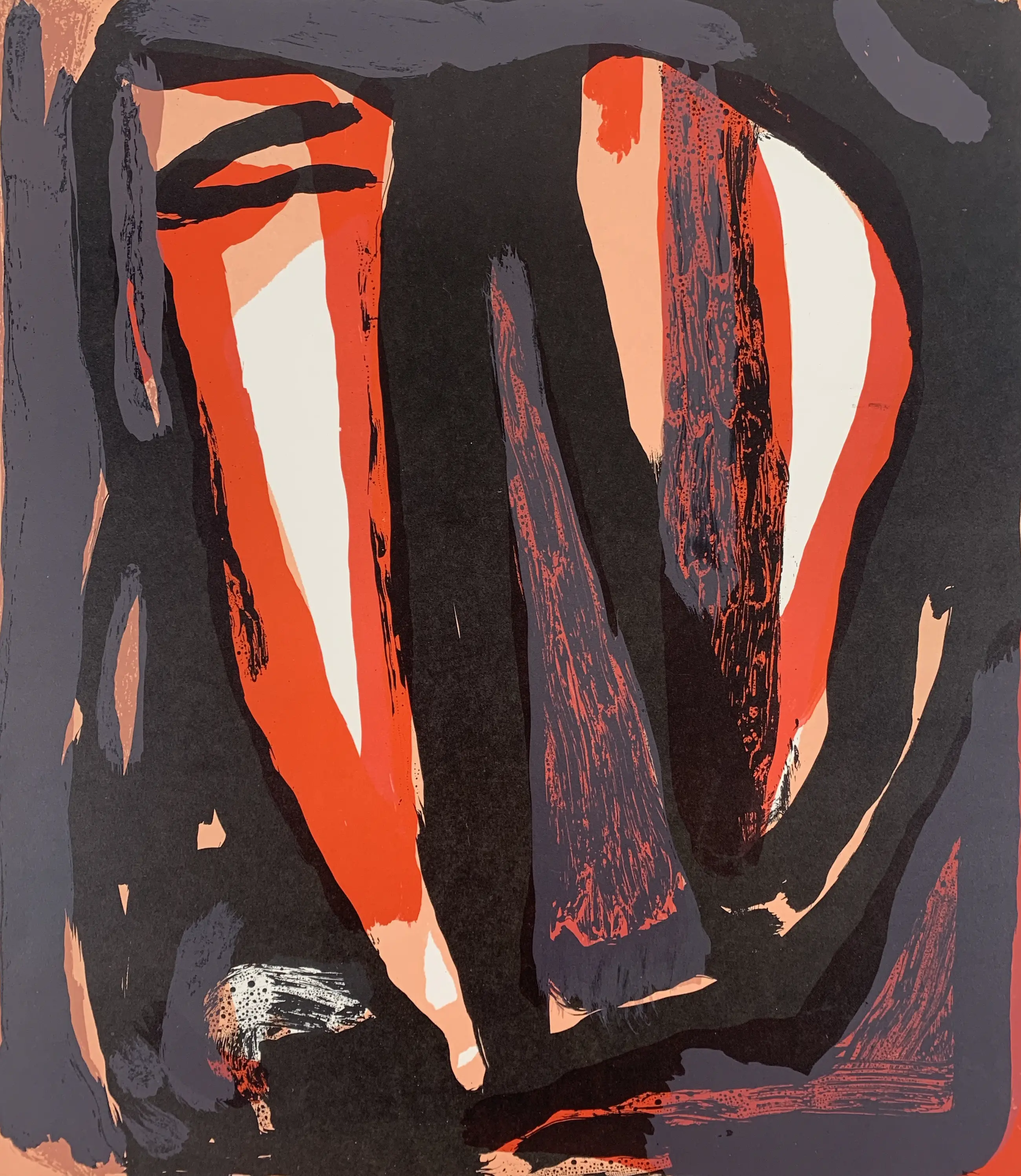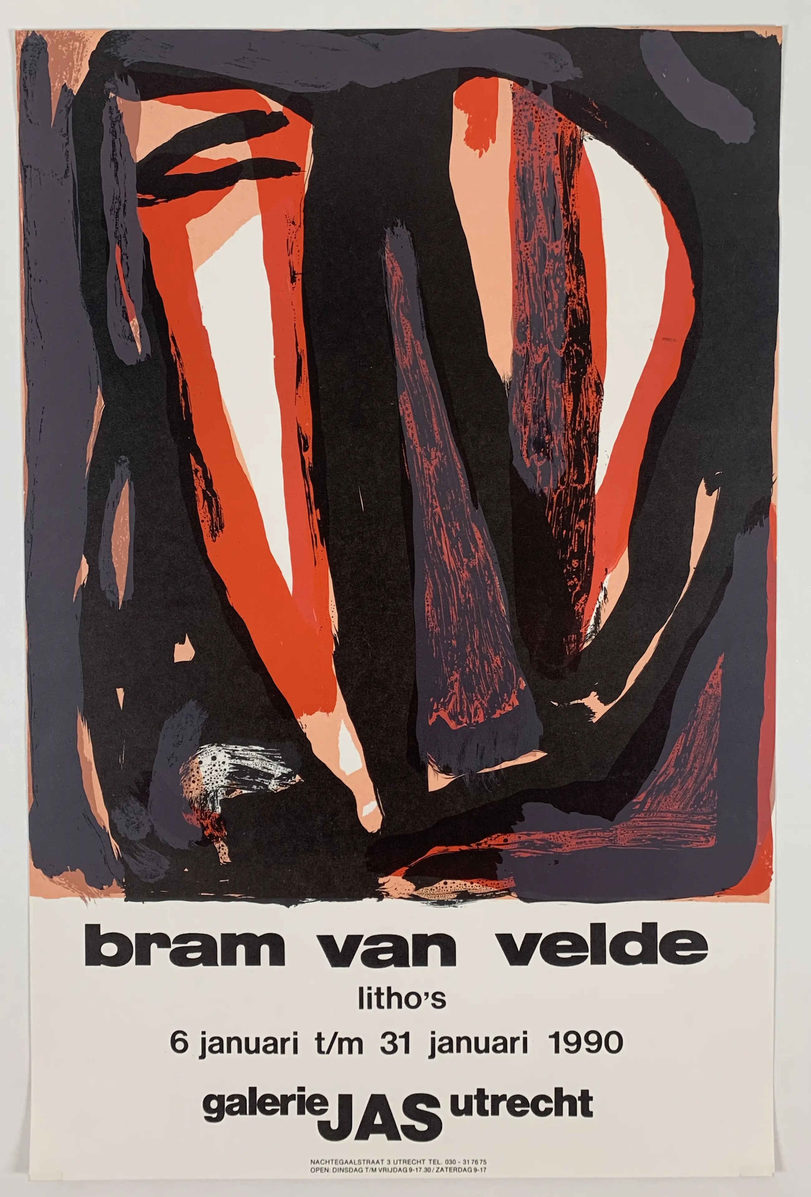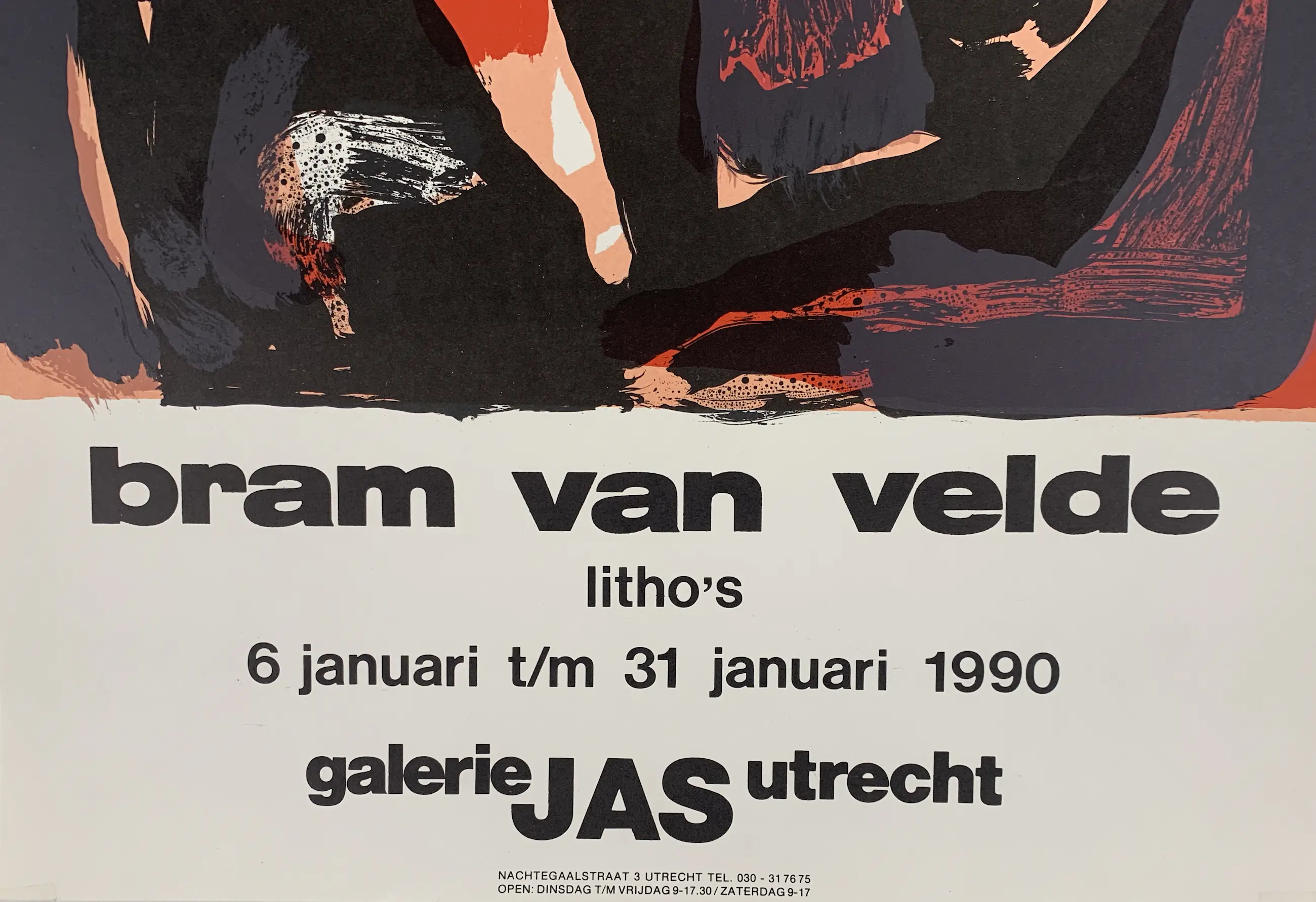 Mooie gelithografeerde affiche van Bram van Velde voor zijn tentoonstelling bij Galerie Jas in Utrecht 1990.