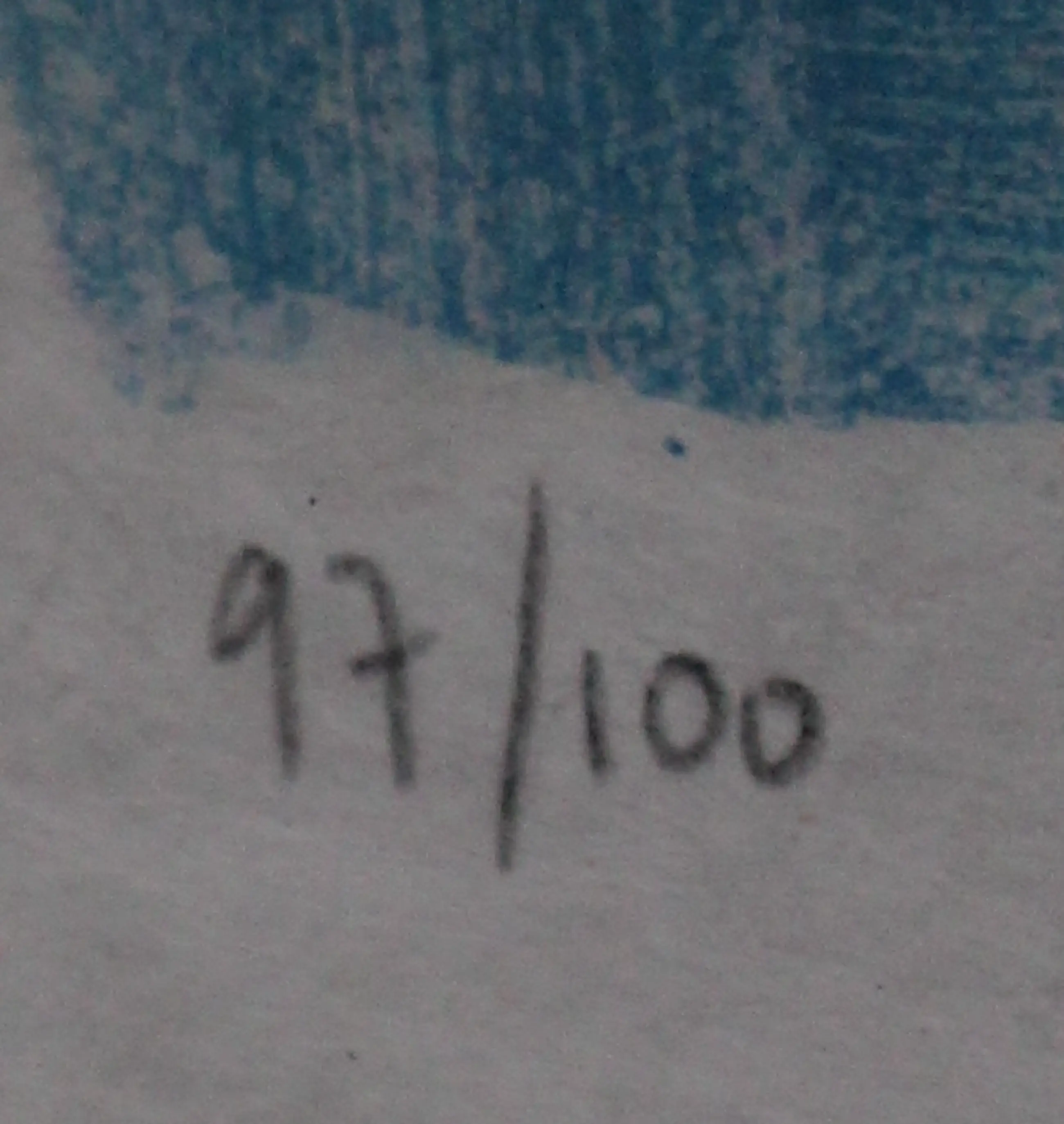 Lijsten: Beschadigingen aan lijsten worden niet beschreven. Indien een werk achter glas is ingelijsten het glas is kapot, zal dit wel vermeld worden. Bij foto's van ingelijste werken kan spiegeling zichtbaar zijn.