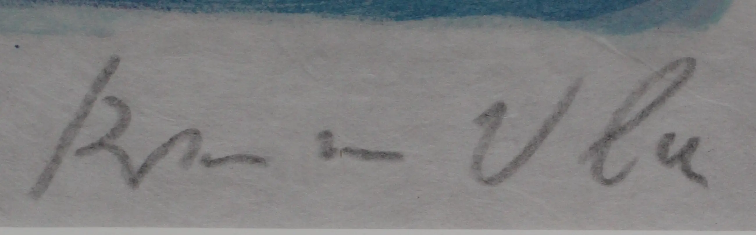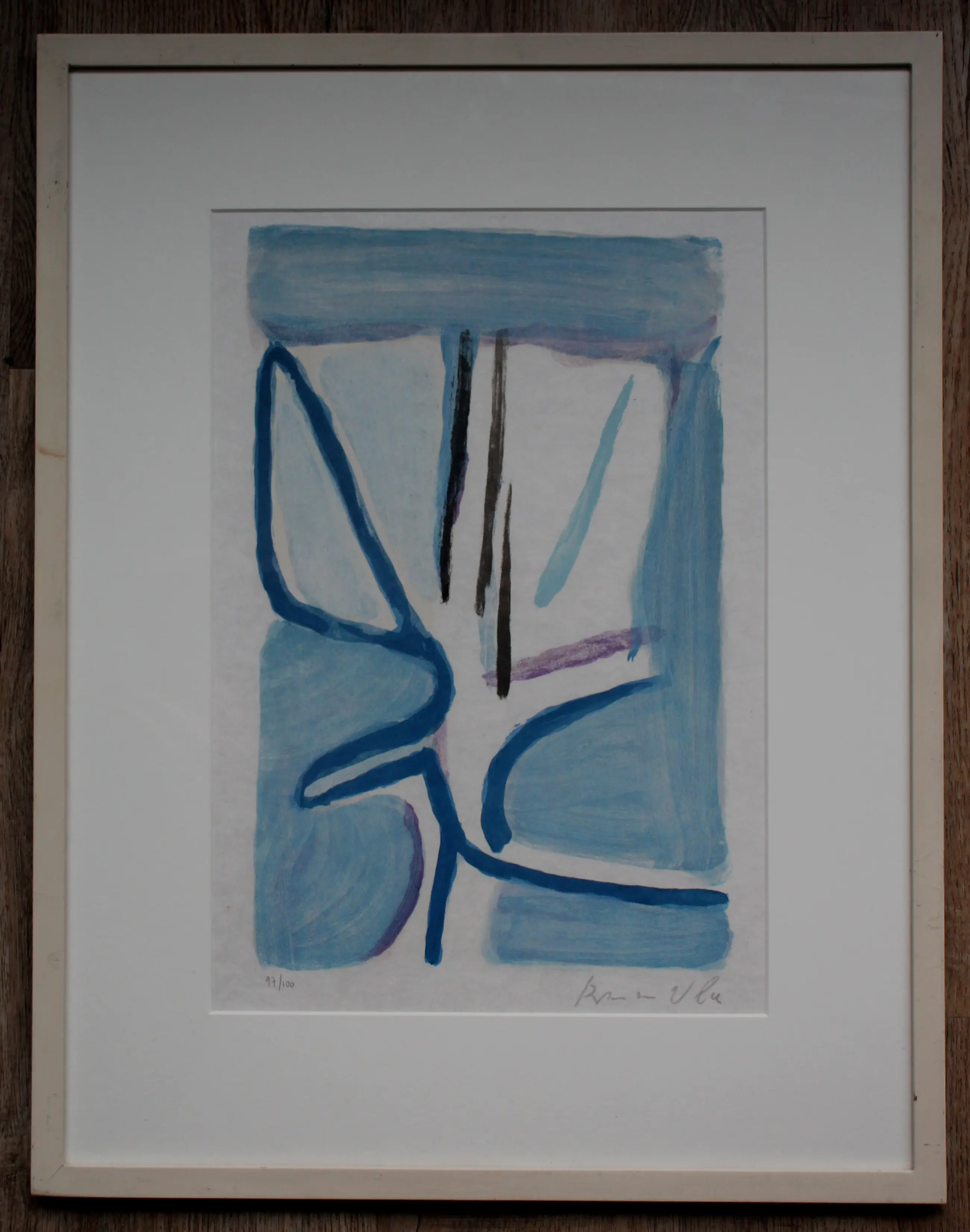 Ingelijste litho van Bram van Velde. Titel: "Fleur légère". Oplage: 97/100.