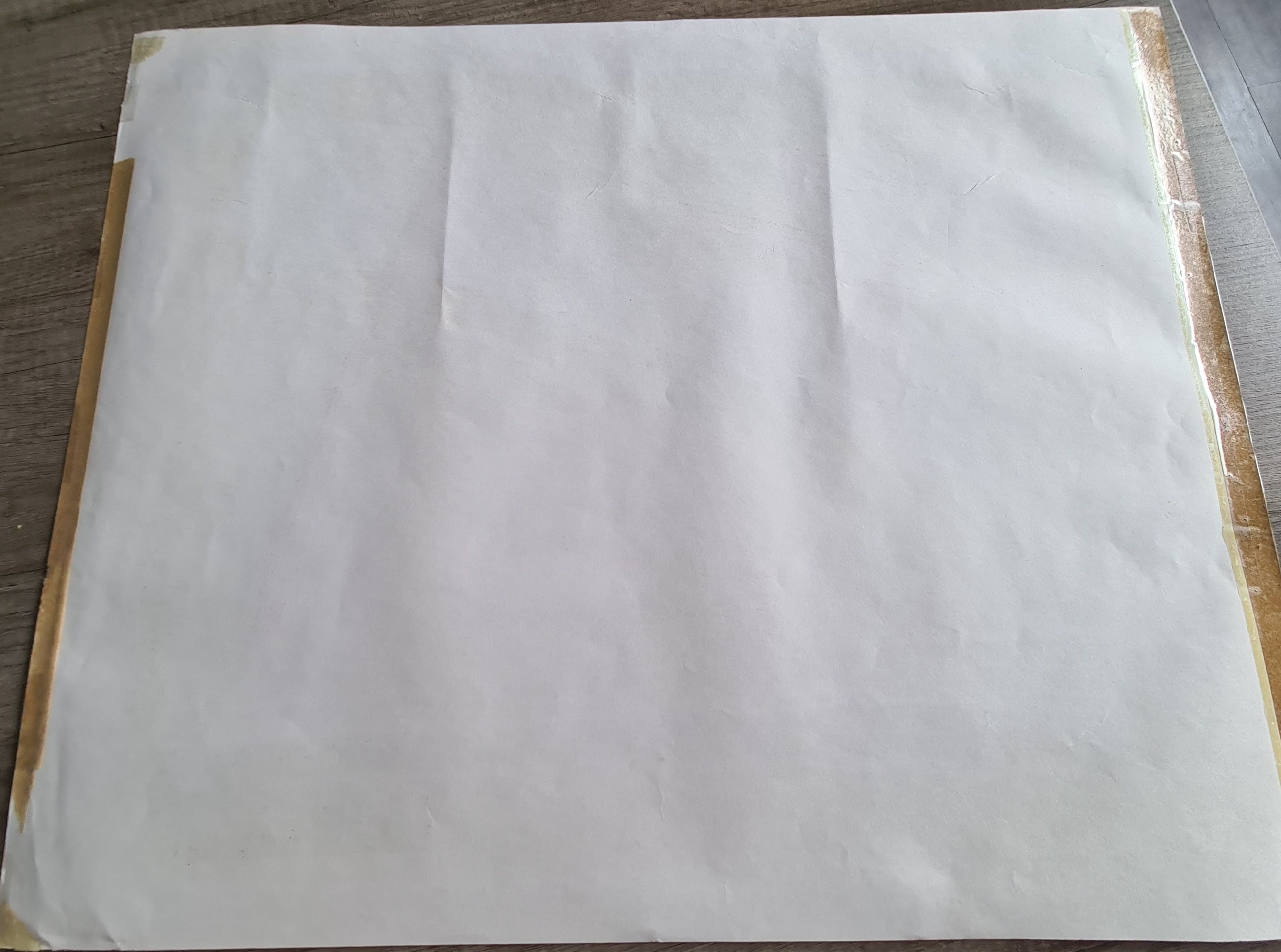 werk is beschadigd, gele vlekjes op het blad. De randen zijn ook hier en daar beschadigd. Is te herstellen door een expert.