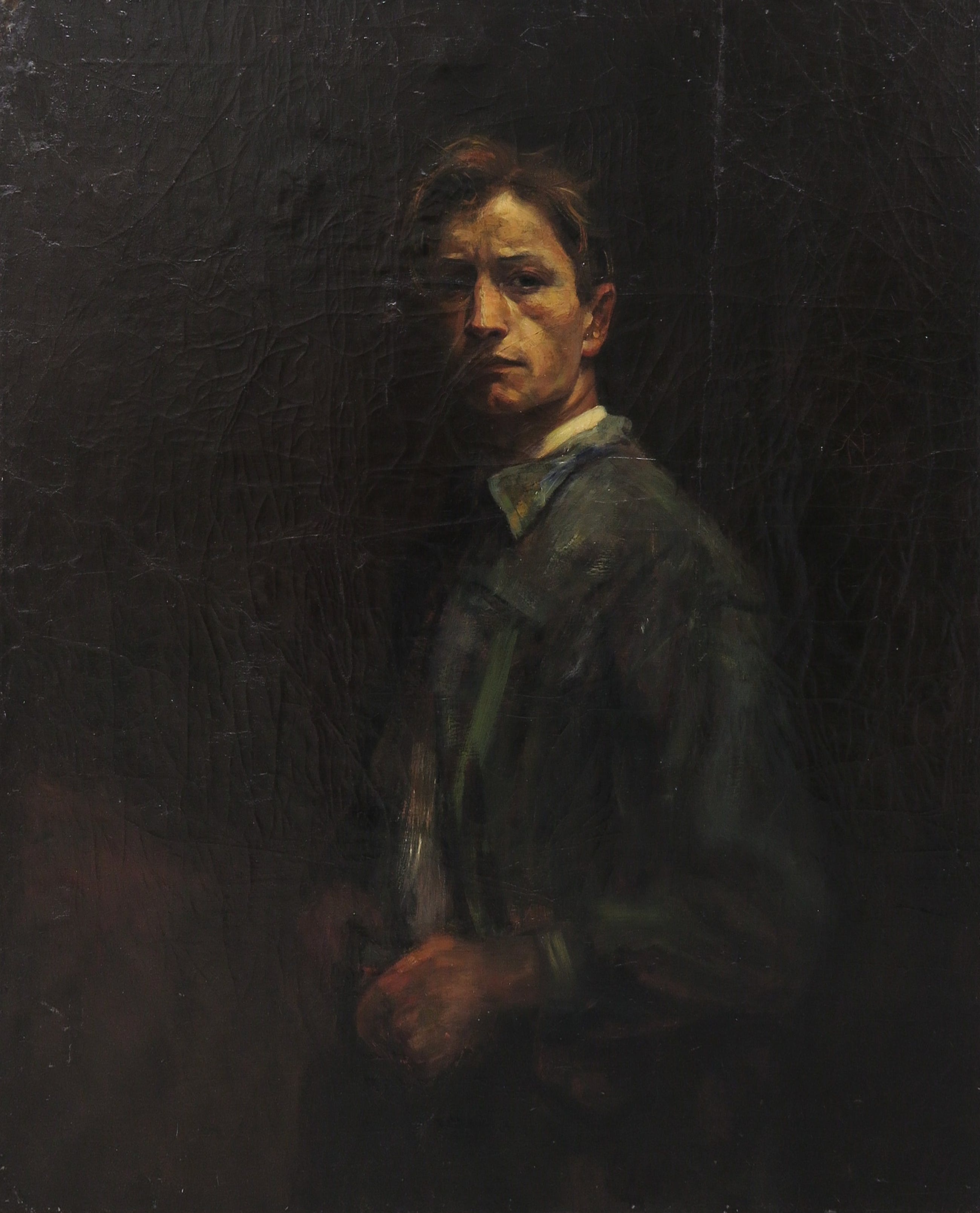 Groot portret in olieverf en vroeg werk van Bram van Velde. Dit werk komt uit de periode dat Van Velde in het Mauritshuis oude meesters kopieerde, omdat hij een traditionele kunstopleiding niet kon betalen.