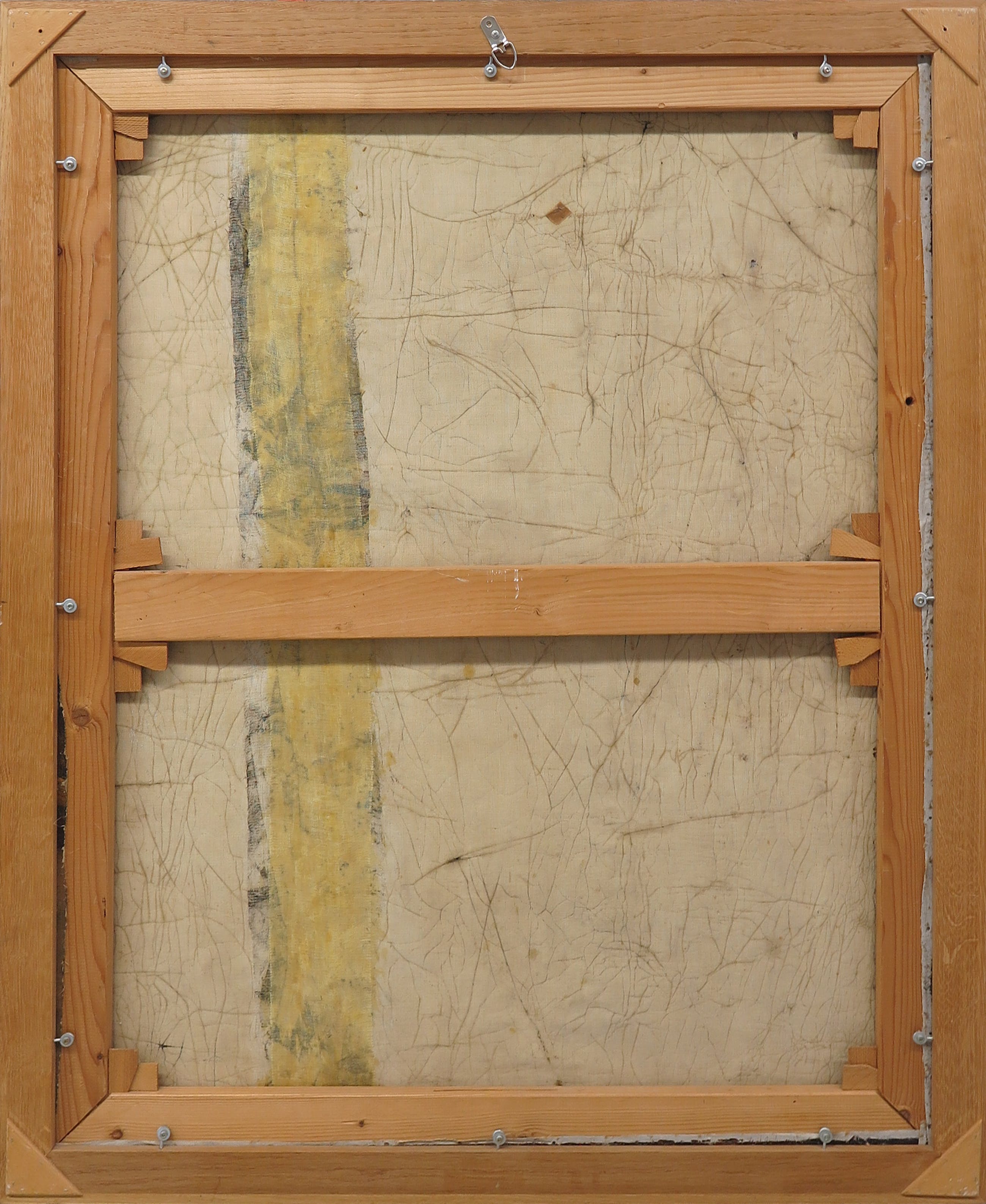 | Redelijke tot goede staat gezien leeftijd, doch met meerdere ouderdomssporen. Over het gehele doek craquelé, met op een enkele plek kleine stukjes verfverlies. Op sommige plekken is dit geretoucheerd. Rechts van het over vanaf de bovenste rand loopt een scheur/barst door het doek. Dit is gerestaureerd en gefixeerd (zie foto achterzijde). Links van het hoofd ook een grotere beschadiging, eveneens gerestaureerd. Langs de randen en hoek slijtage en zichtbaar verfverlies. | |
