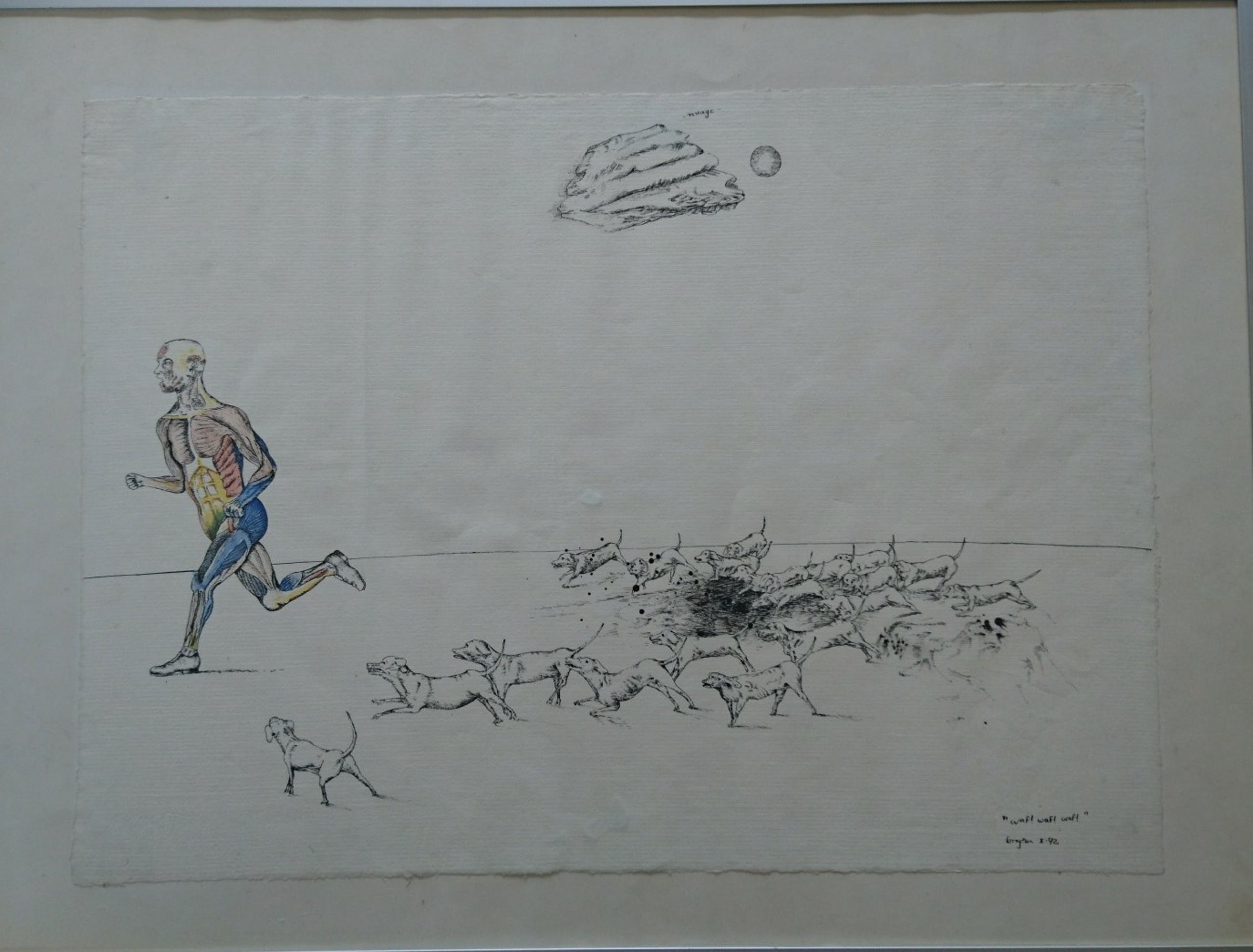Een politieke pentekening, mogelijk afdruk, ingekleurd waarschijnlijk in de jaren 70/80 toen hij op bezoek was bij universiteit Nijmegen