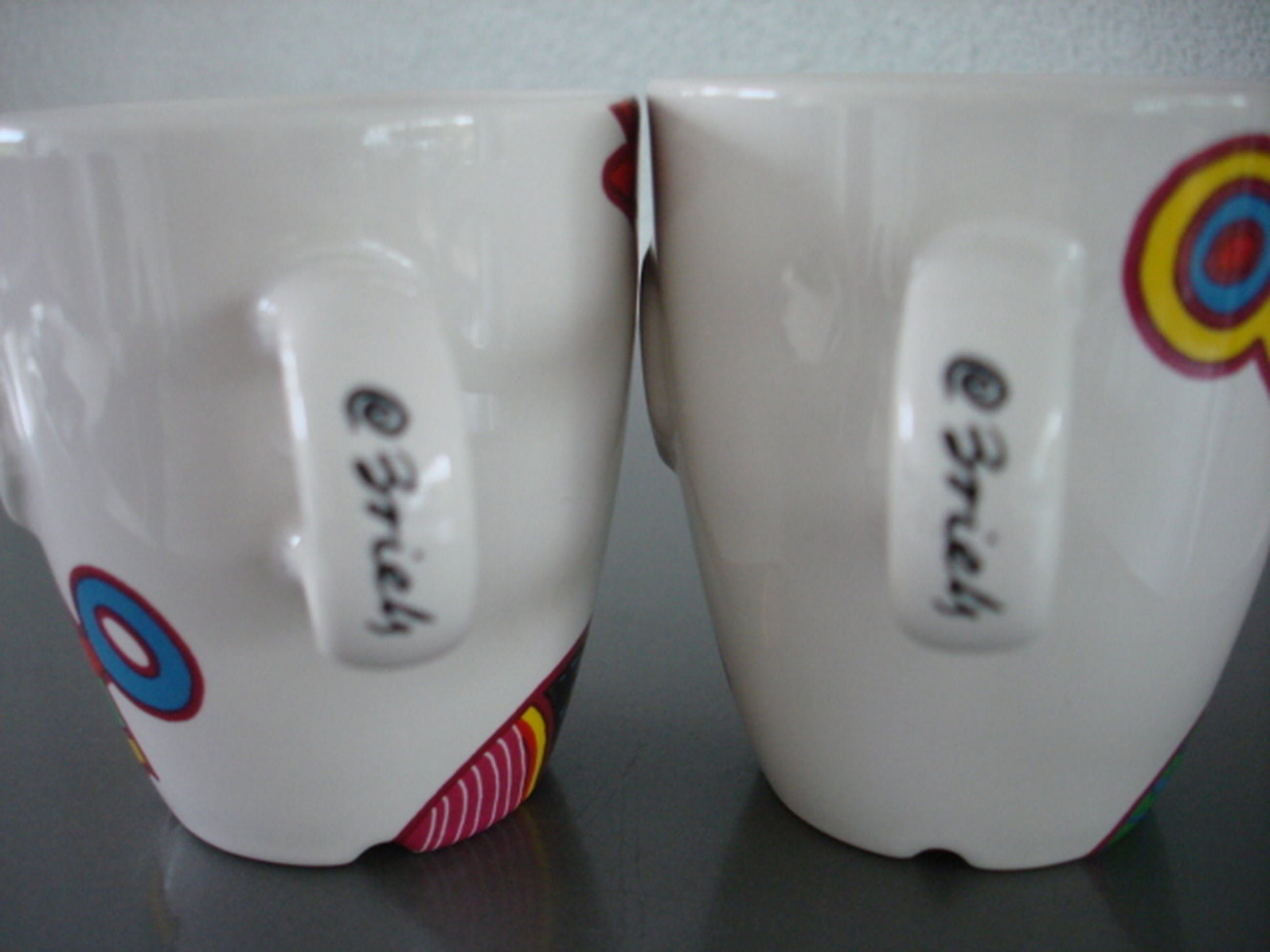 De kopjes met afbeeldingen van het werk van BRIELS komen uit de MOSA fabriek en zijn een design van Nikolai Carels.