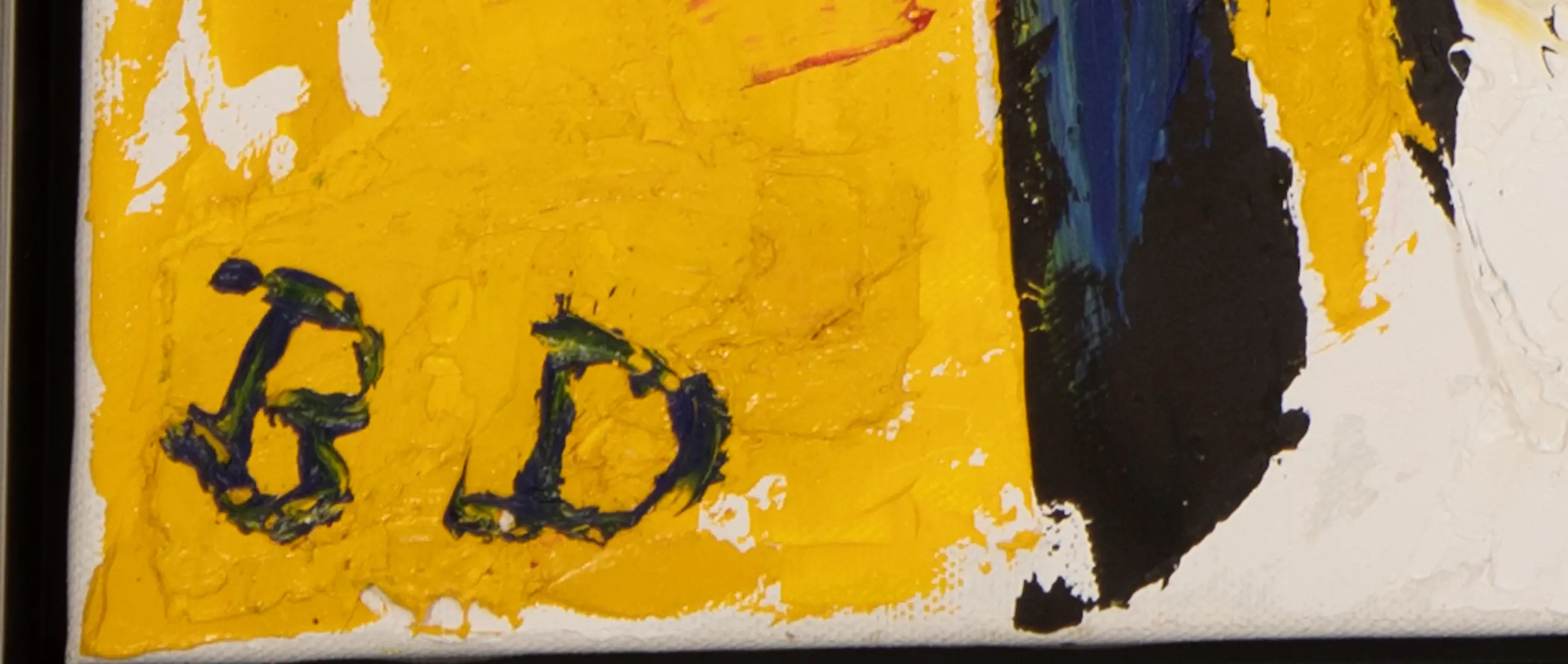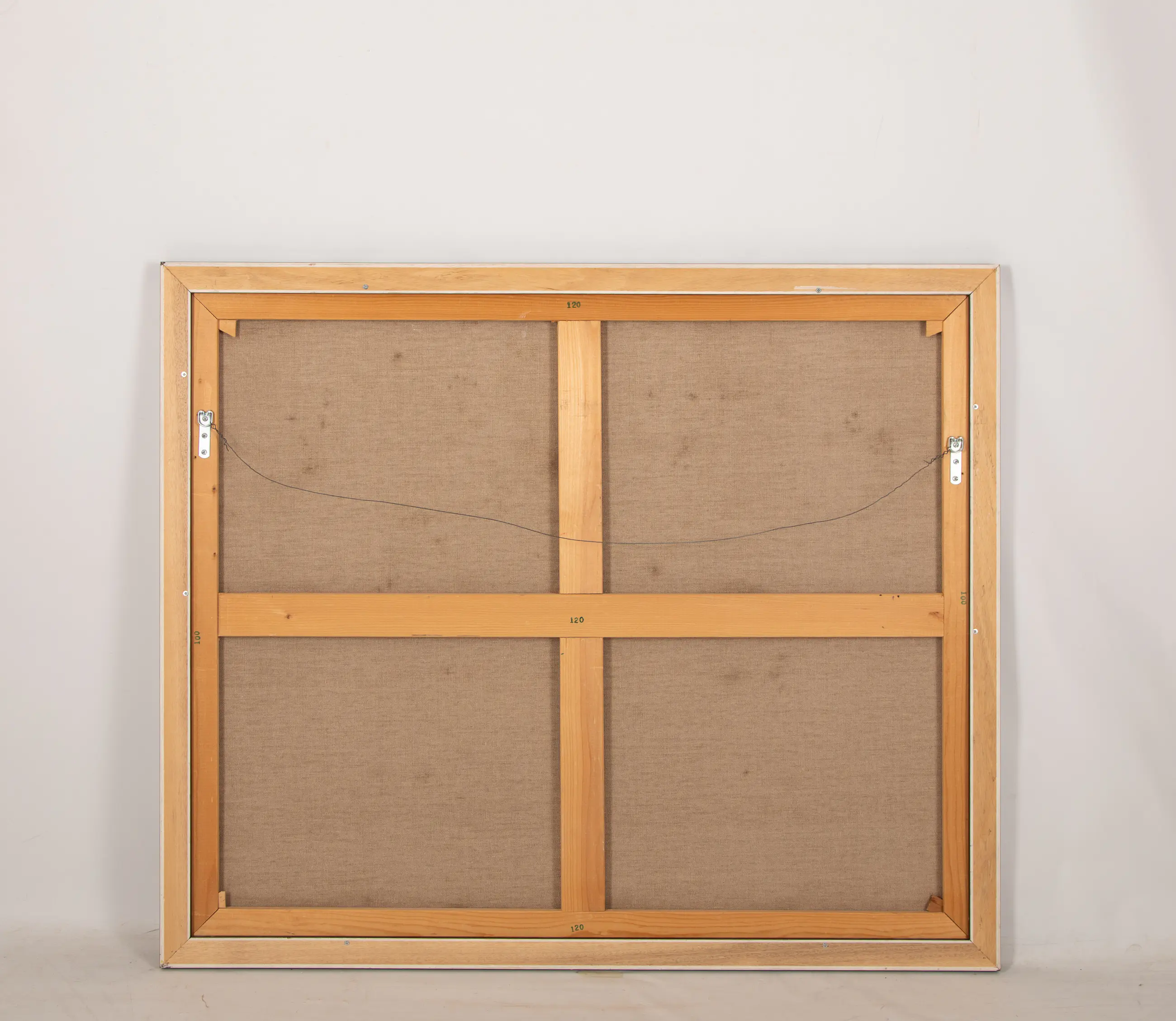 Lekker dik in de verf en groot formaat. 105 x 125 cm met een fraaie zwarte lijst.