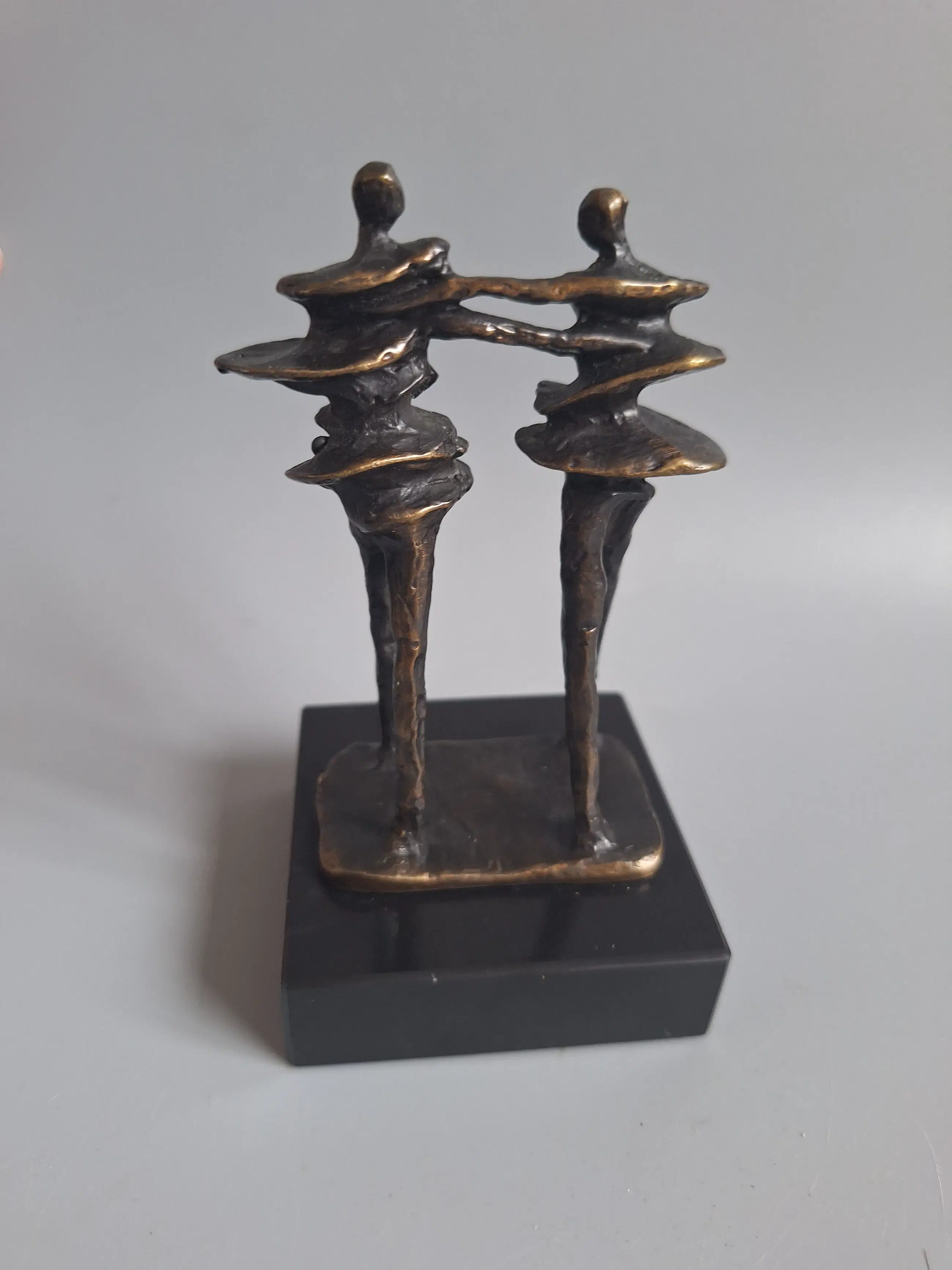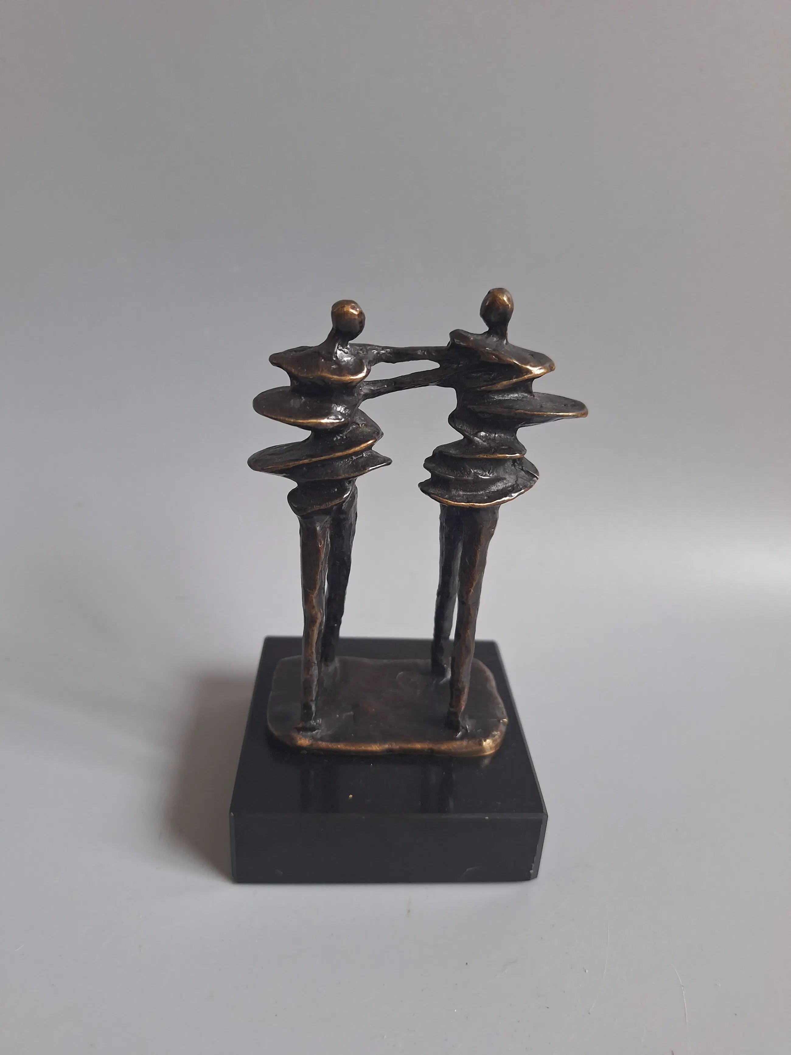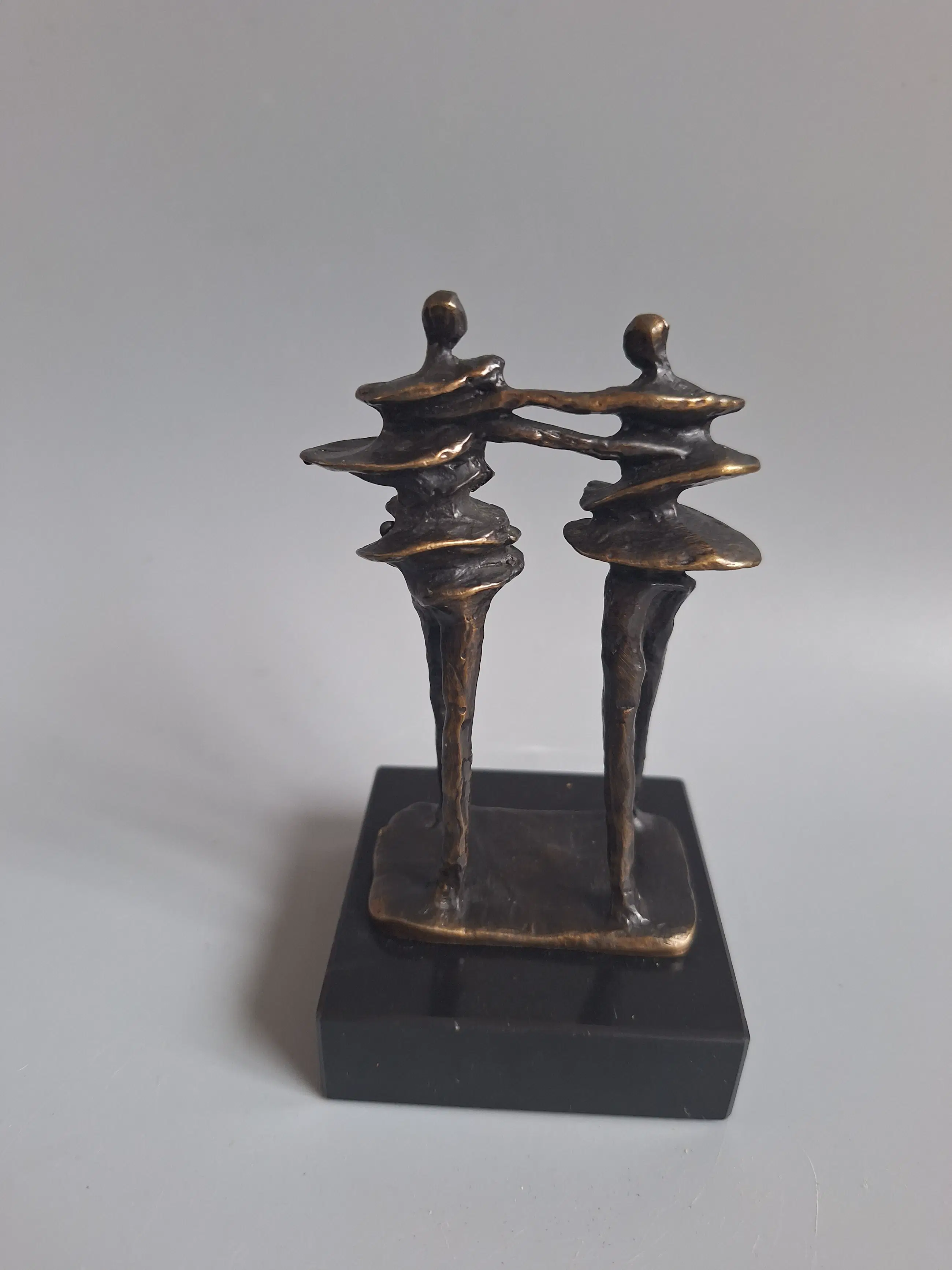 Mooi bronzen sculptuur op granieten sokkel. Titel kunstwerk: " aandacht en betrokken" 12 x 6,5 cm 320 gram