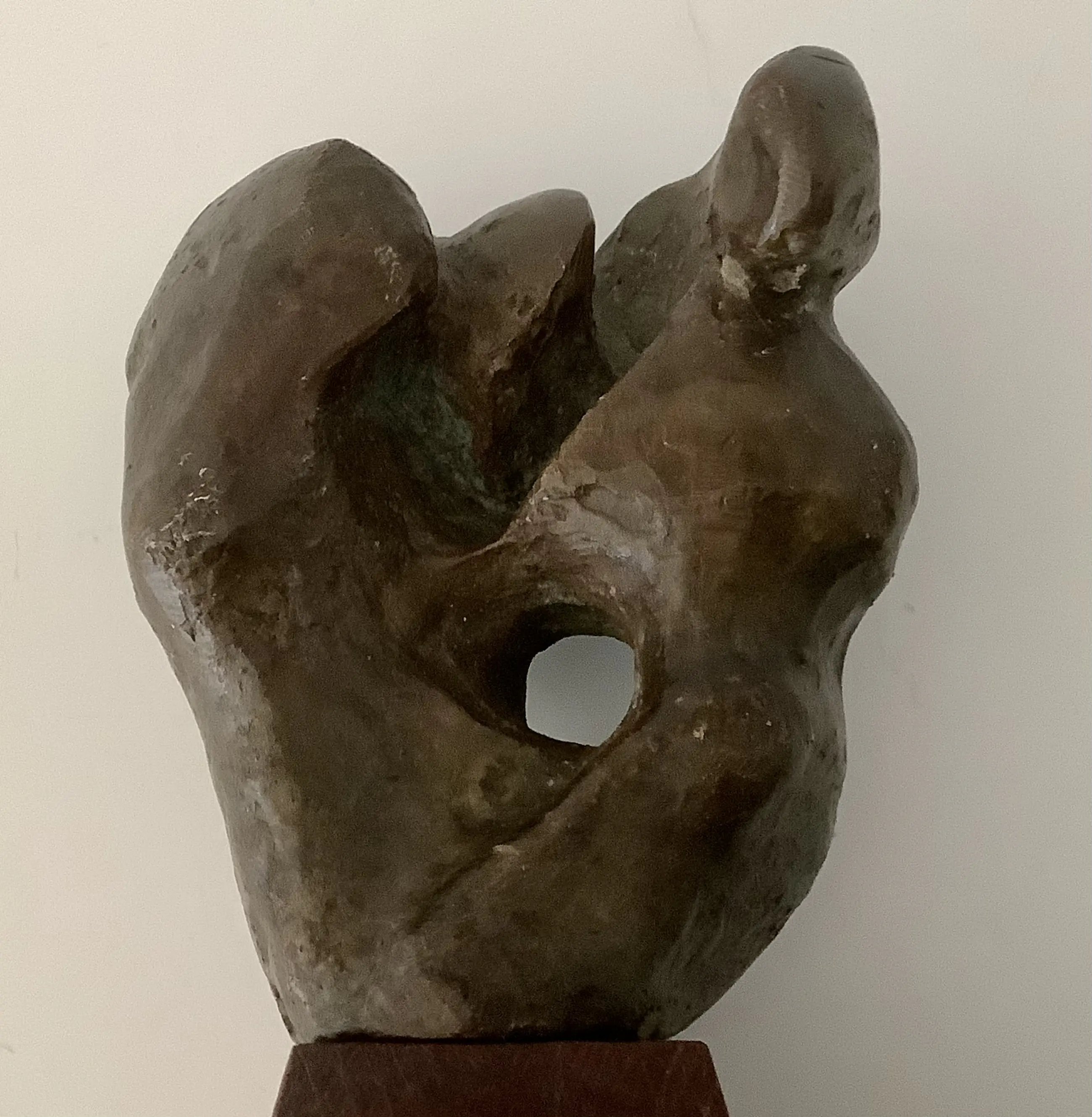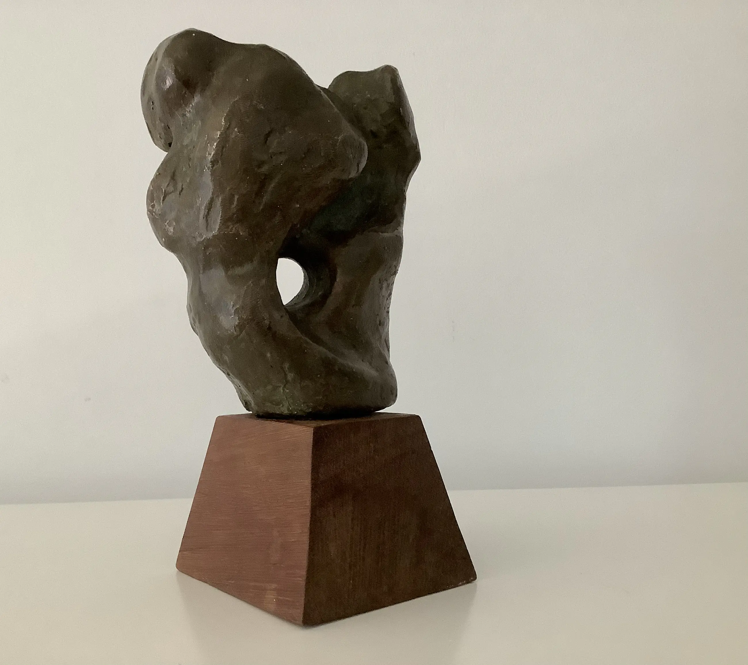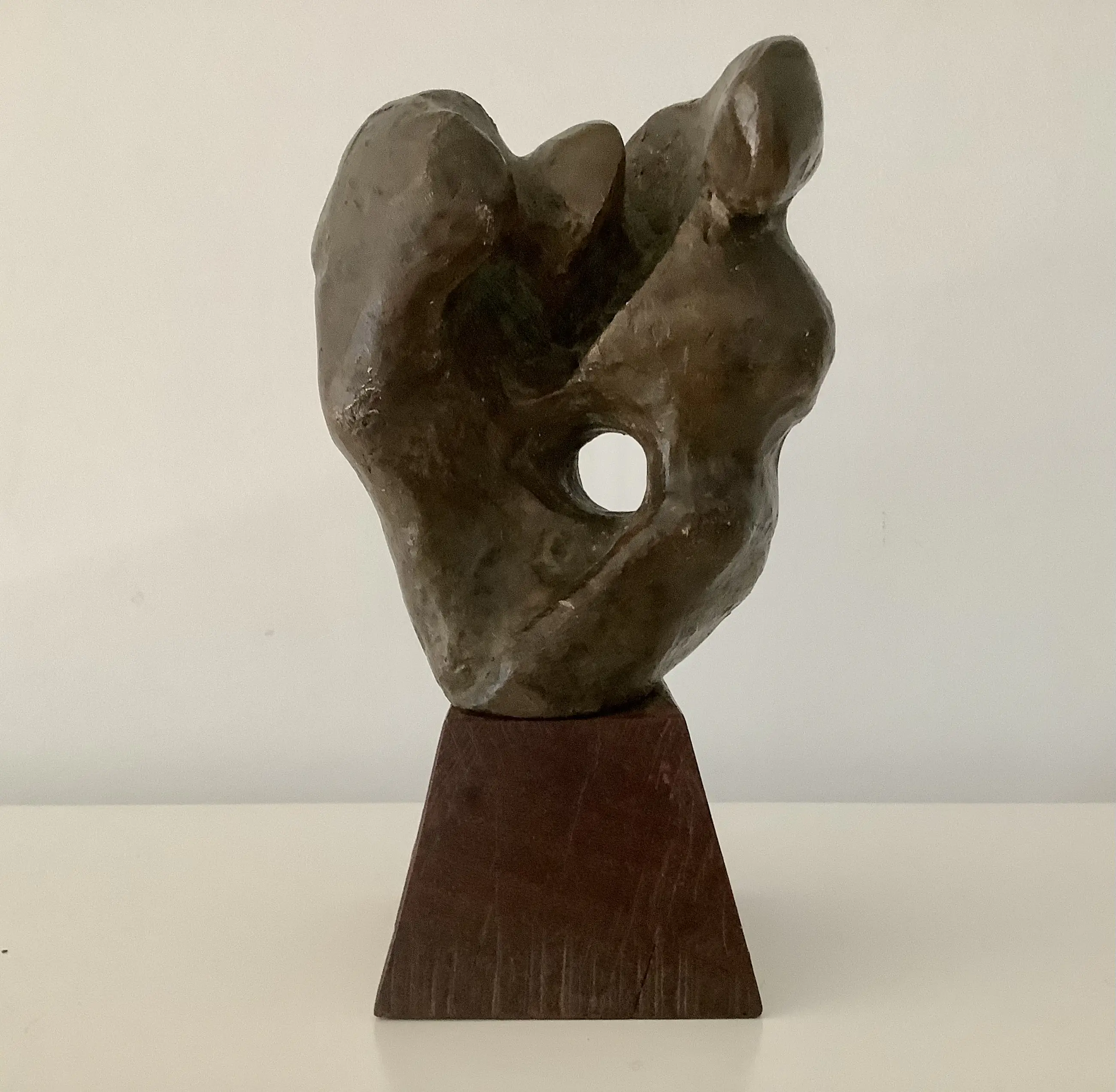 Massief bronzen sculptuur, gesigneerd met monogram en gedateerd 78. Kan de kunstenaar niet thuisbrengen. Krachtig beeld met een modernistische uitstraling.