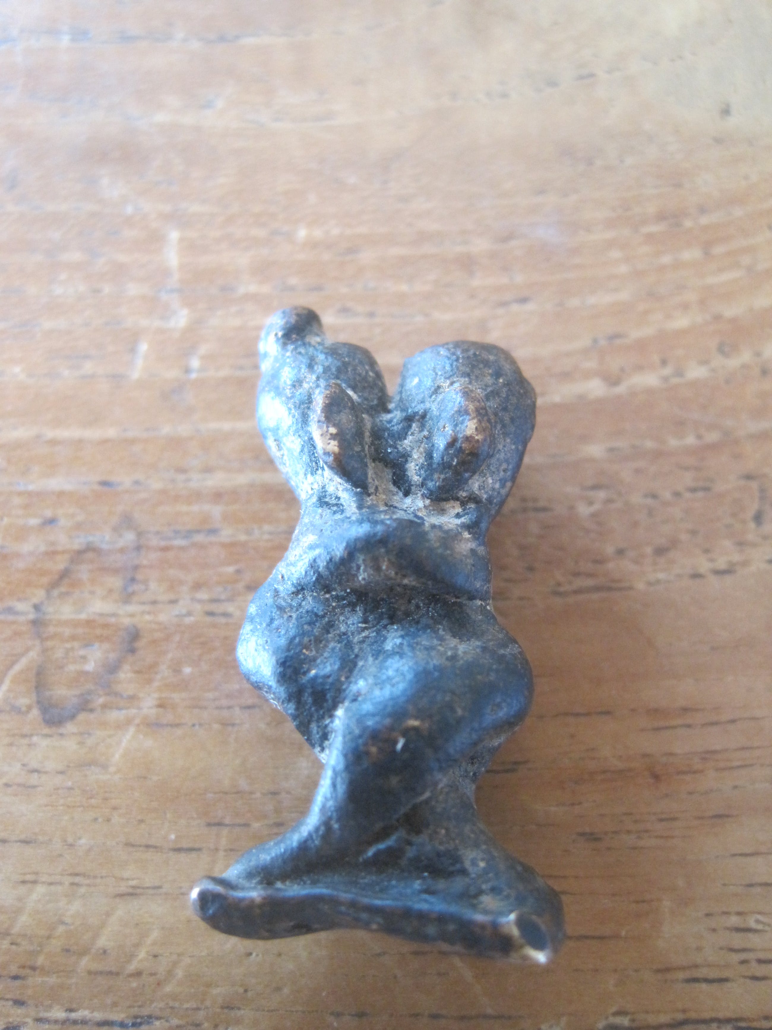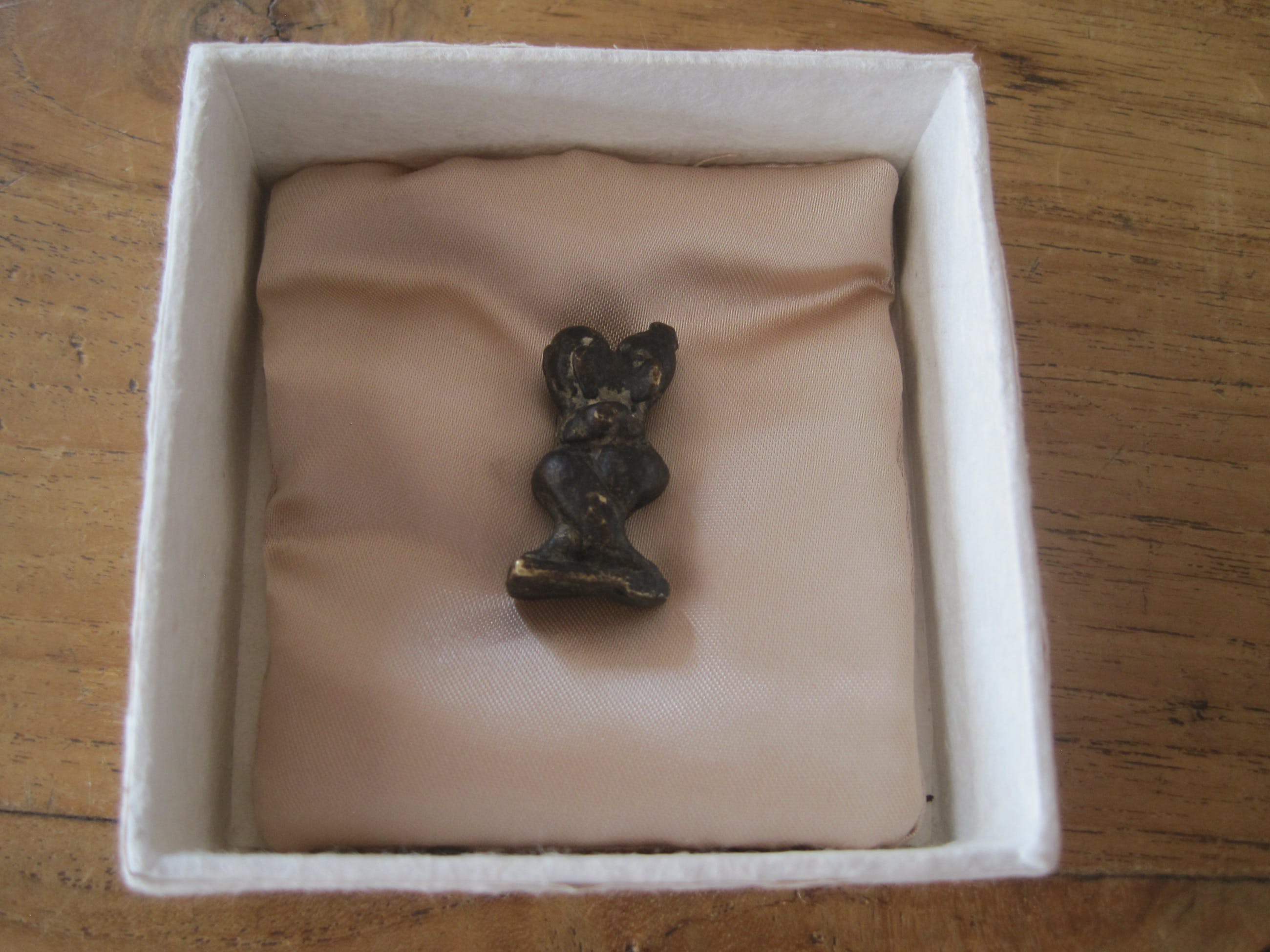 Een heel klein bronzen beeldje van twee personen die elkaar innig omhelzen. Ik durf geen slag te slaan naar de leeftijd of herkomst van het beeldje. Voorzichtigheidshalve heb ik de 20e eeuw aangehouden.