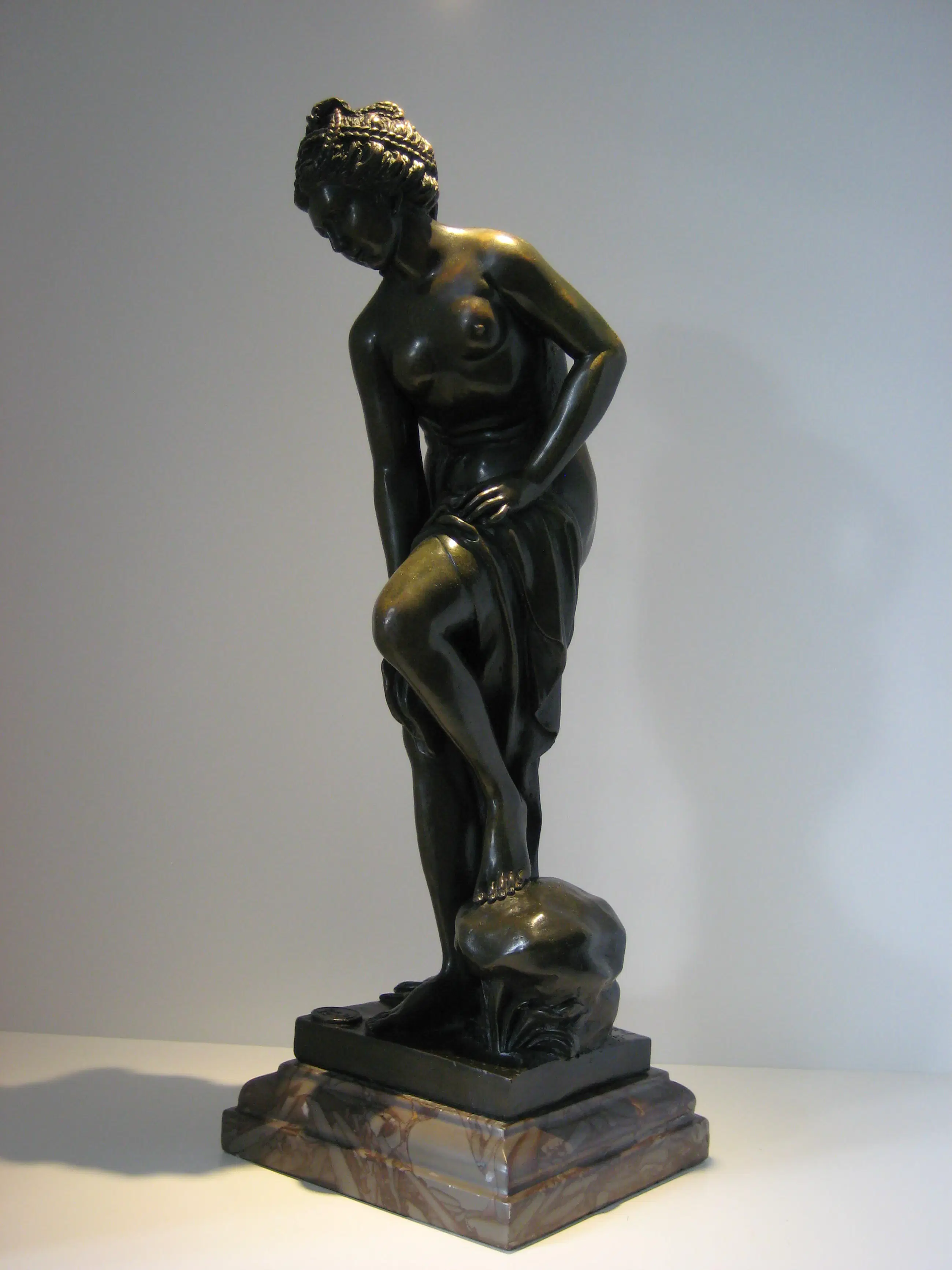 Naar het origineel van Christophe Gabriel Allegrain (Paris 1710-1795). Brons op marmeren voet. Gesigneerd en voorzien van gieterijstempel. Frankrijk, eind 19e eeuw. 7.2 kg! Mooie patina. Af te halen of te verzenden na 15 januari.