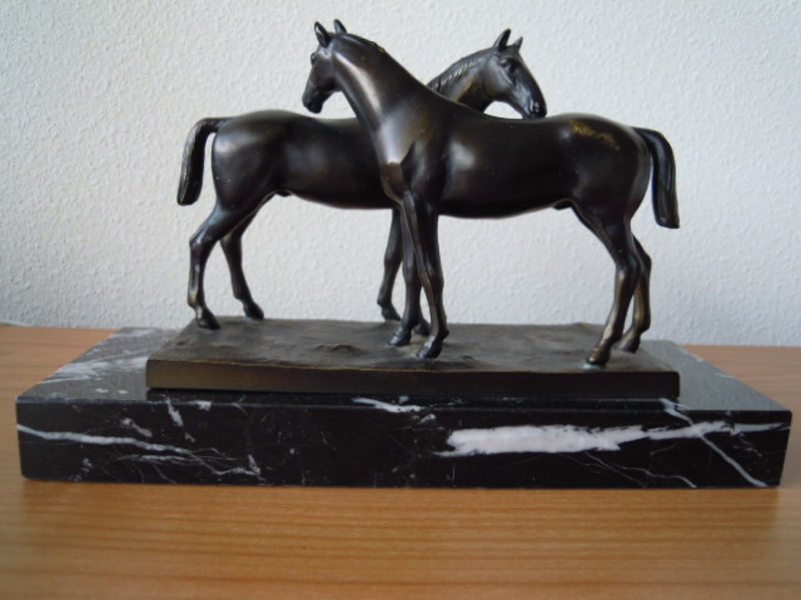 Het beeld staat op een zwart marmeren sokkel en is in totaal 17 cm hoog.