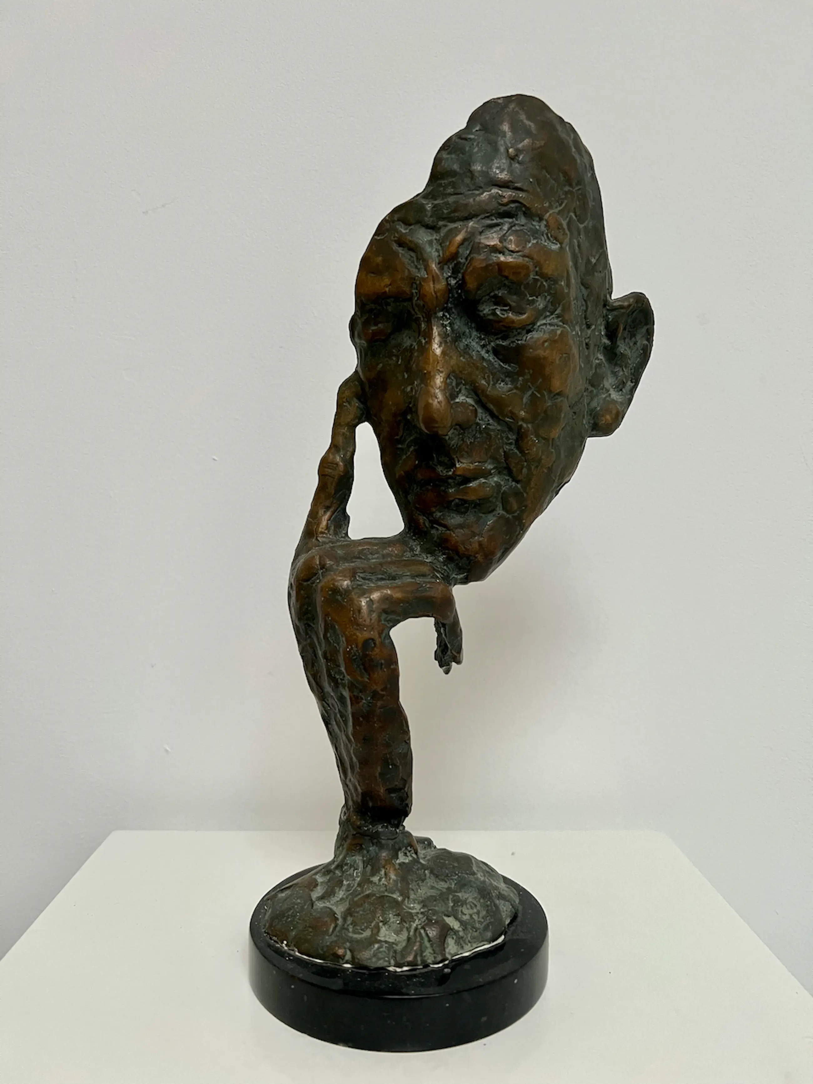 Fraaie bronzen sculptuur van een 'denkende man'.