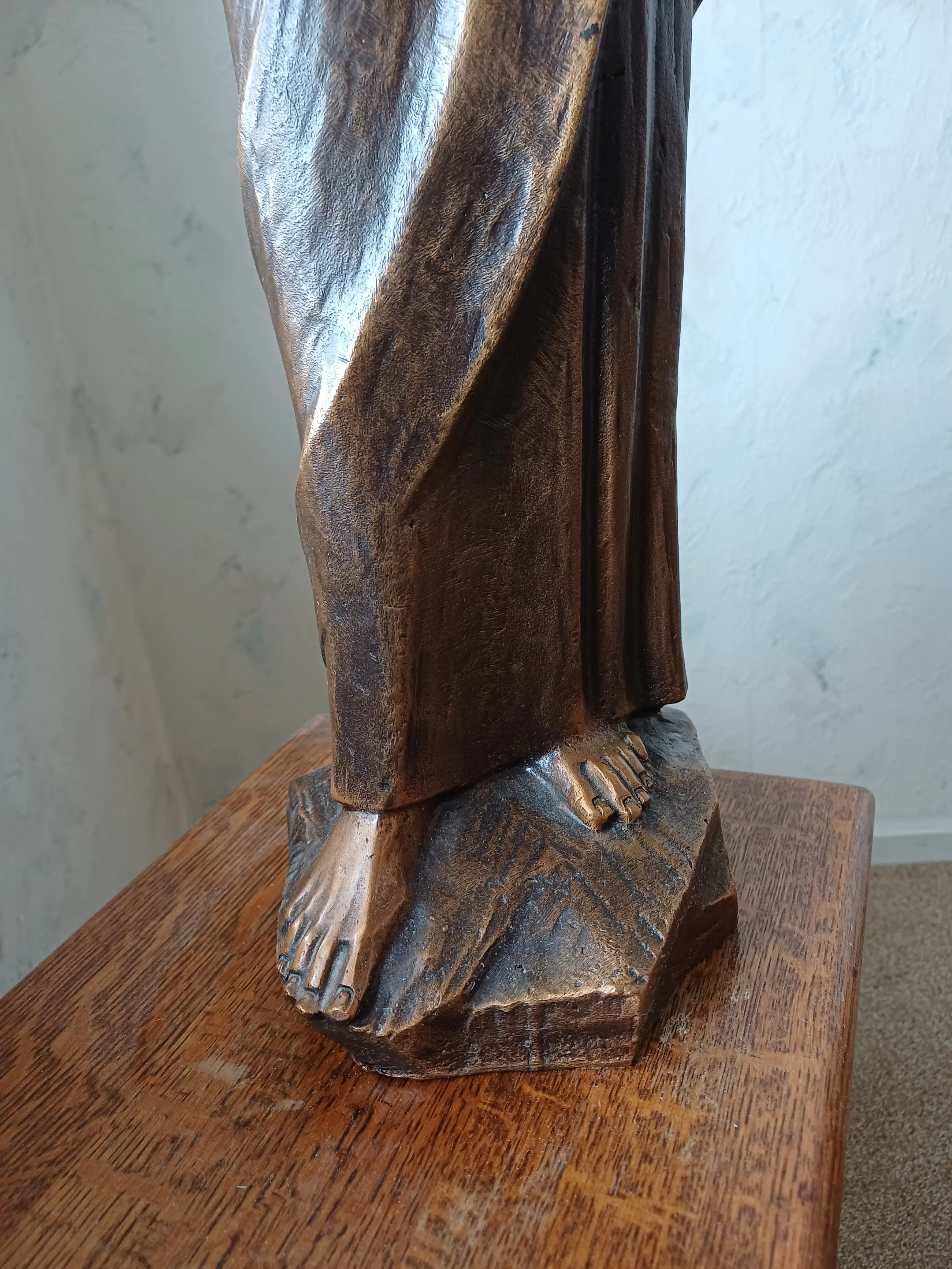 Een klassiek Christus beeld afkomstig uit Zeeland. Zwaar bronzen beeld met moderne uitstraling. Periode is onbekend evenals jaartal.