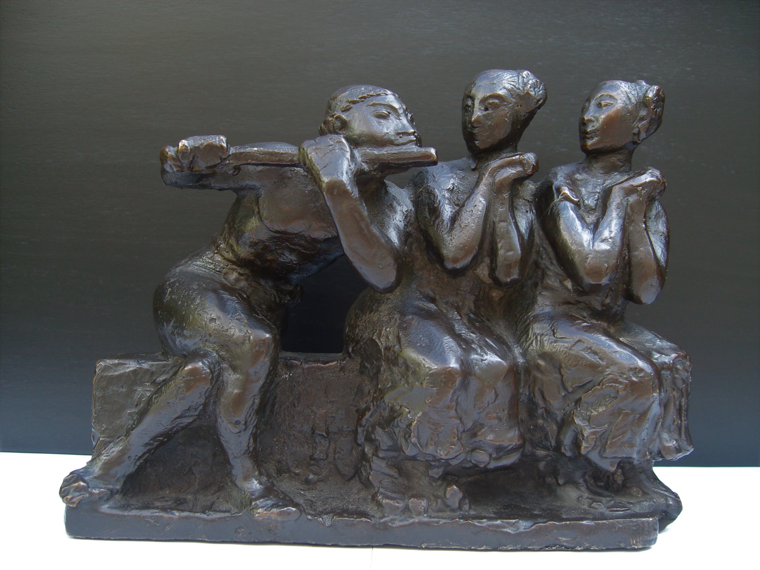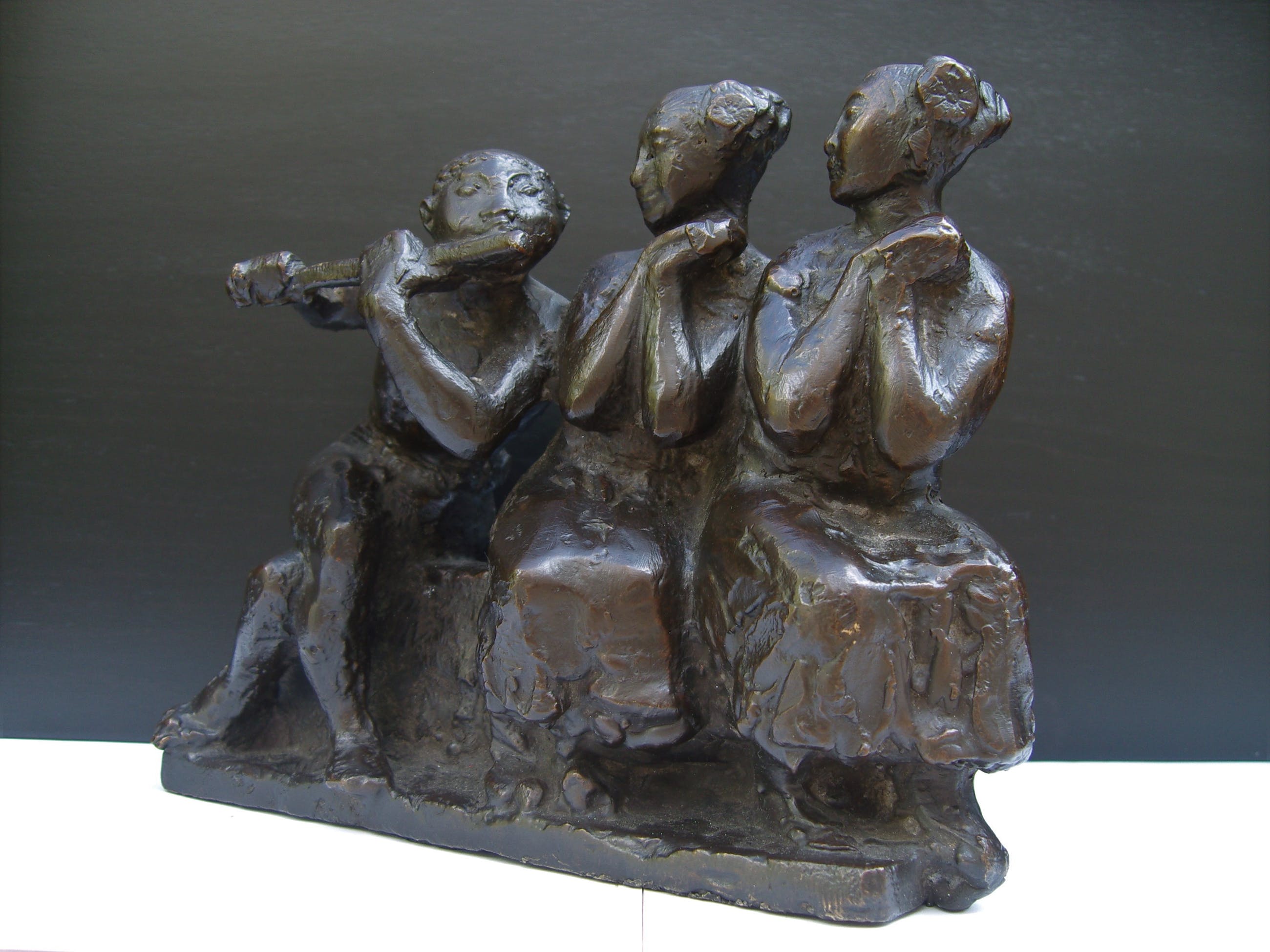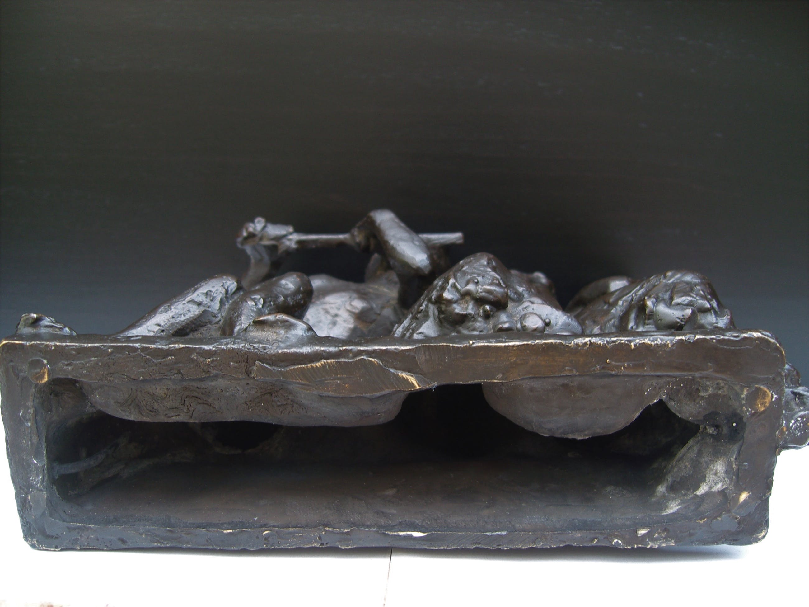 Zeer fraai en zwaar beeldje van onbekende kunstenaar. Wél een gietersmerkje , zie afbeelding. Liefdevol tafereeltje .