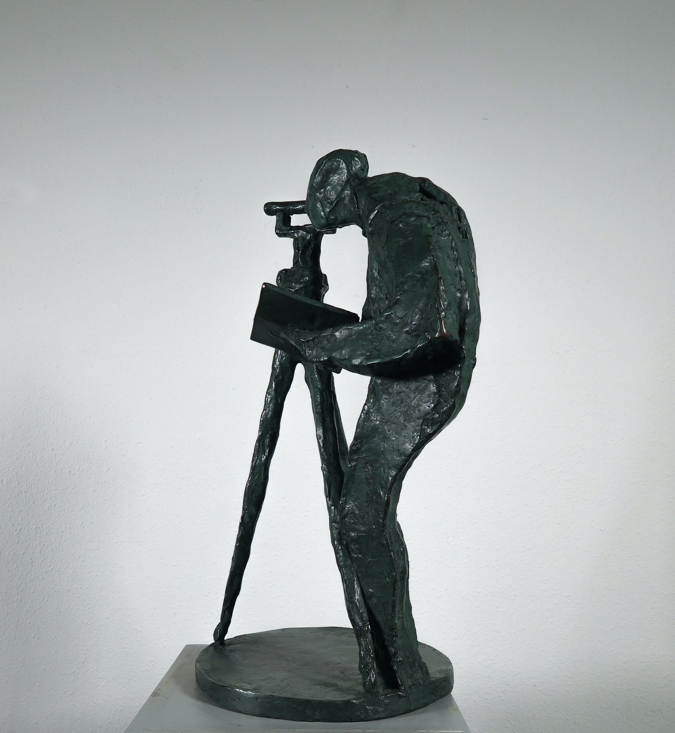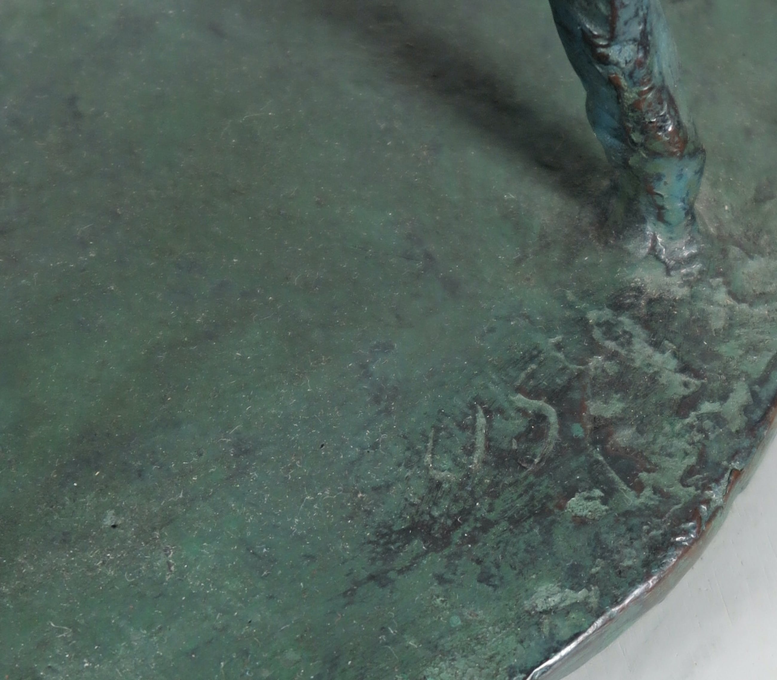 Groot bronzen beeld, met mooi groen patina, van een onbekende maker. De voet is gemonogrammeerd (LIS of US).
