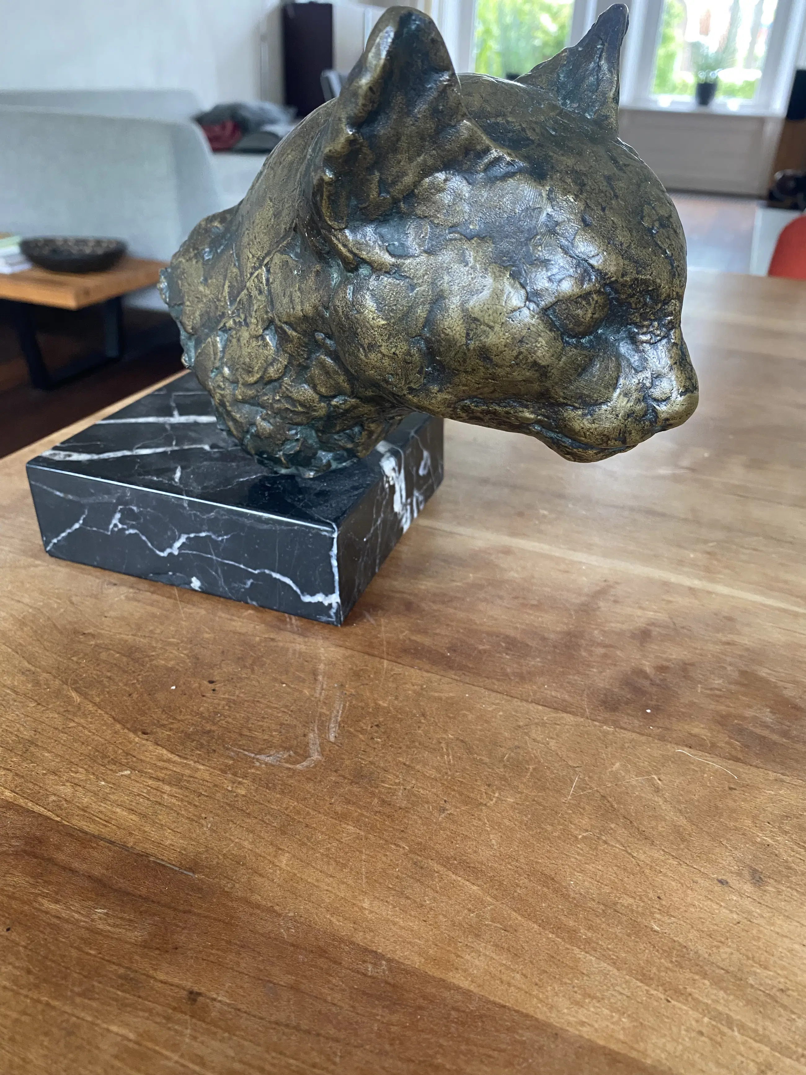 Kattenkop, brons, uit nalatenschap, maker onbekend, provenance Amber Art Gallery, Antwerpen