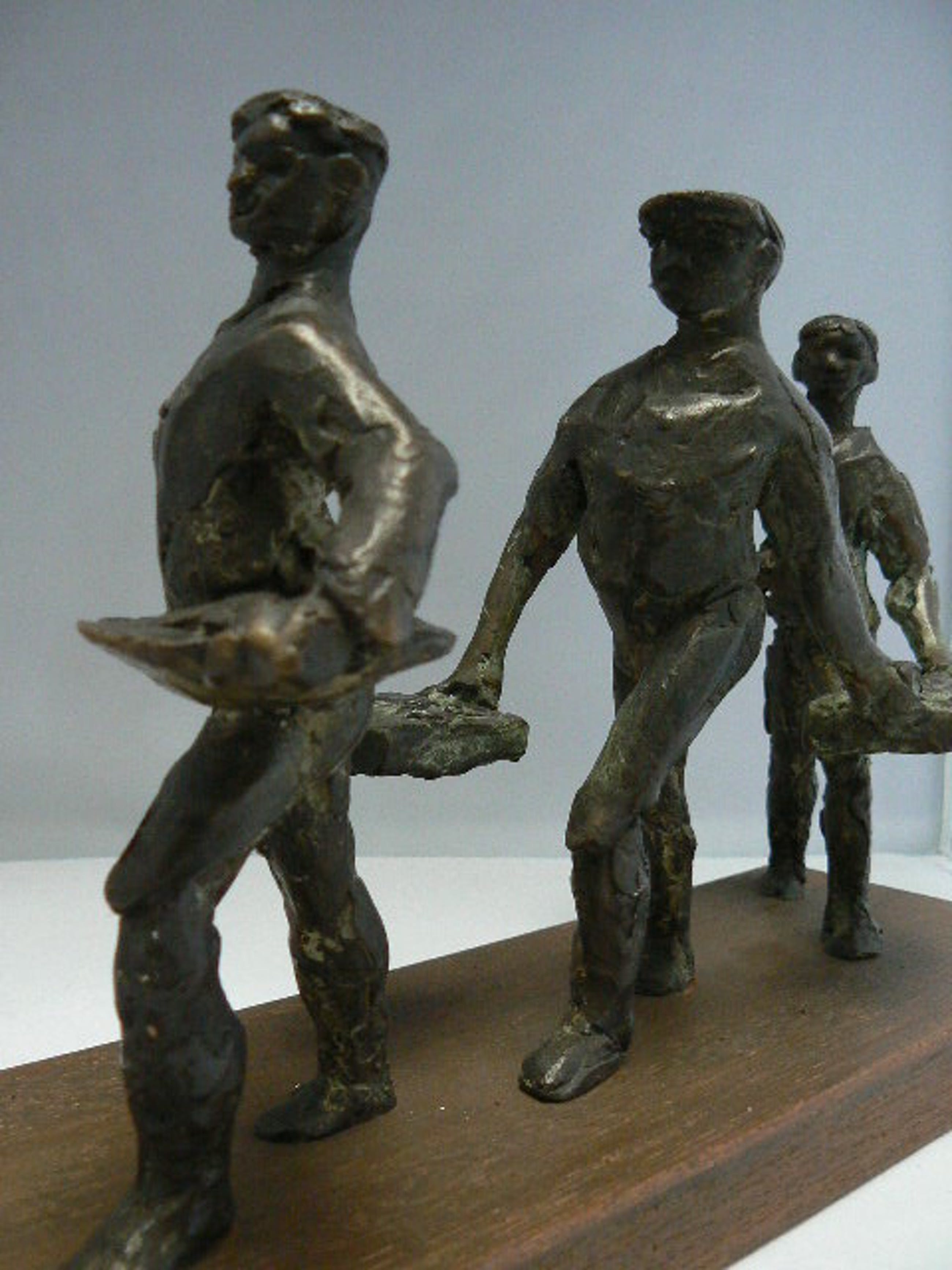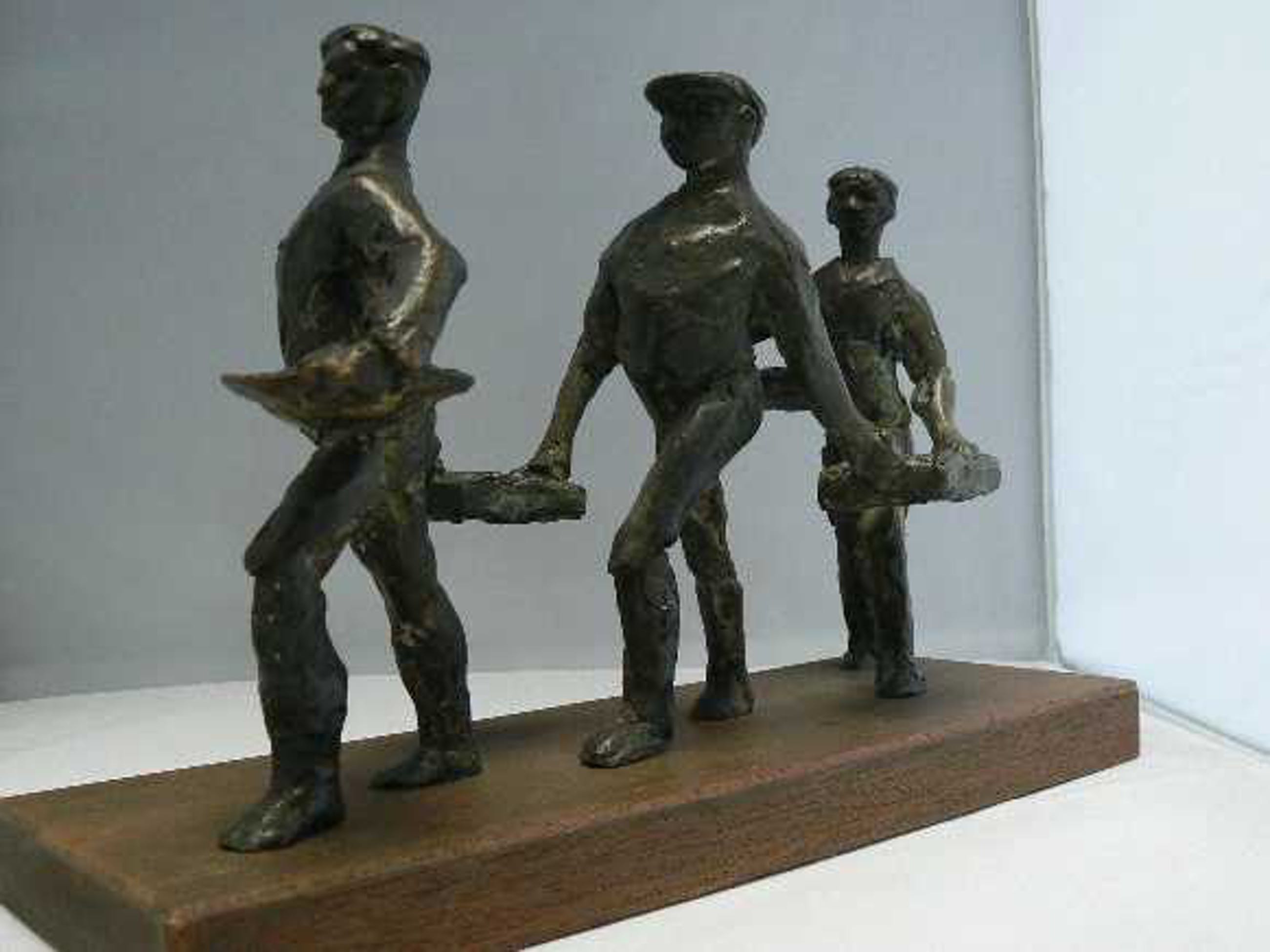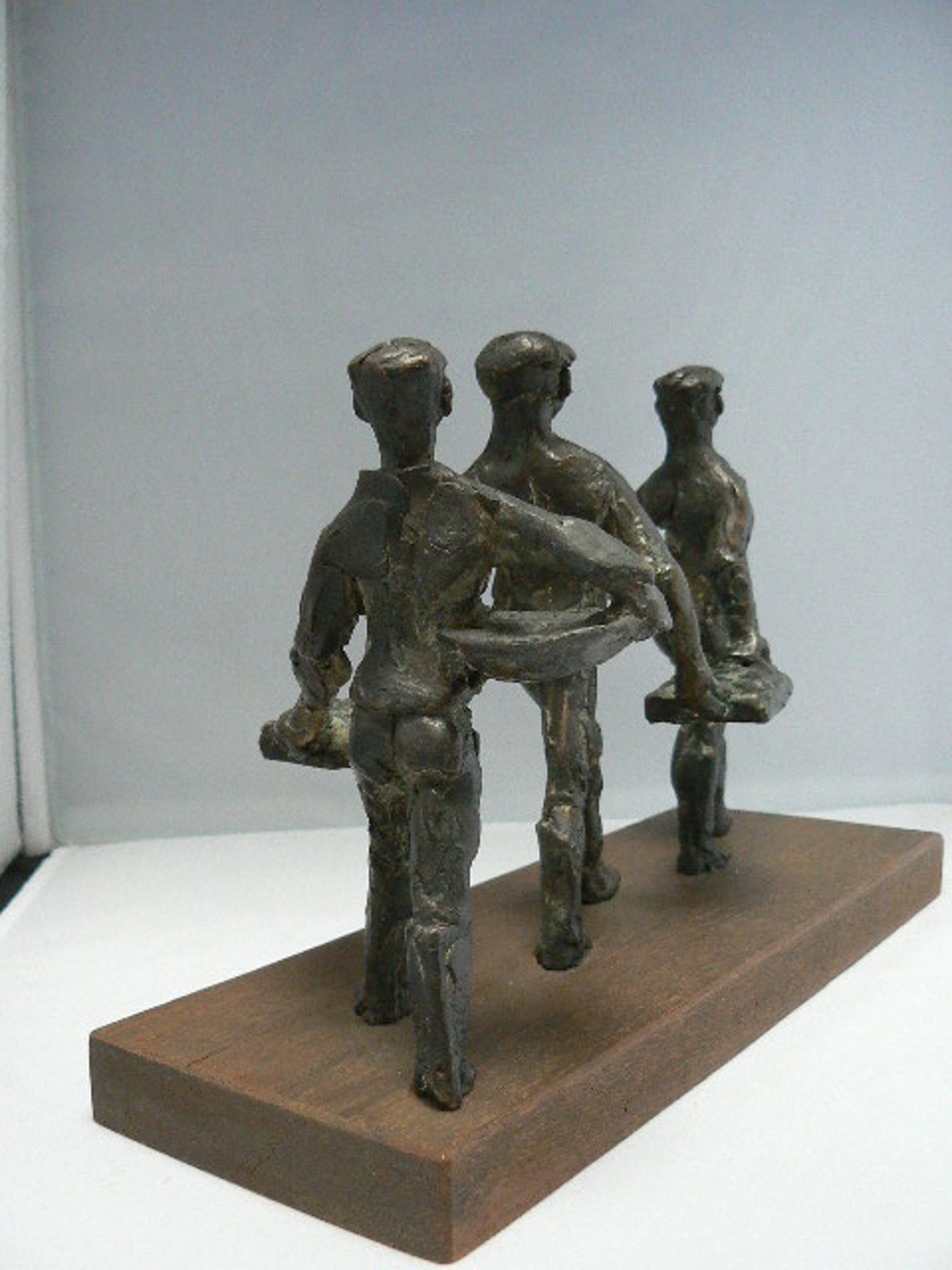 Bronzen sculptuur van drie markt verkopers, of vissers.