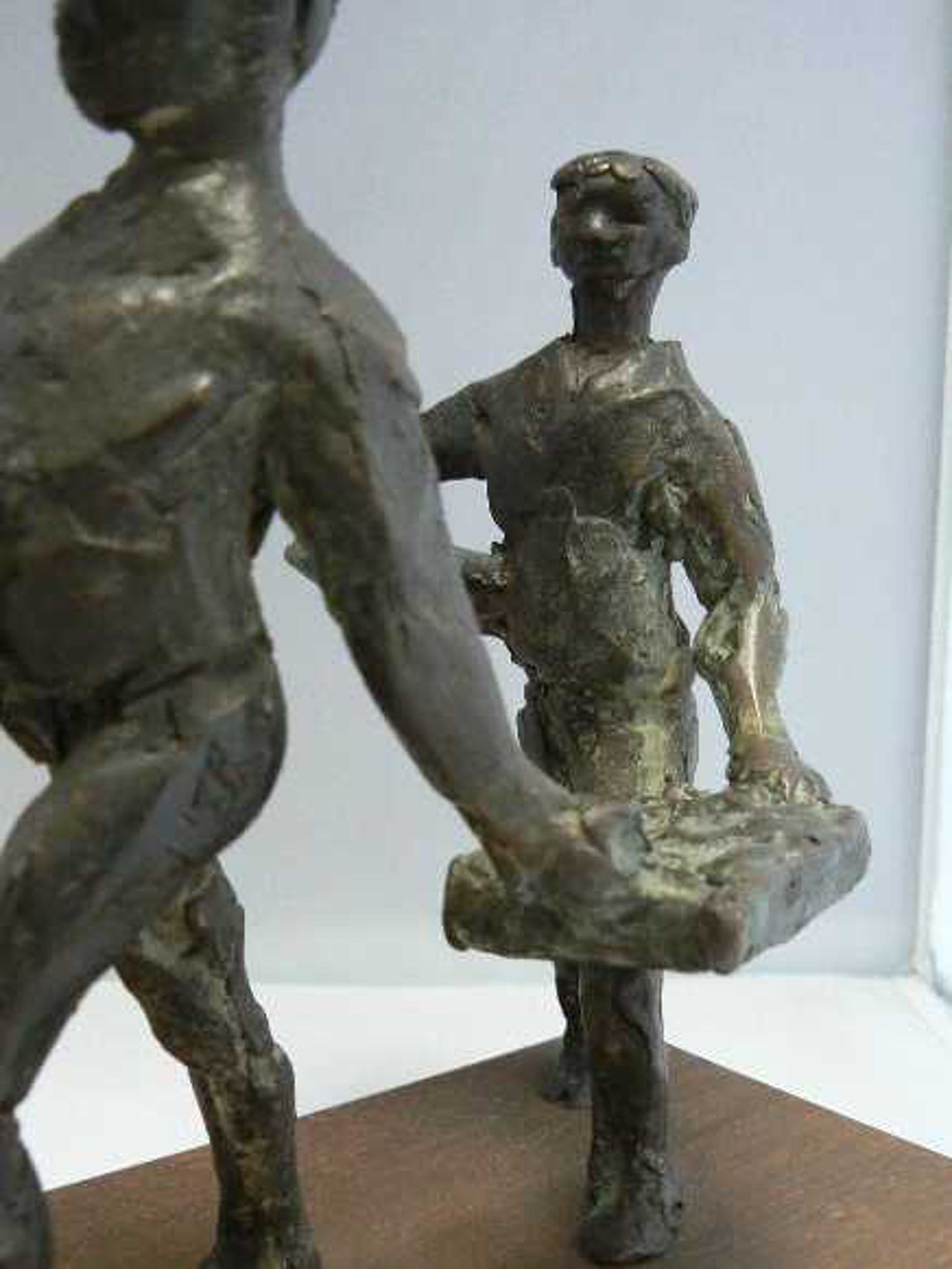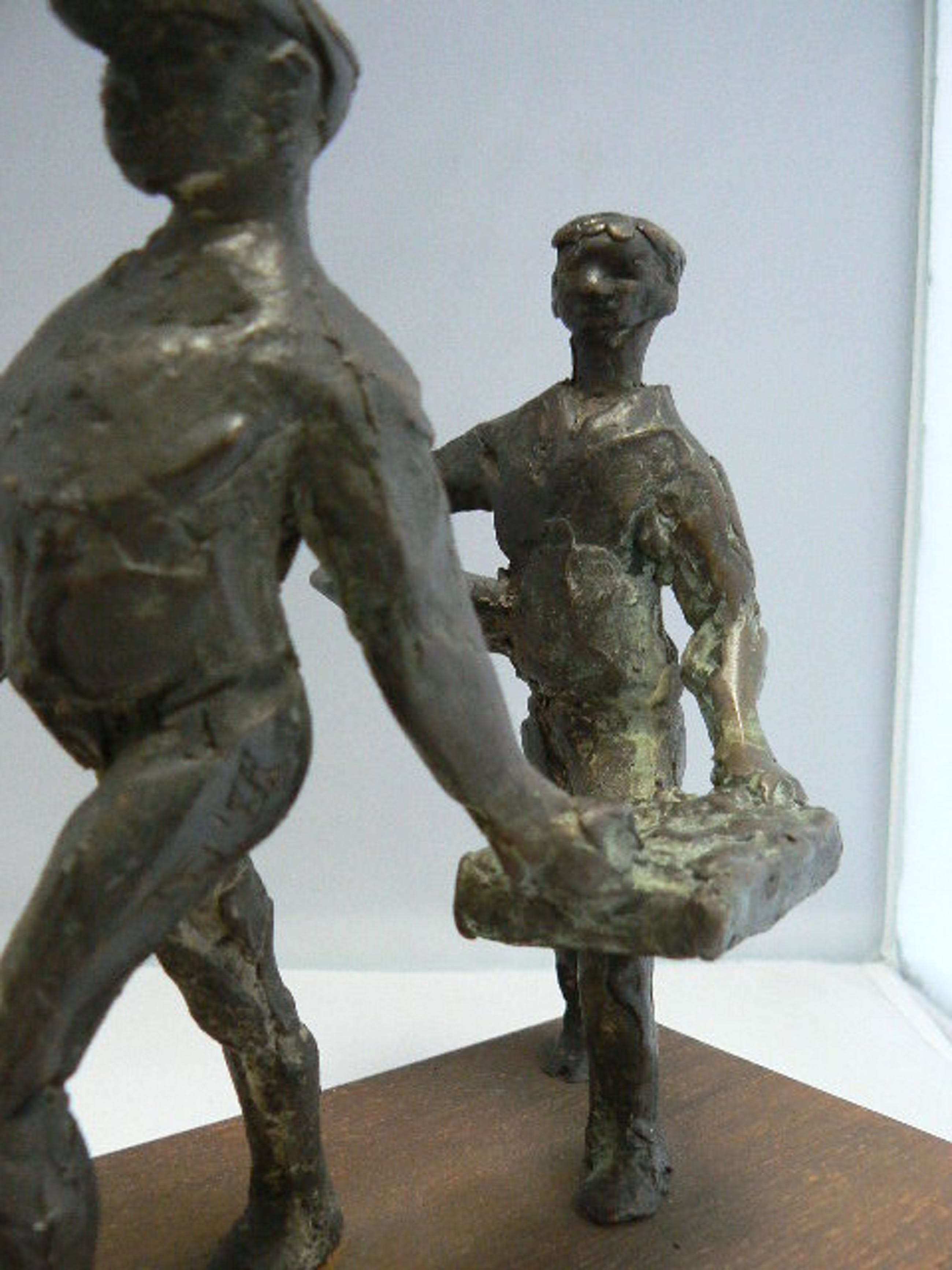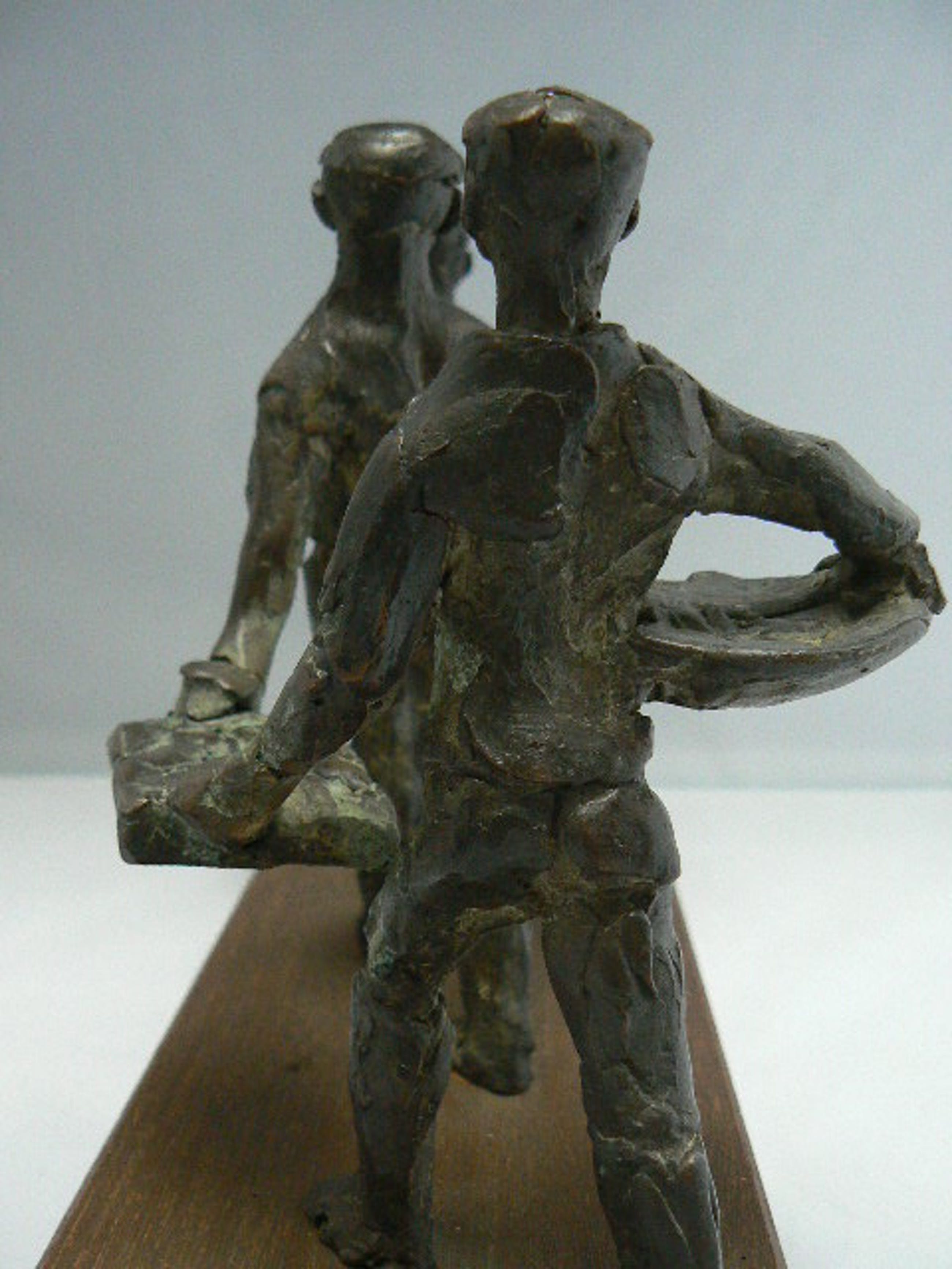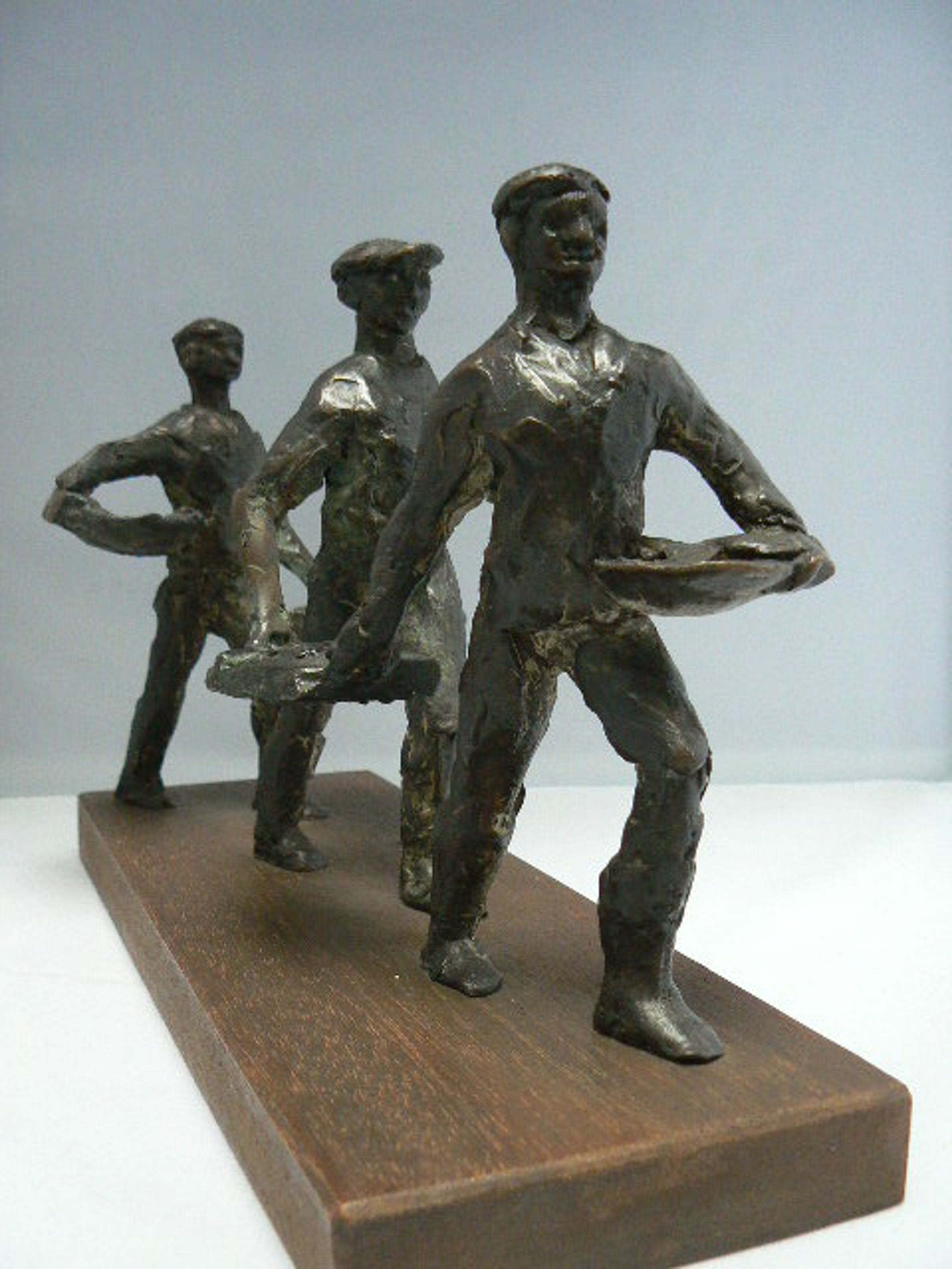Bronzen sculptuur van drie markt verkopers, of vissers.