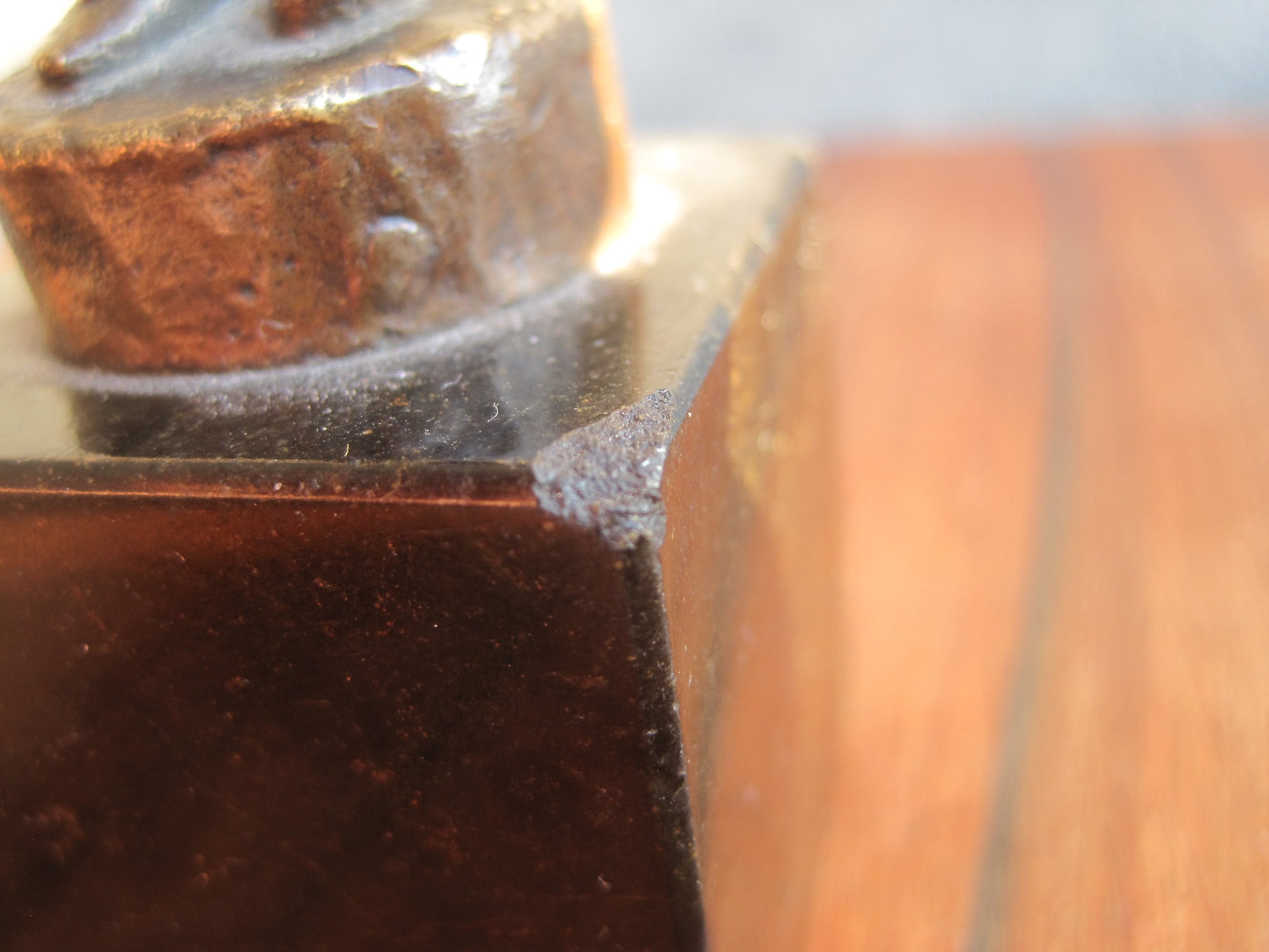 Dit bronzen beeldje verkeert in een redelijke conditie.