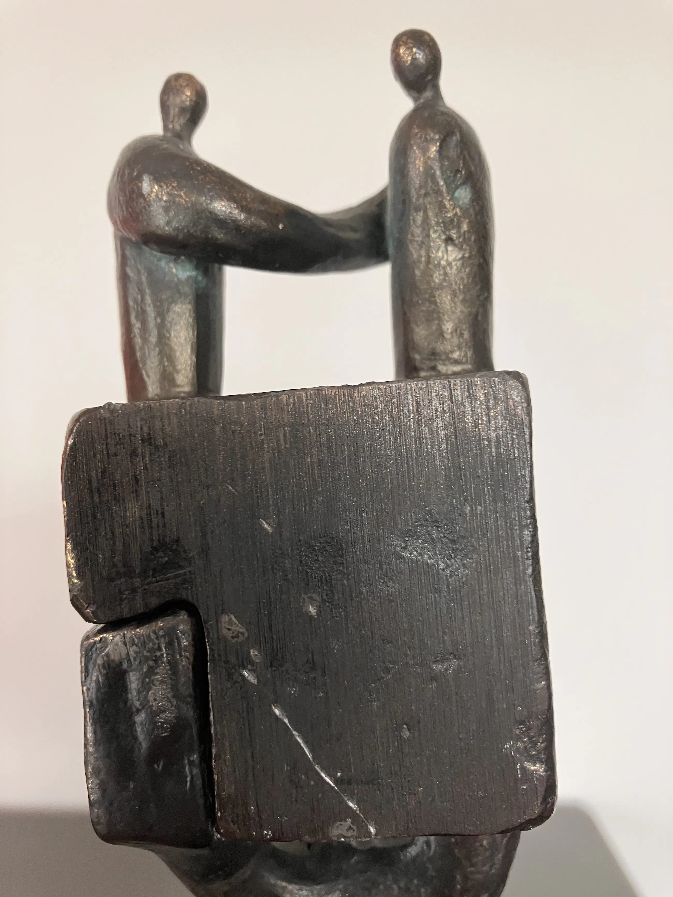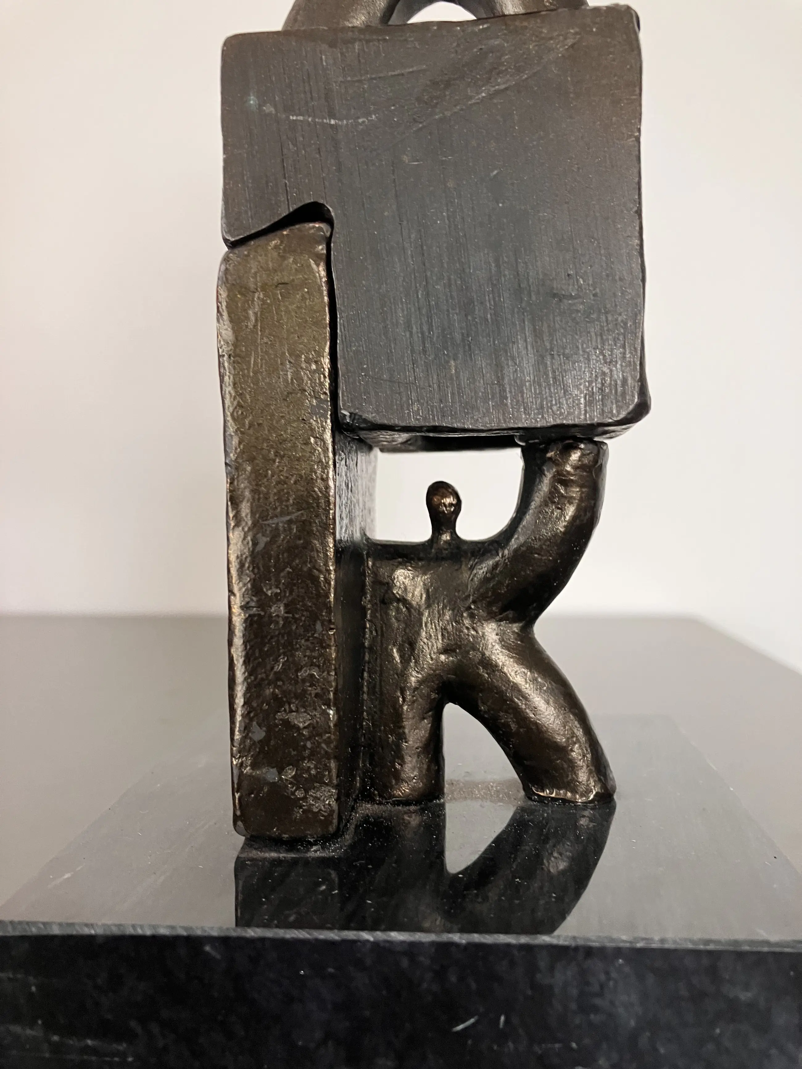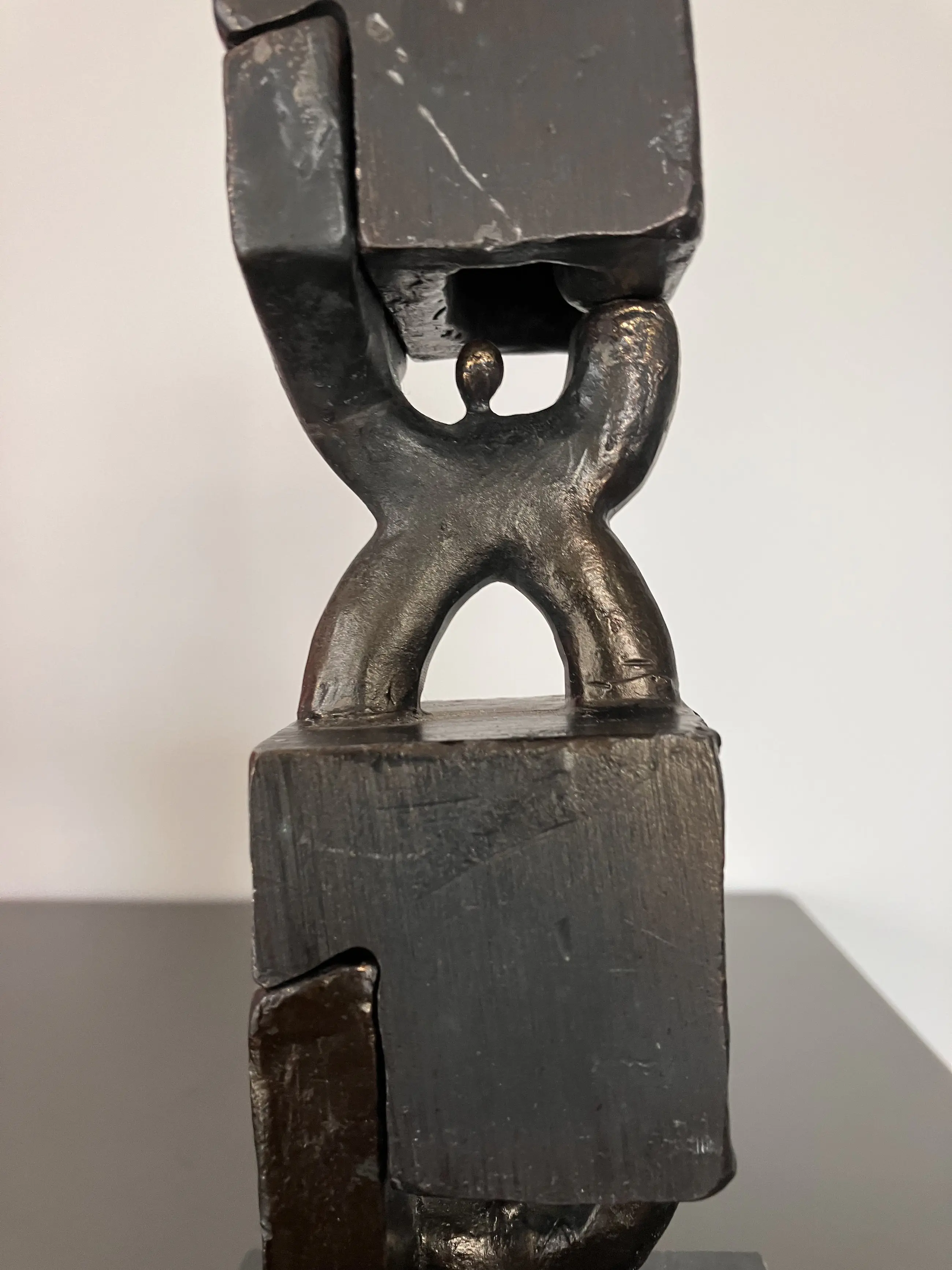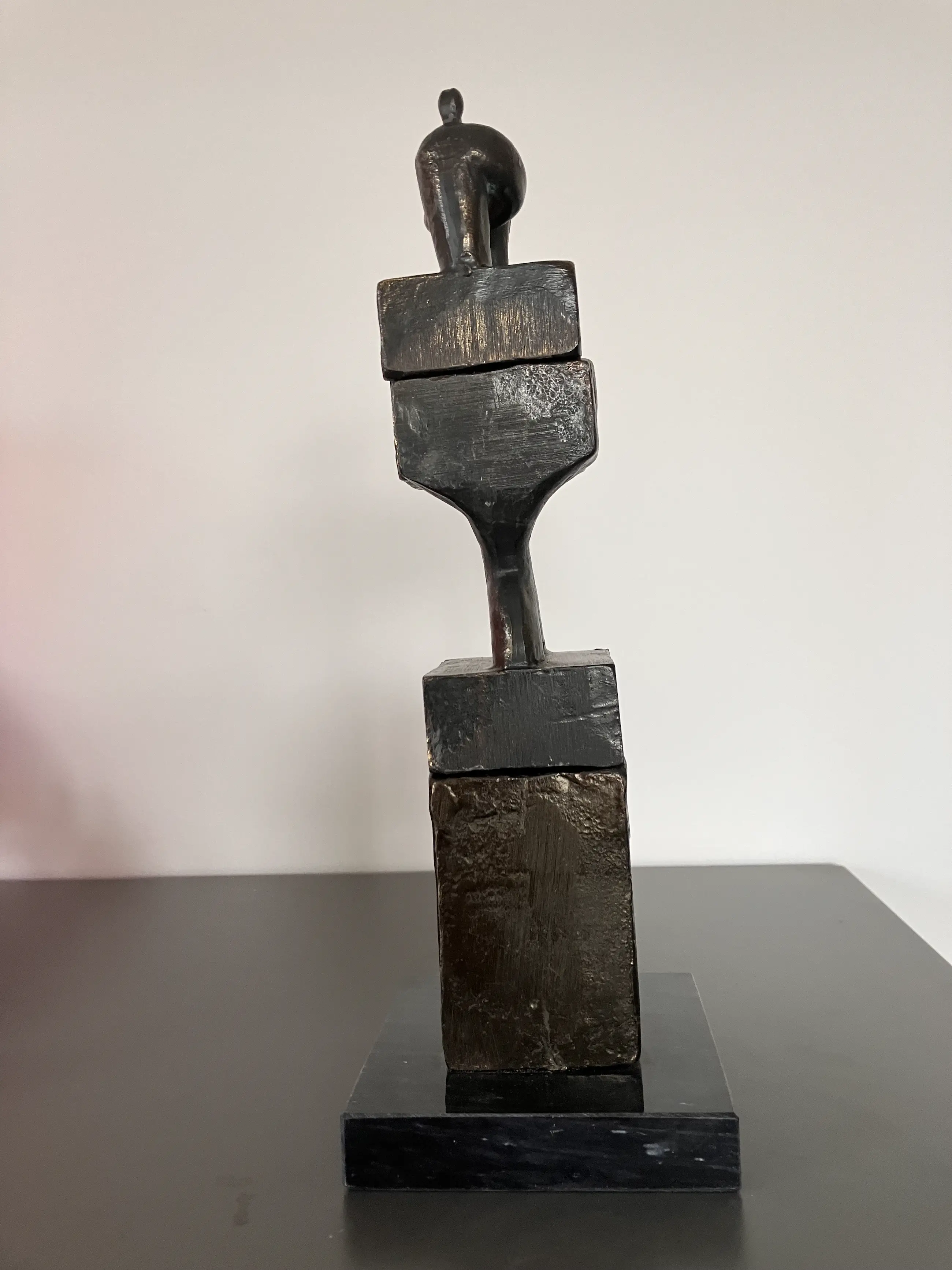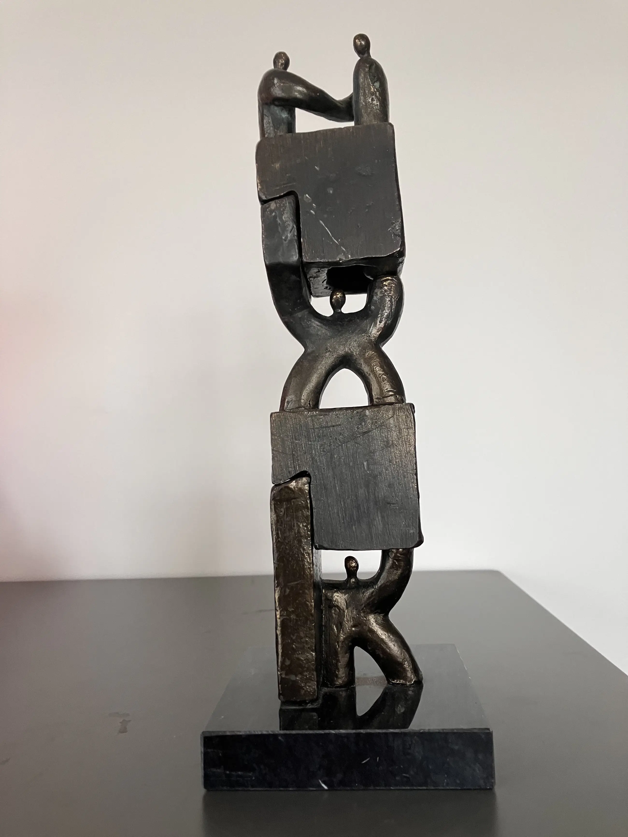 Drie stapelbare elementen ( 1555 + 1822 + 1486 gram! ) vormen samen een toren van personen en twee kubussen op zwart natuurstenen sokkel