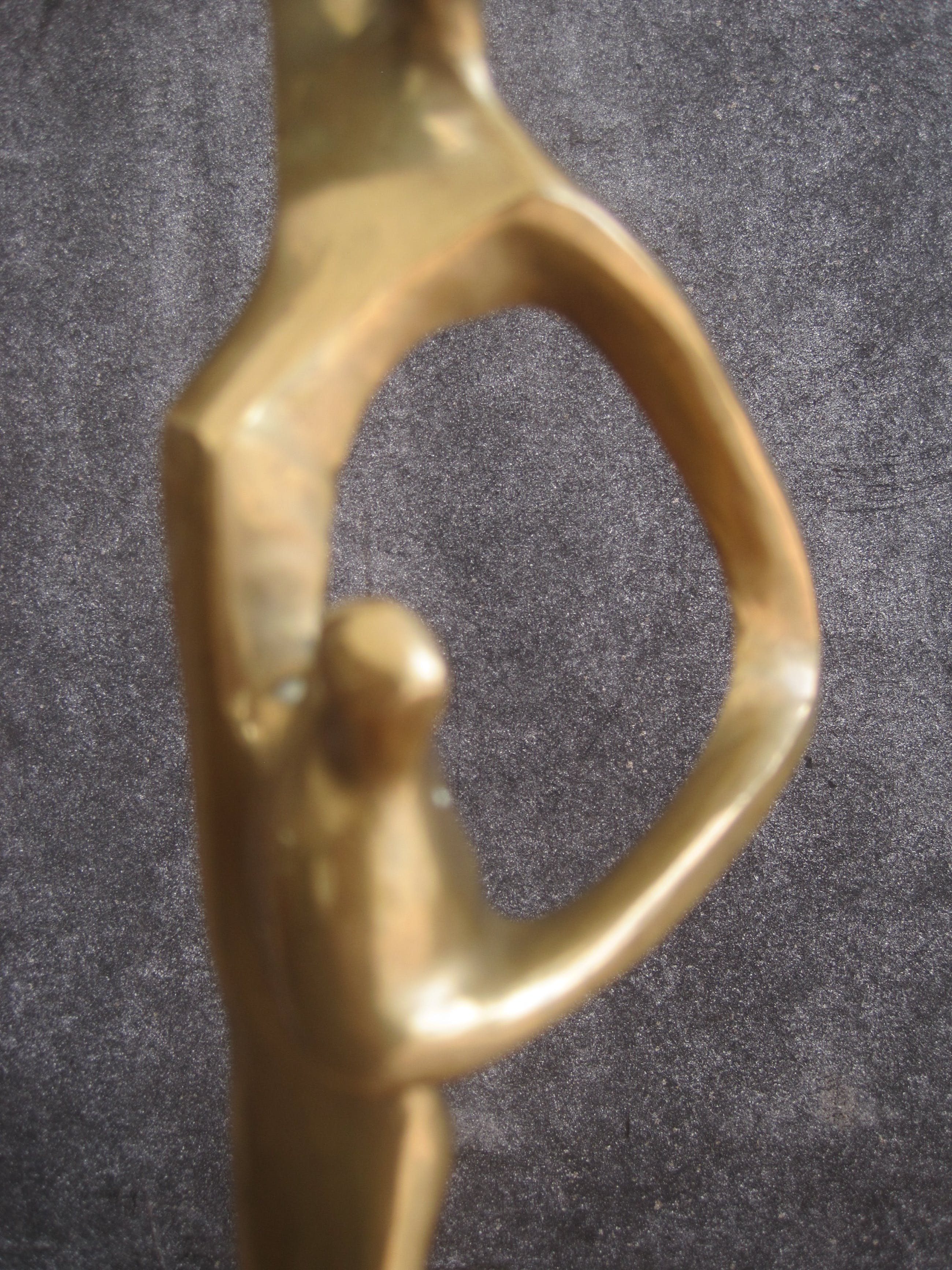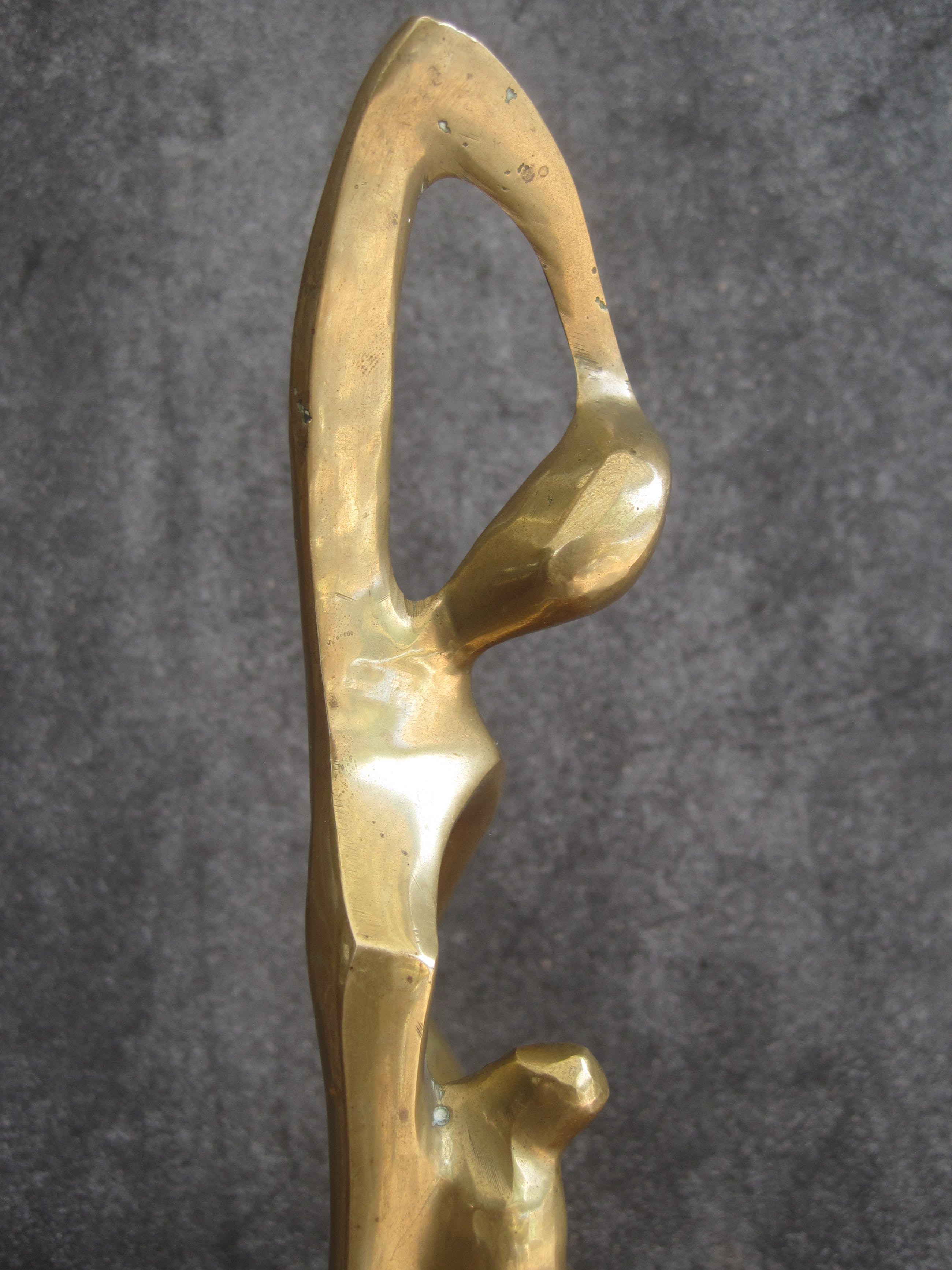 Een heel fraai en glad afgewerkt abstract kubistisch bronzen beeld. Het beeld is niet gesigneerd.