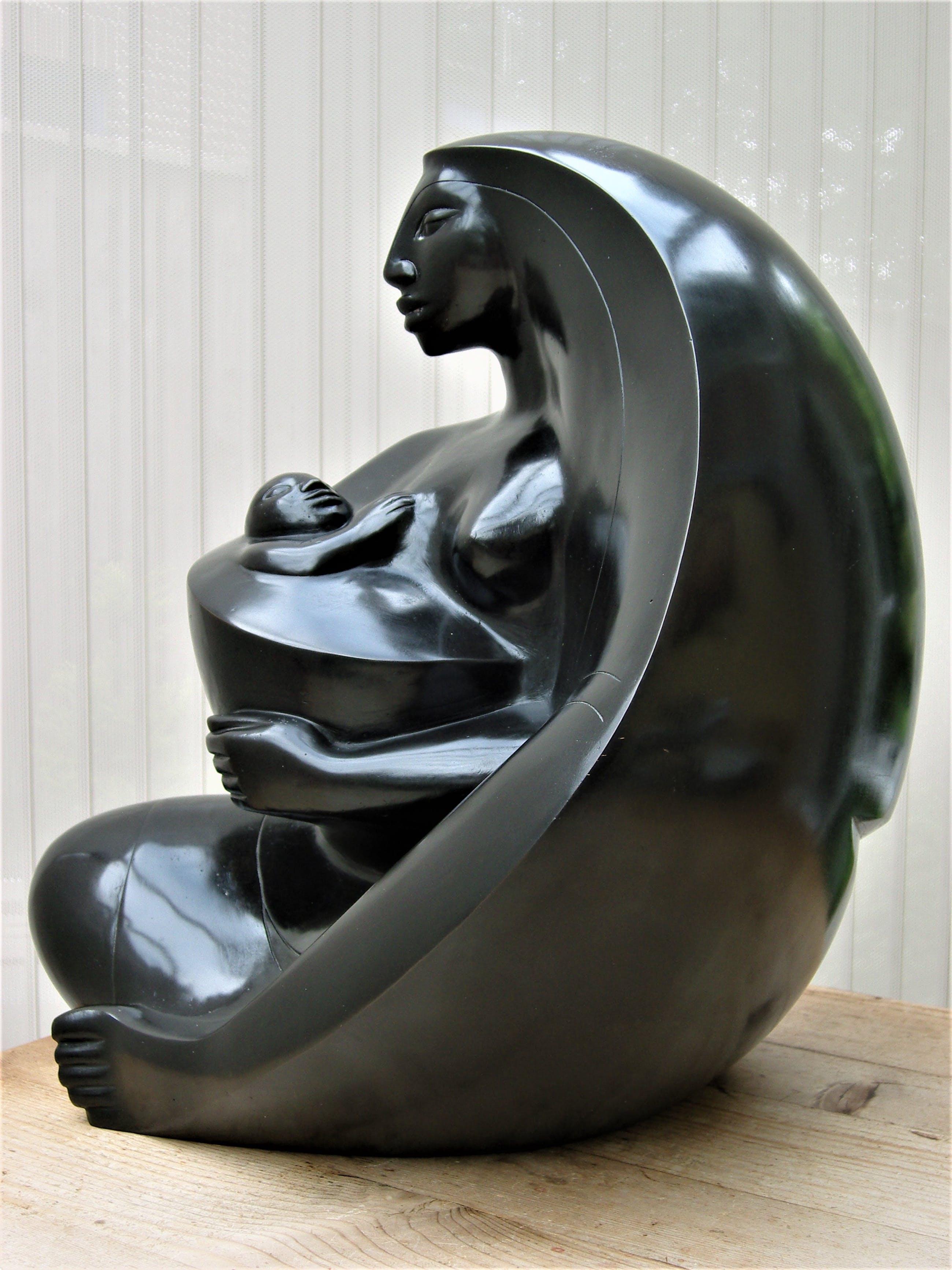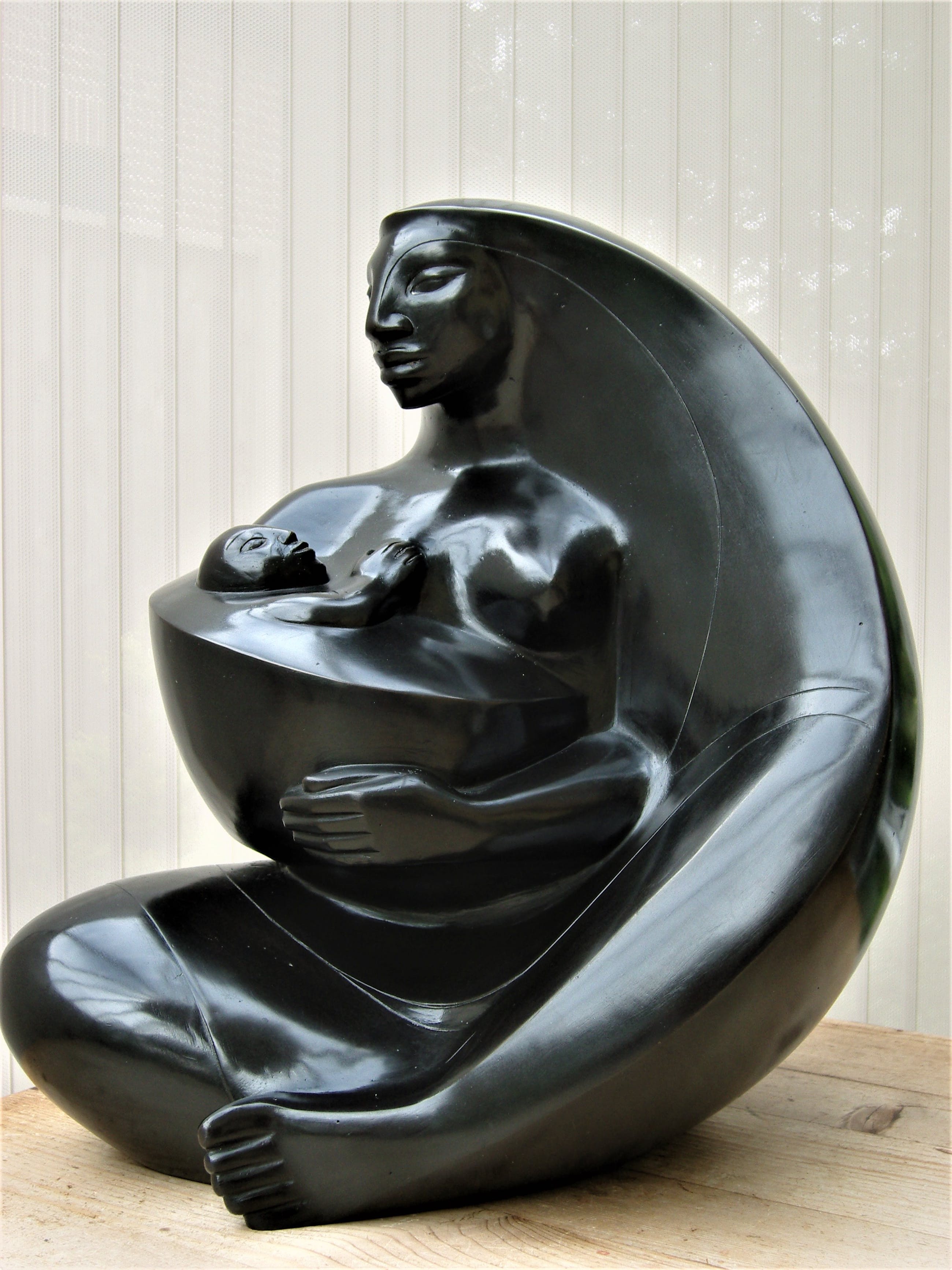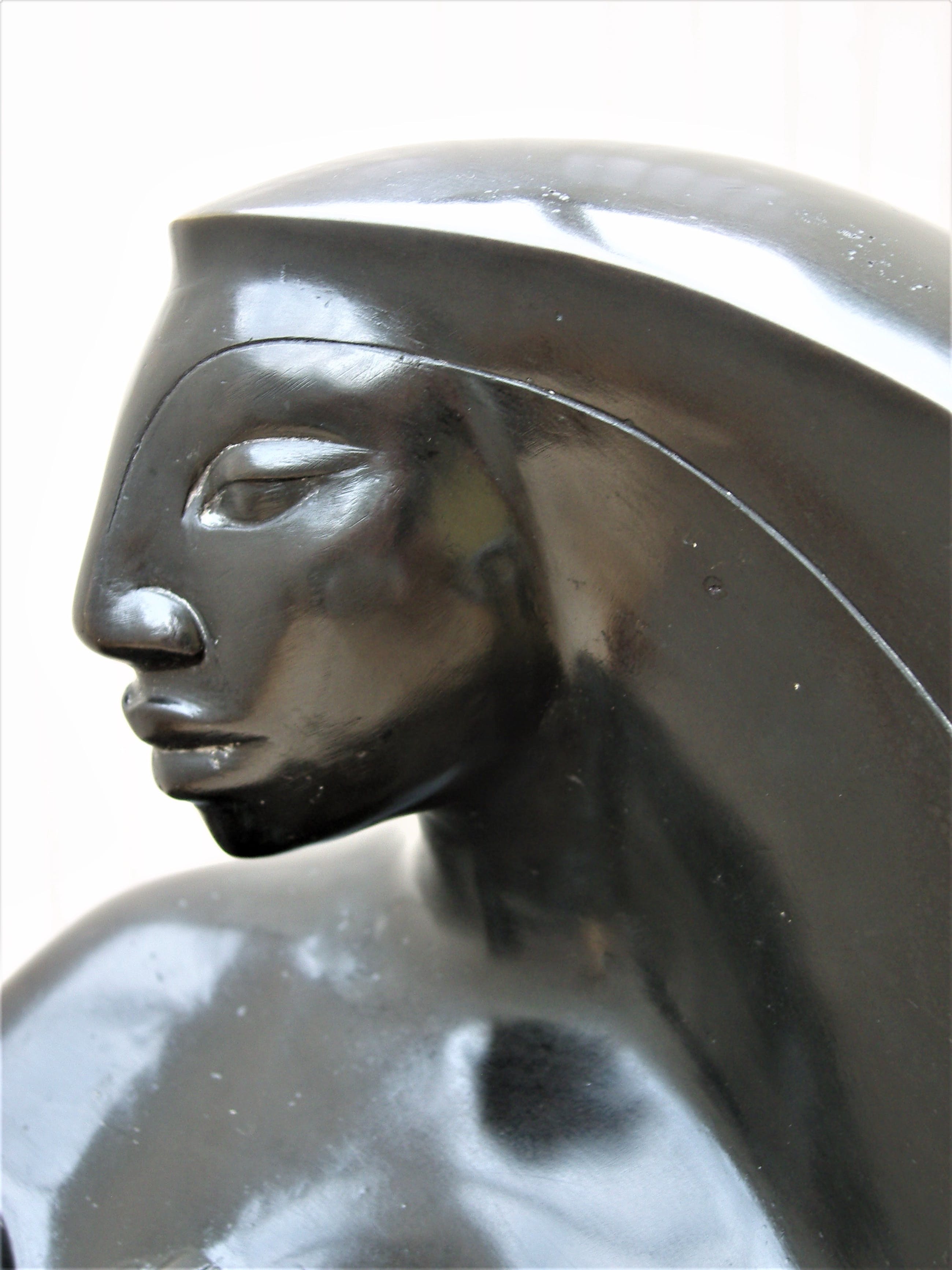 Zeer fraai en zwaar( 13,5 kg) topbeeld , helaas is de kunstenaar niet te achterhalen. Het heeft iets van de stijl en de klasse van Boris Lovet-Lorski, Allan Houser en Jimenez Deredia, helaas is het niet door één van hen gemaakt. Desondanks een beeld met waarde en zeker verder onderzoek naar de herkomst waard.