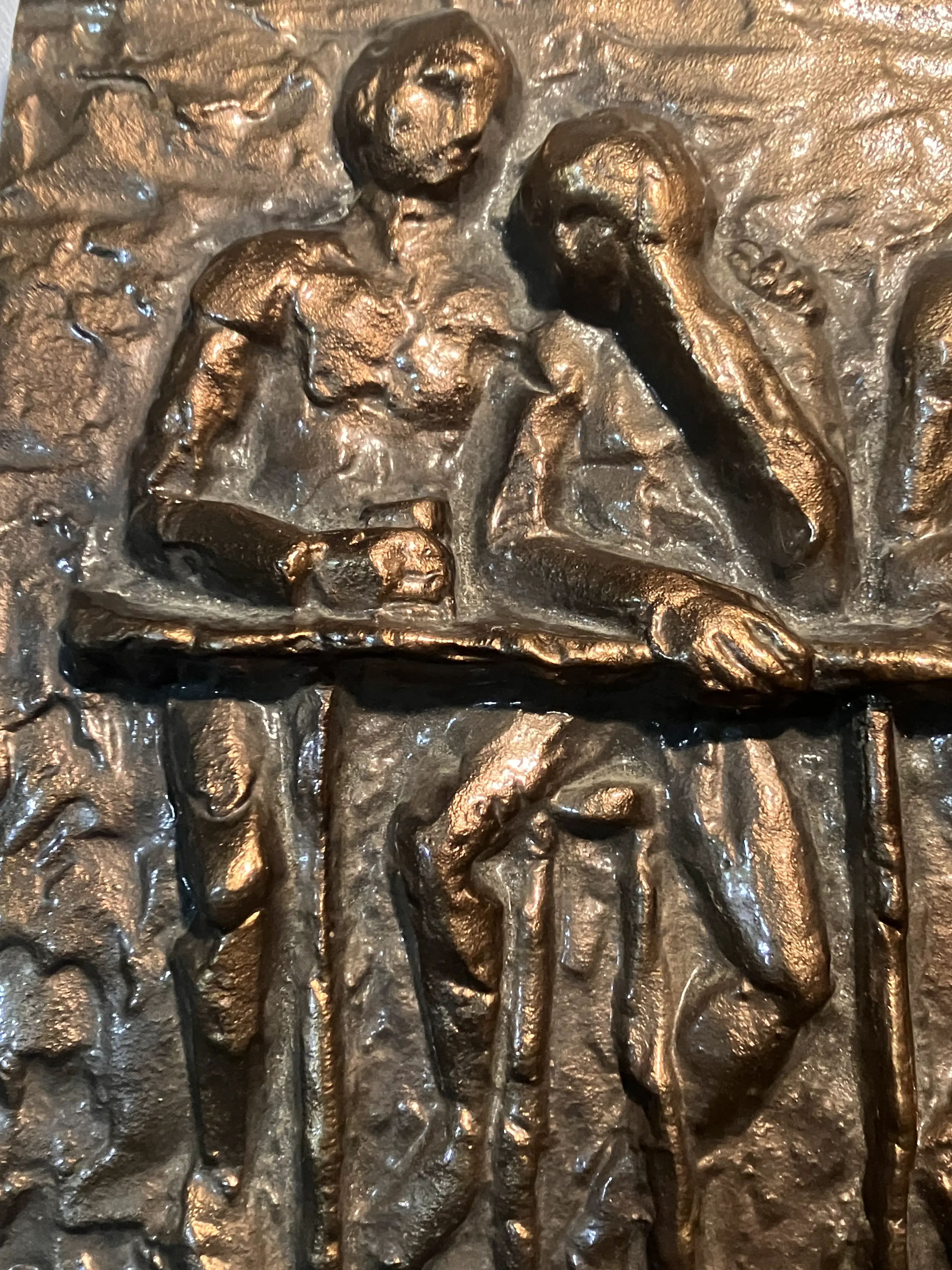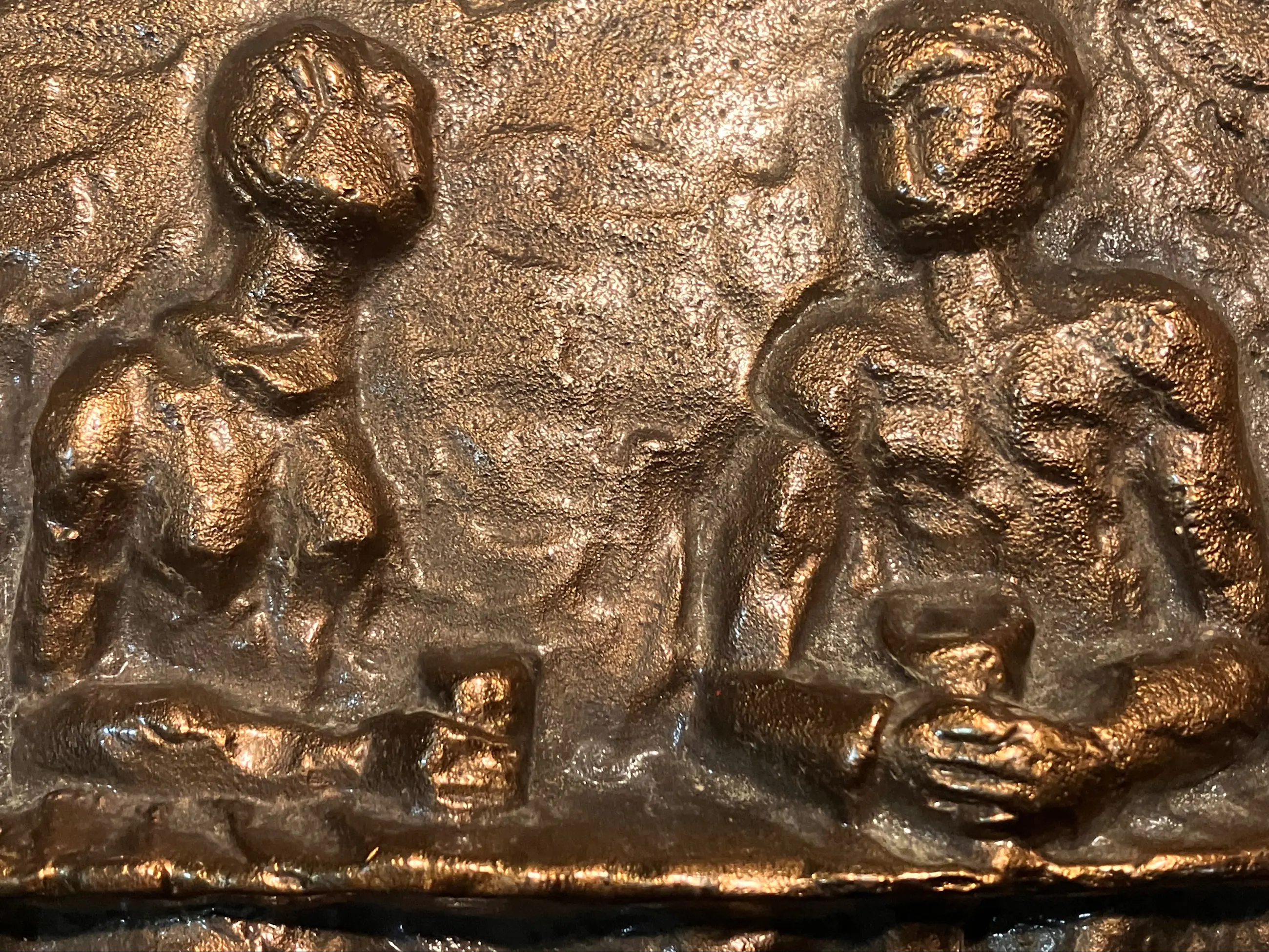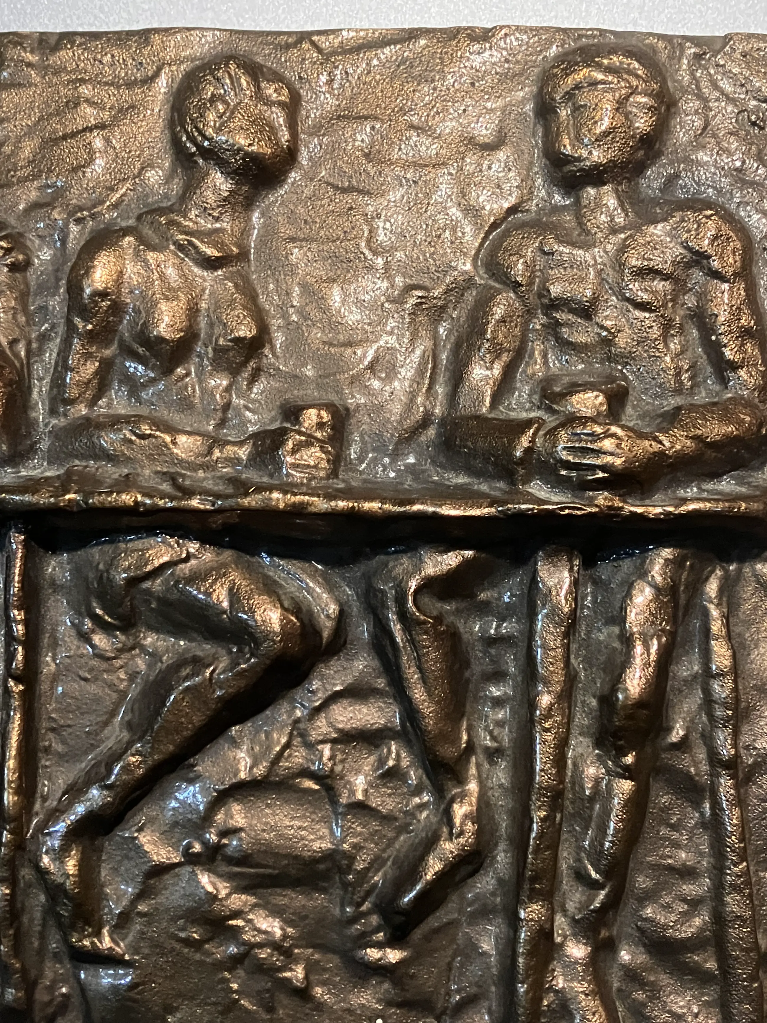Zwaar Brons Wandtableau met cafegasten. Modern hedendaags tafereel