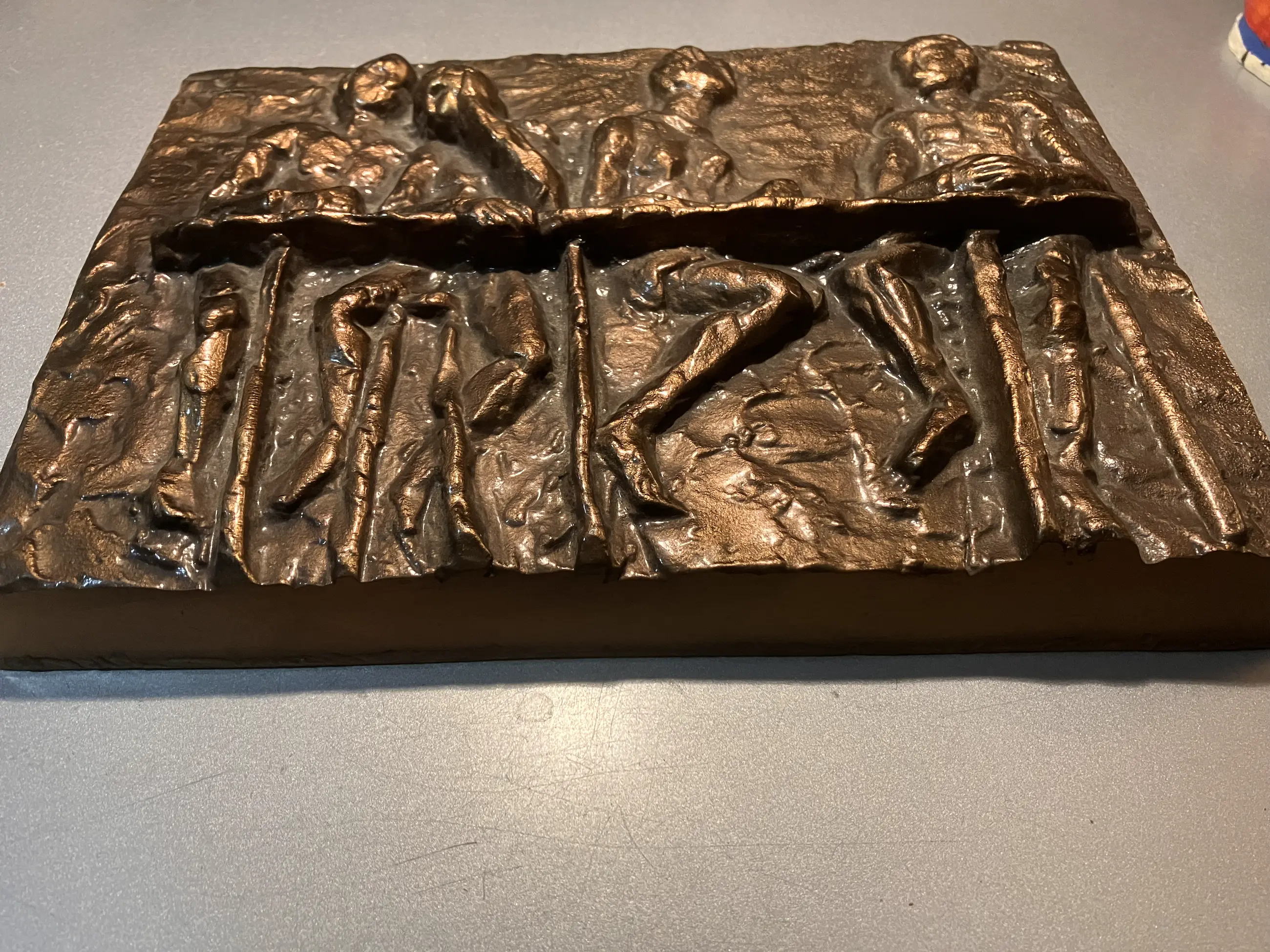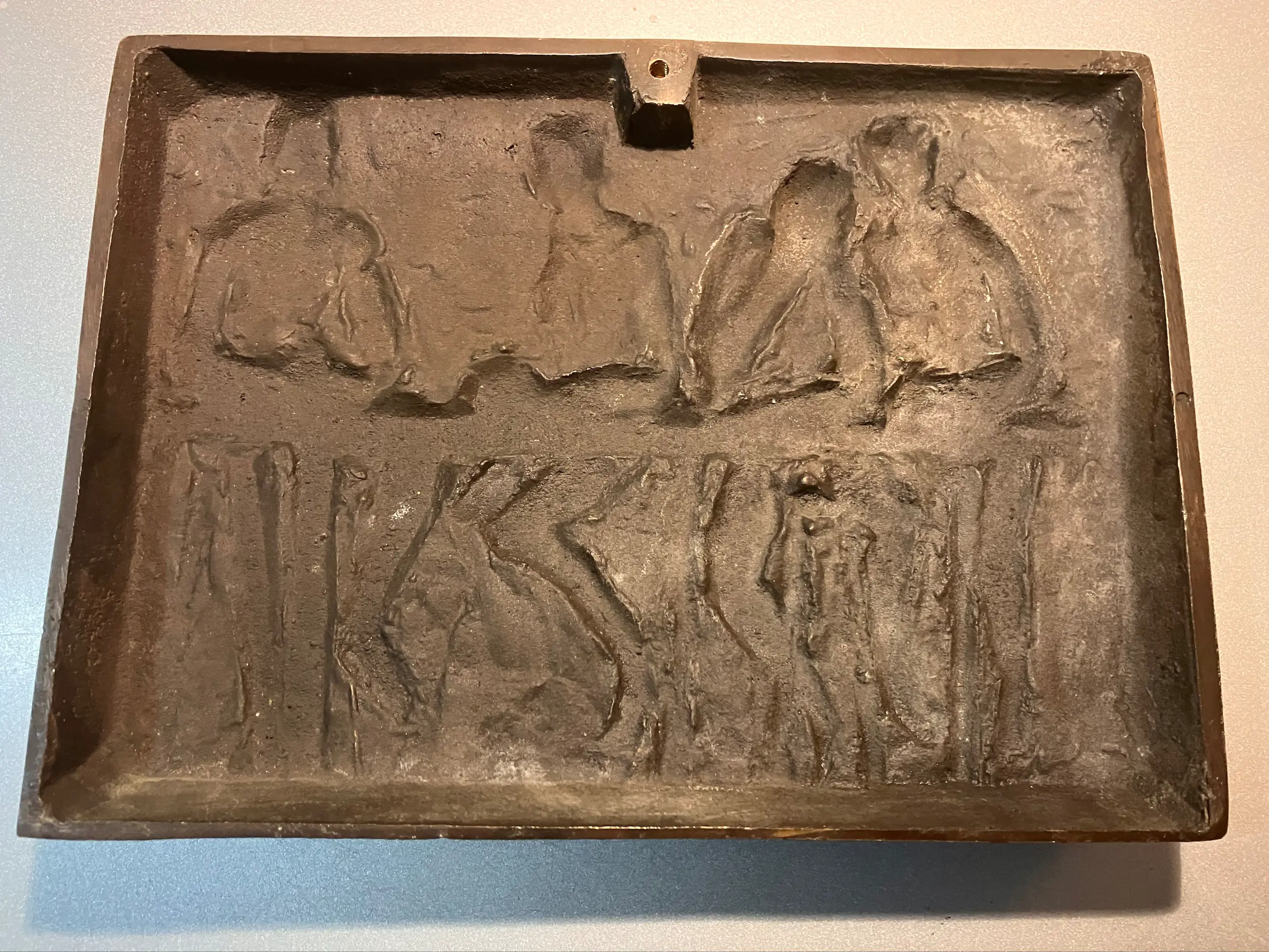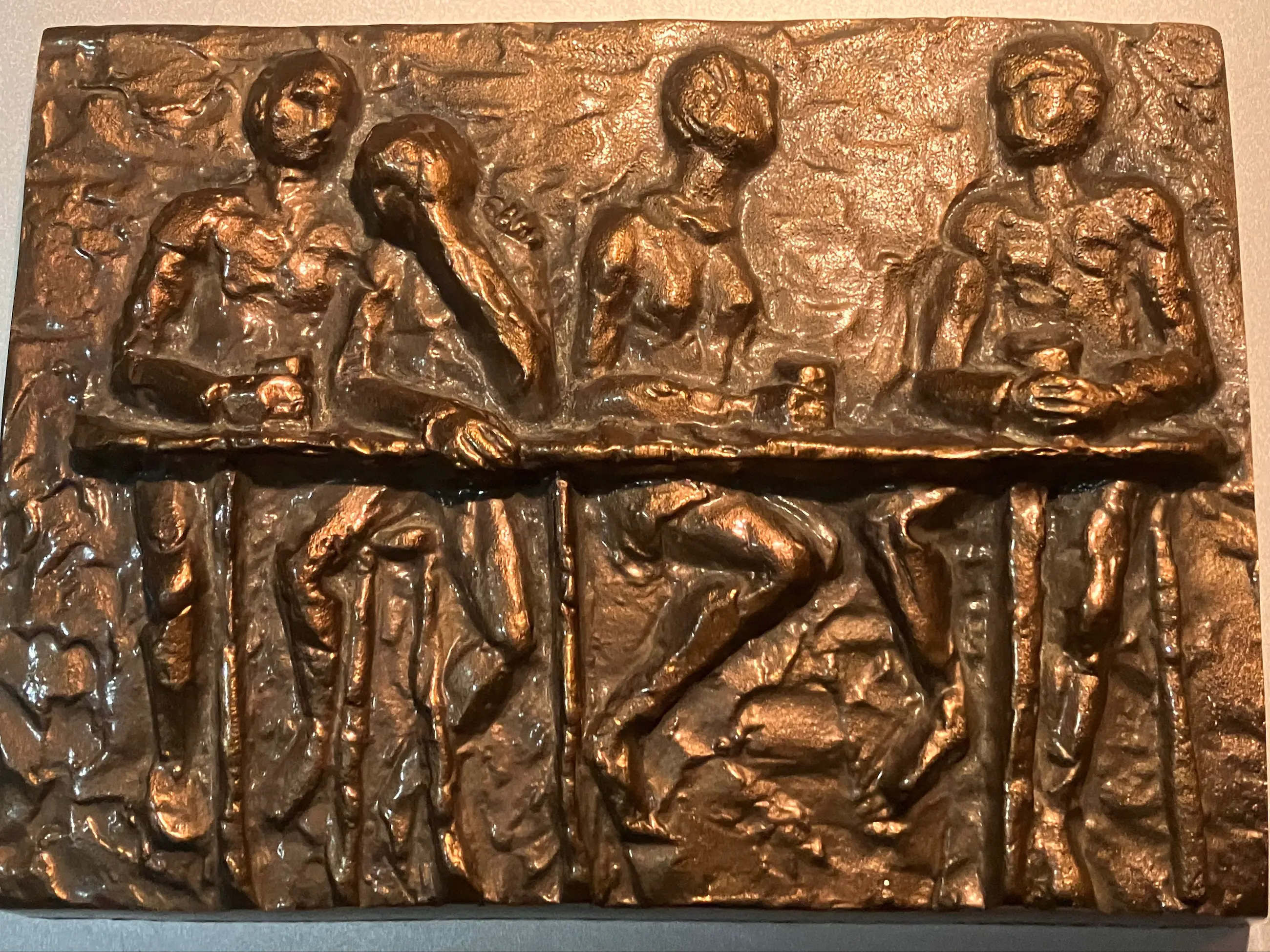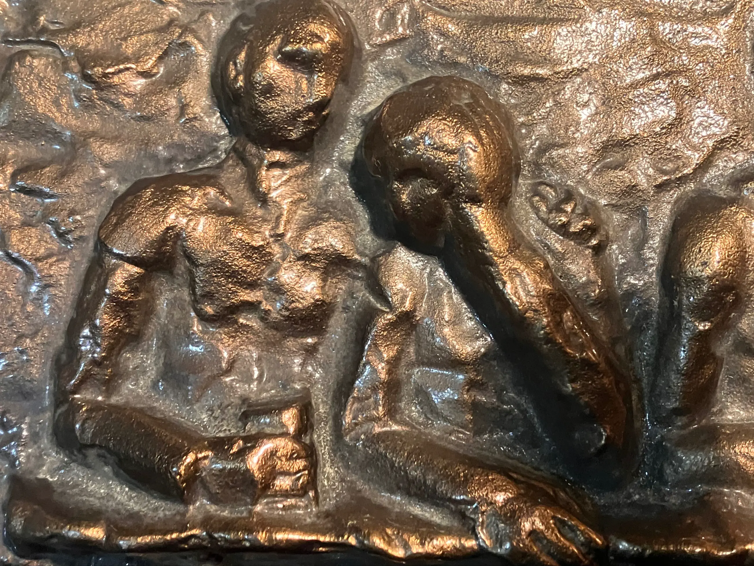 Zwaar Brons Wandtableau met cafegasten. Modern hedendaags tafereel