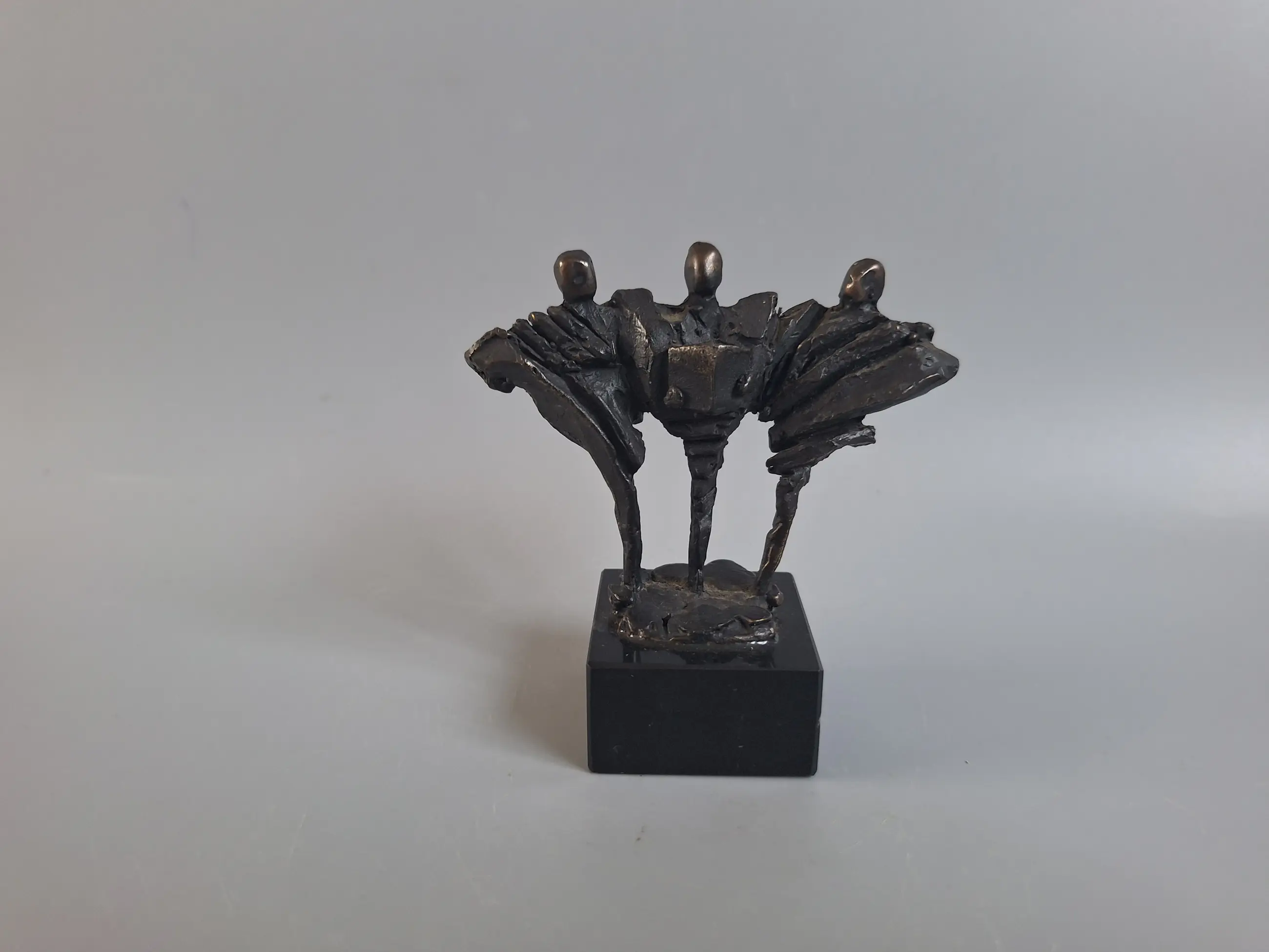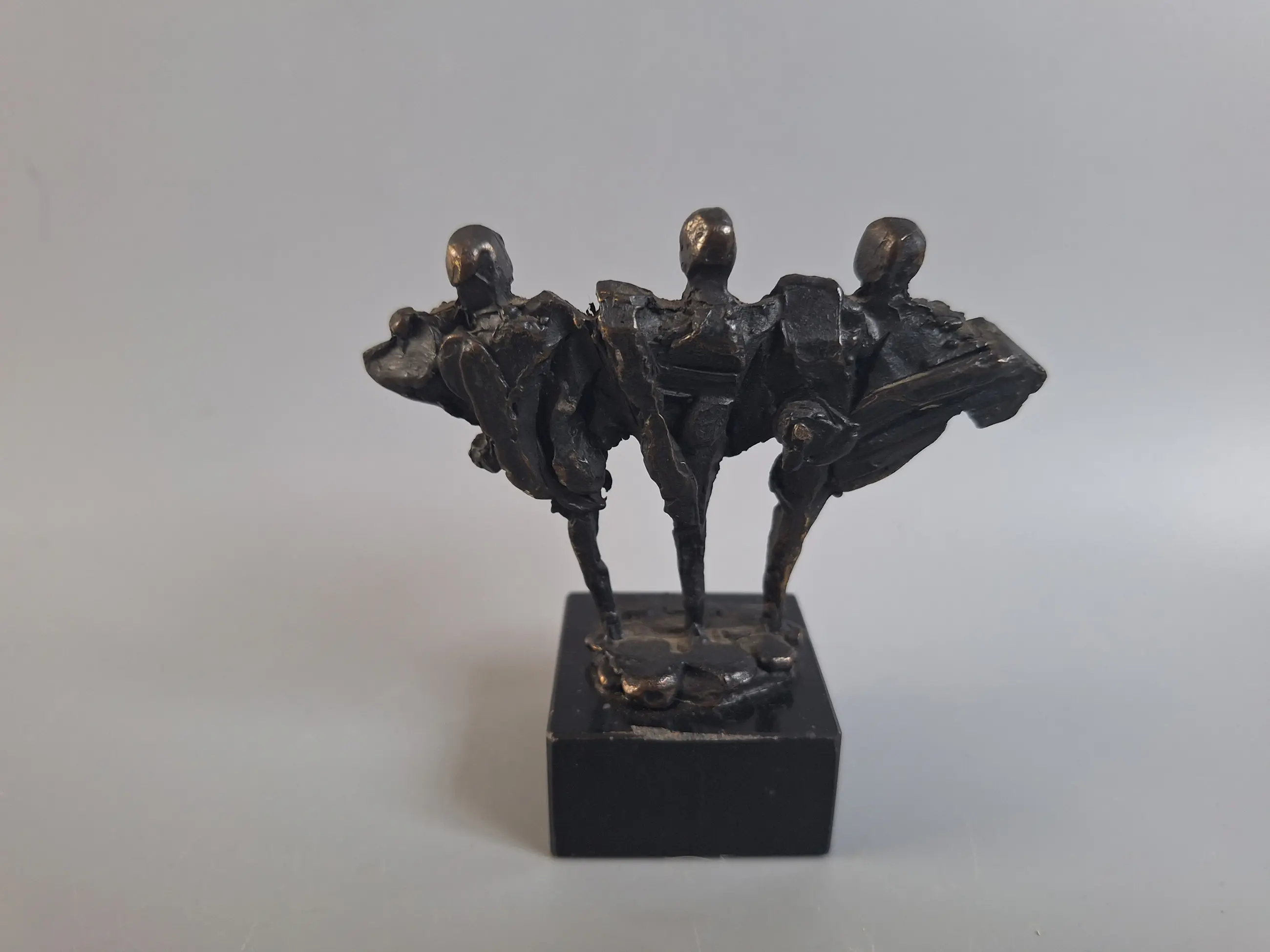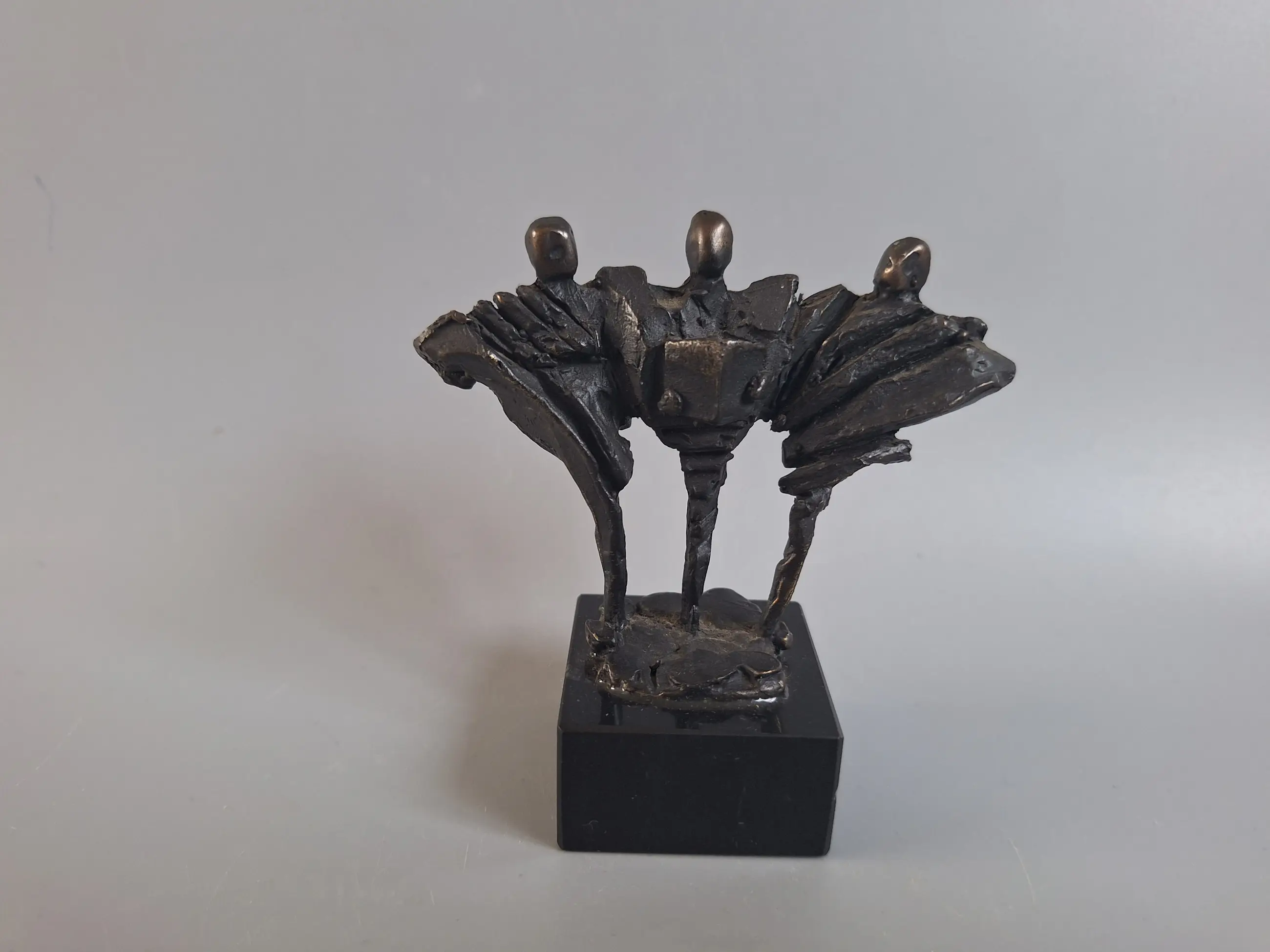Mooi brons sculptuur van 3 mensen die samen uit een boek lezen. 9,5 x 8,5 x 4 cm 200 gram