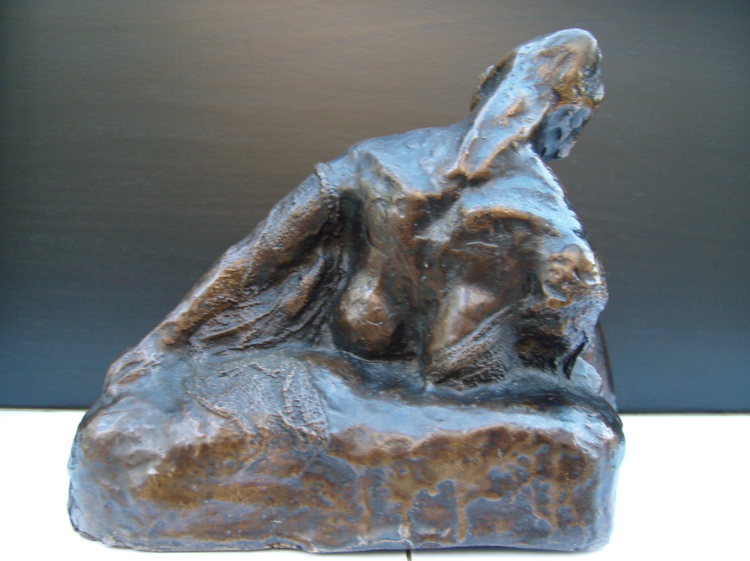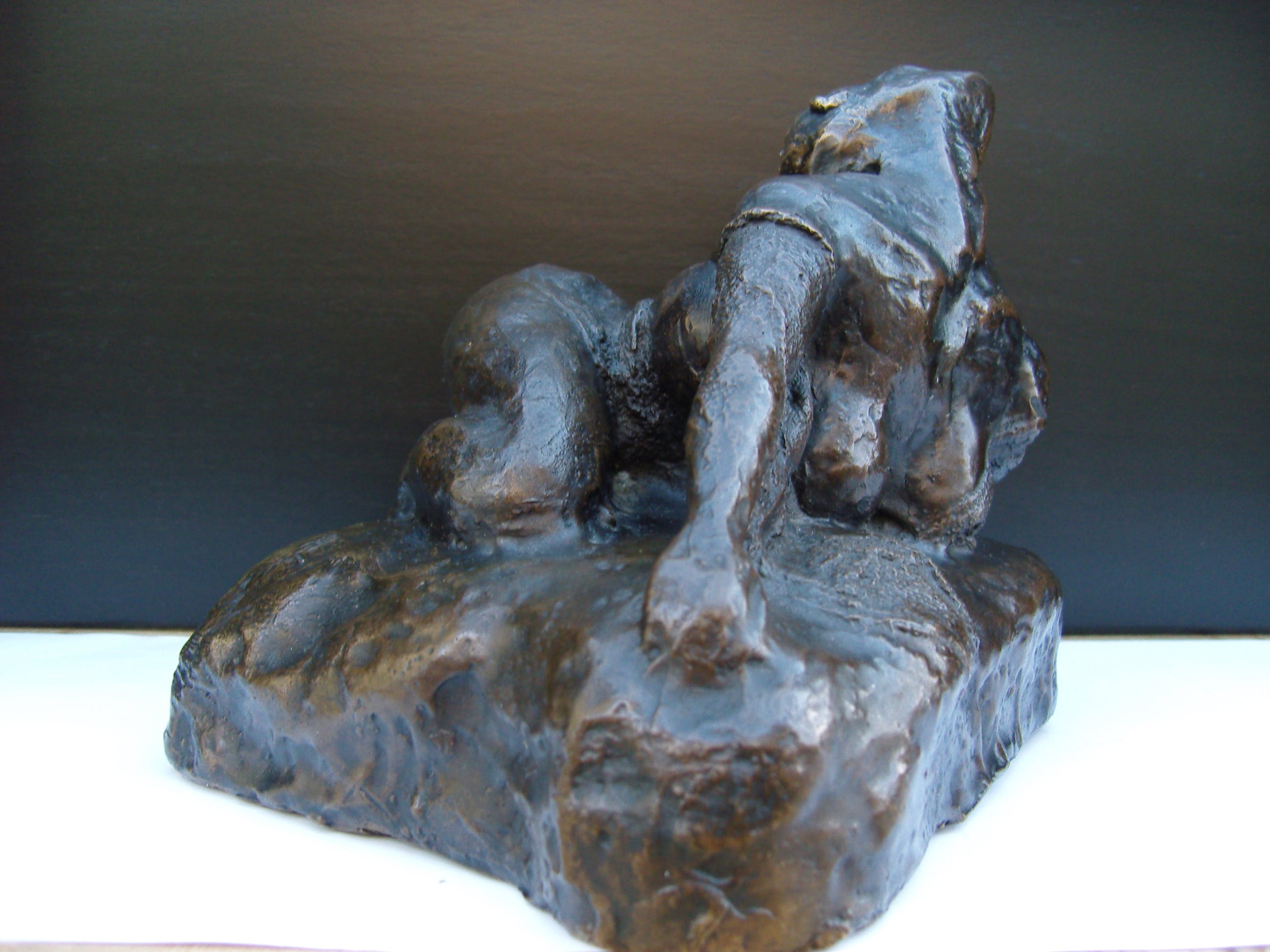 Zeer expliciet naakt van vrouw in extase. Mooi zwaar beeld. Zowel aan de binnen als aan de buitenzijde gesigneerd. De erotiek spat als het ware van het beeld af. Het is een beetje in de stijl van Leslie Stefanson maar niet van haar hand.