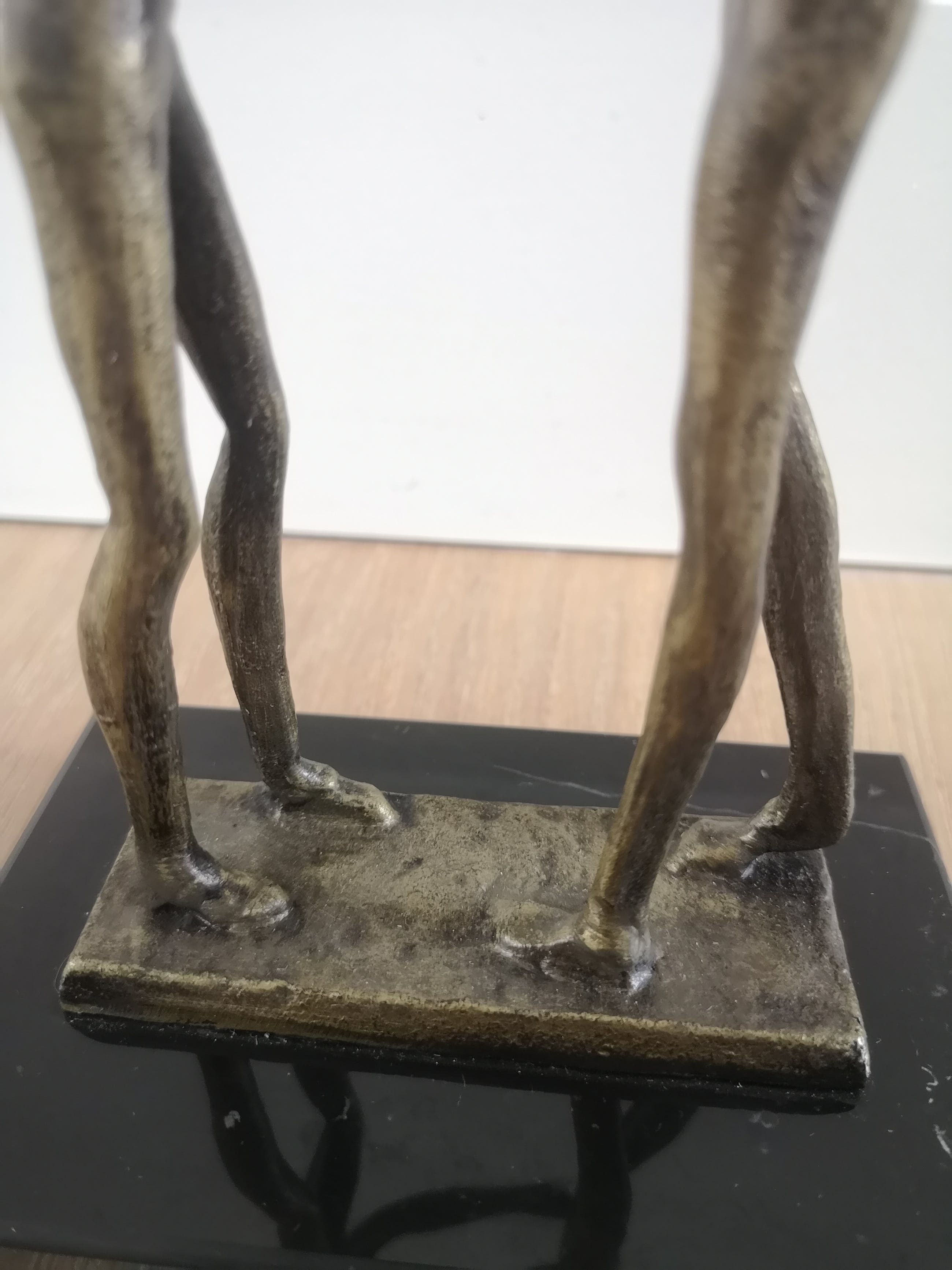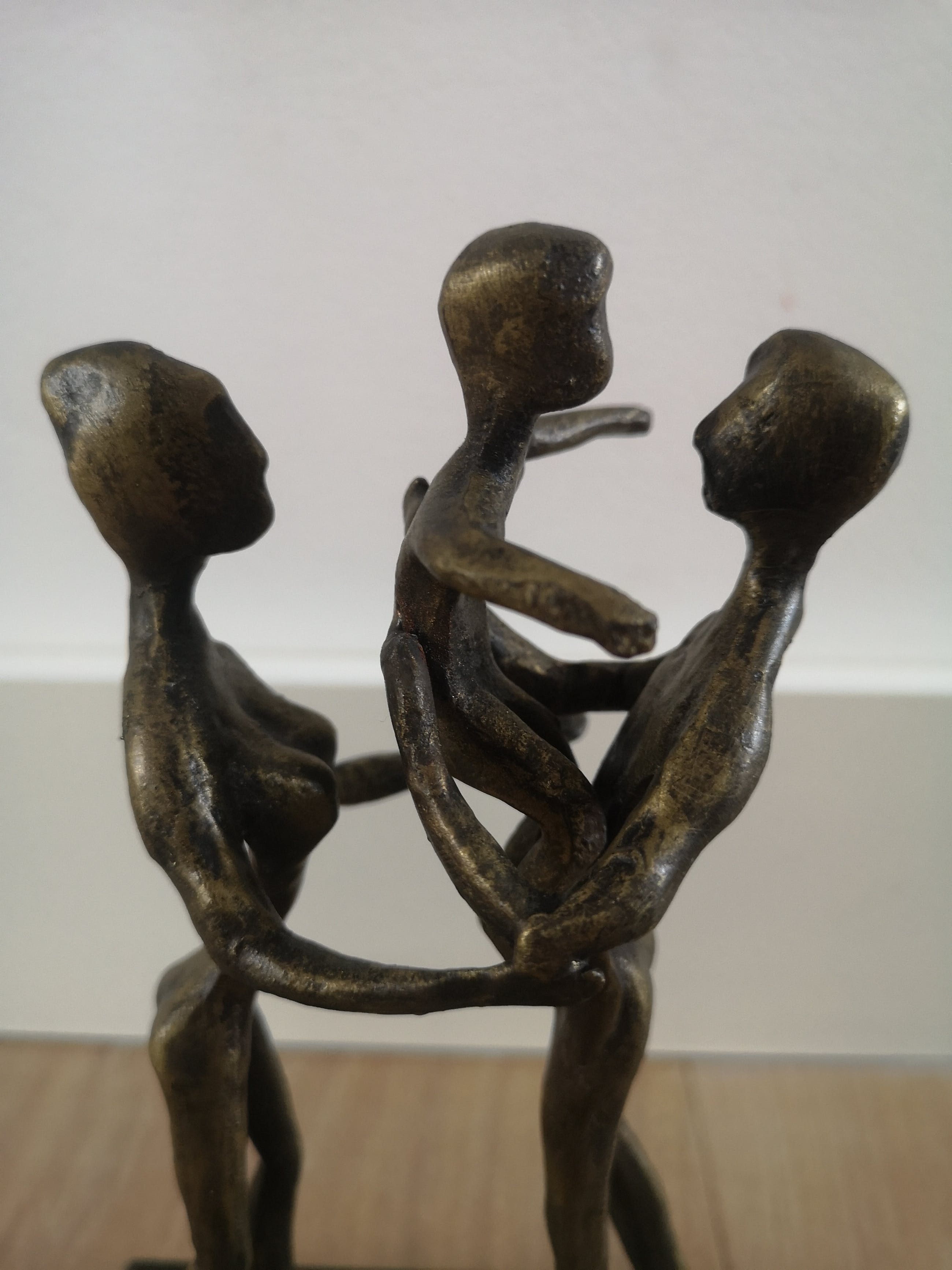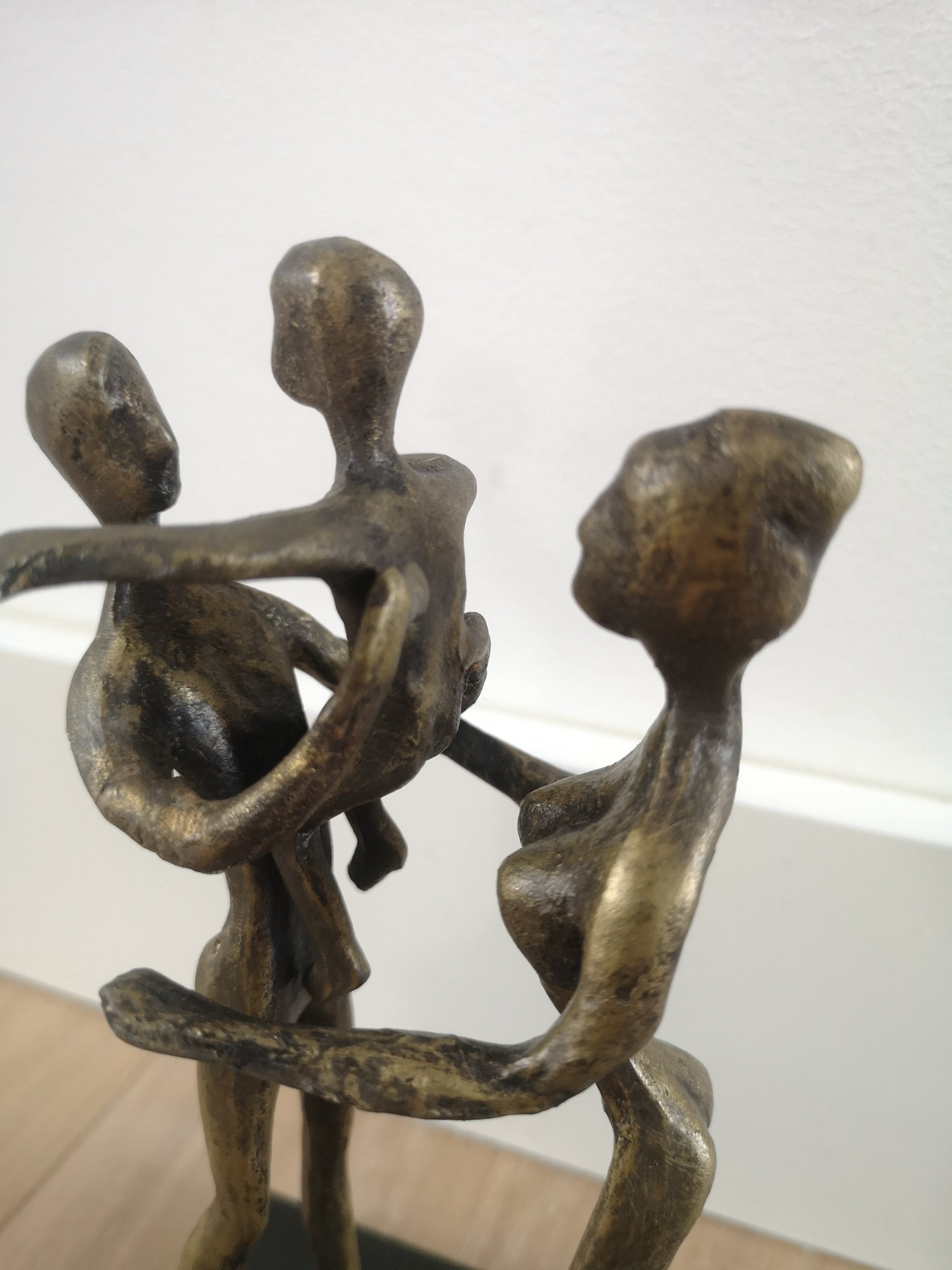 Erg mooi bronzen beeld van een man en vrouw welke gezamenlijk een kindje vasthouden. Beeld staat op een mooi marmeren voet. Hoogte van de marmeren voet is 2cm.