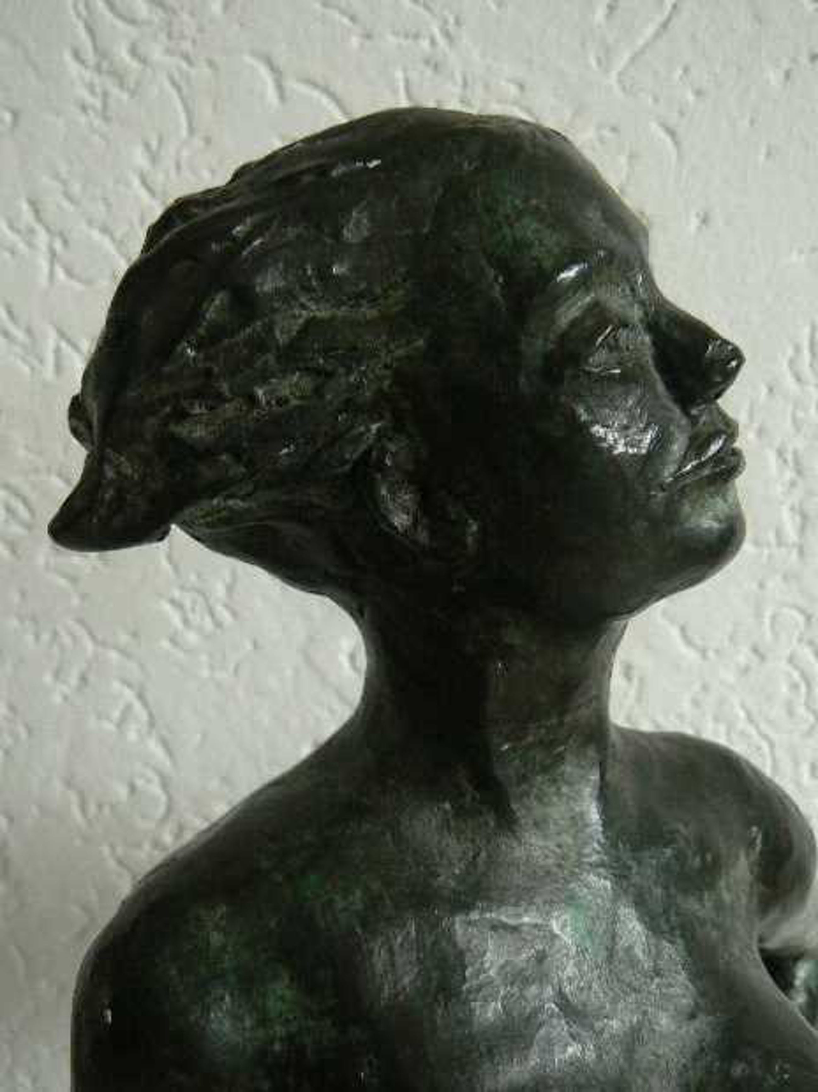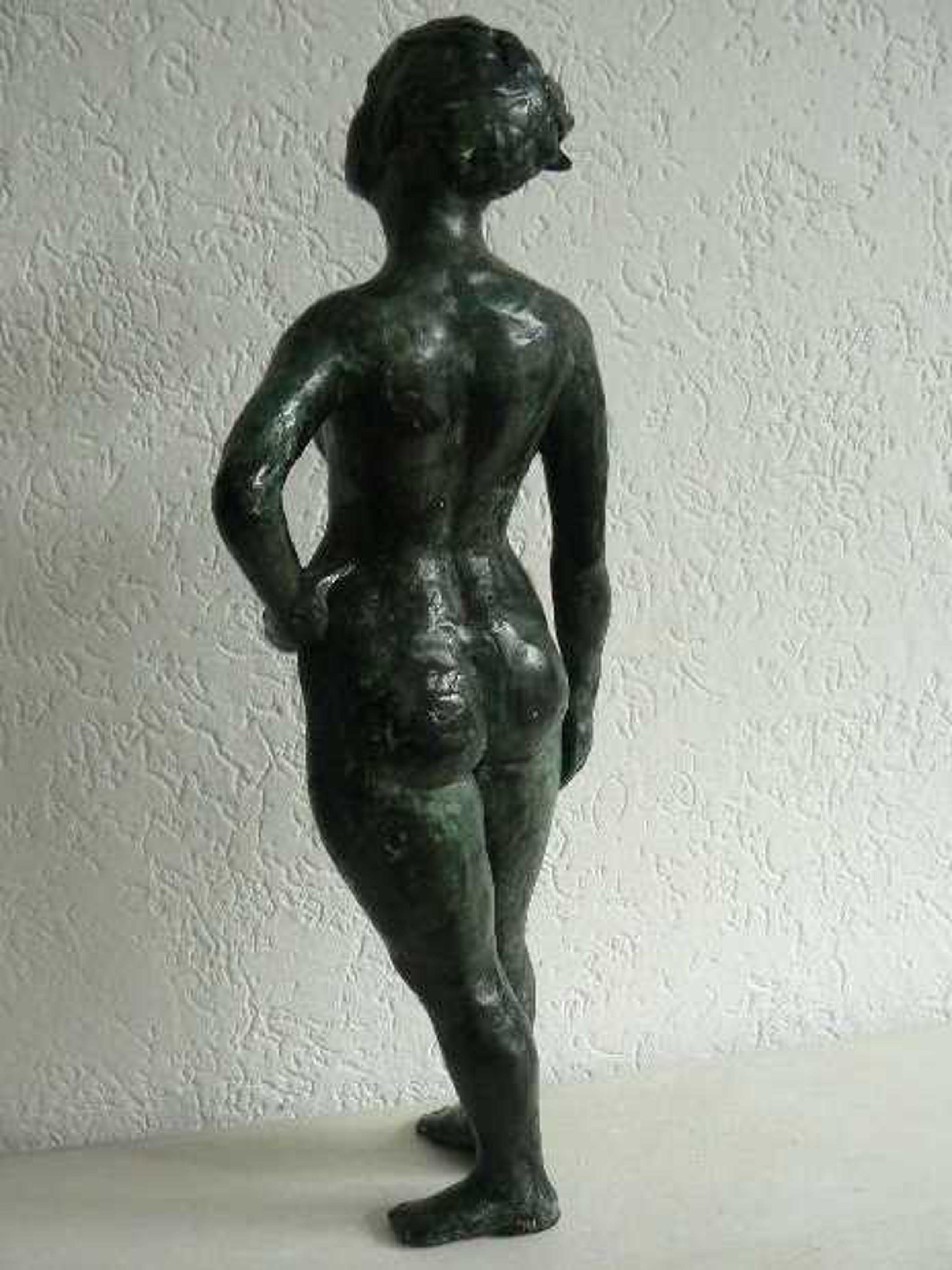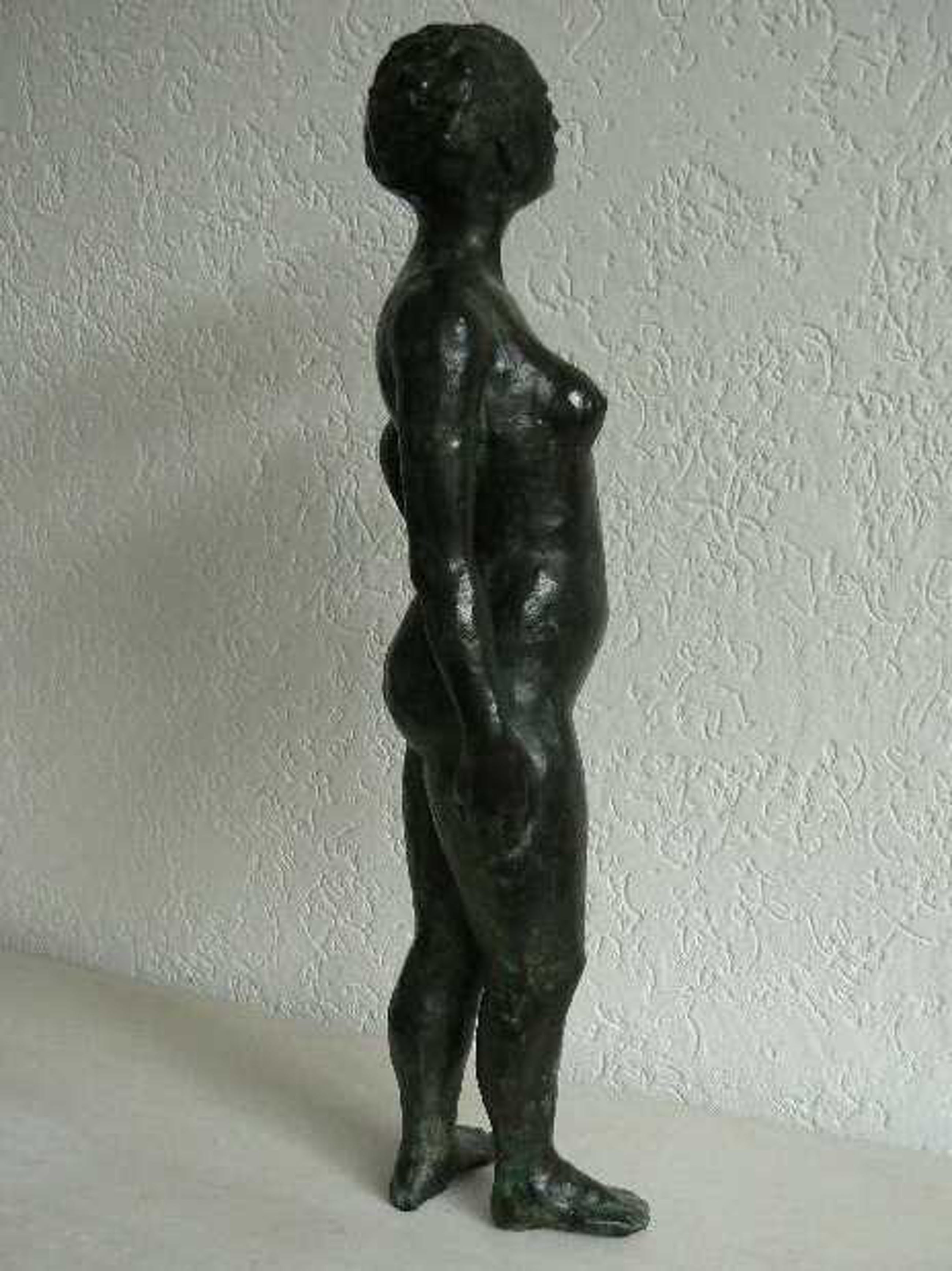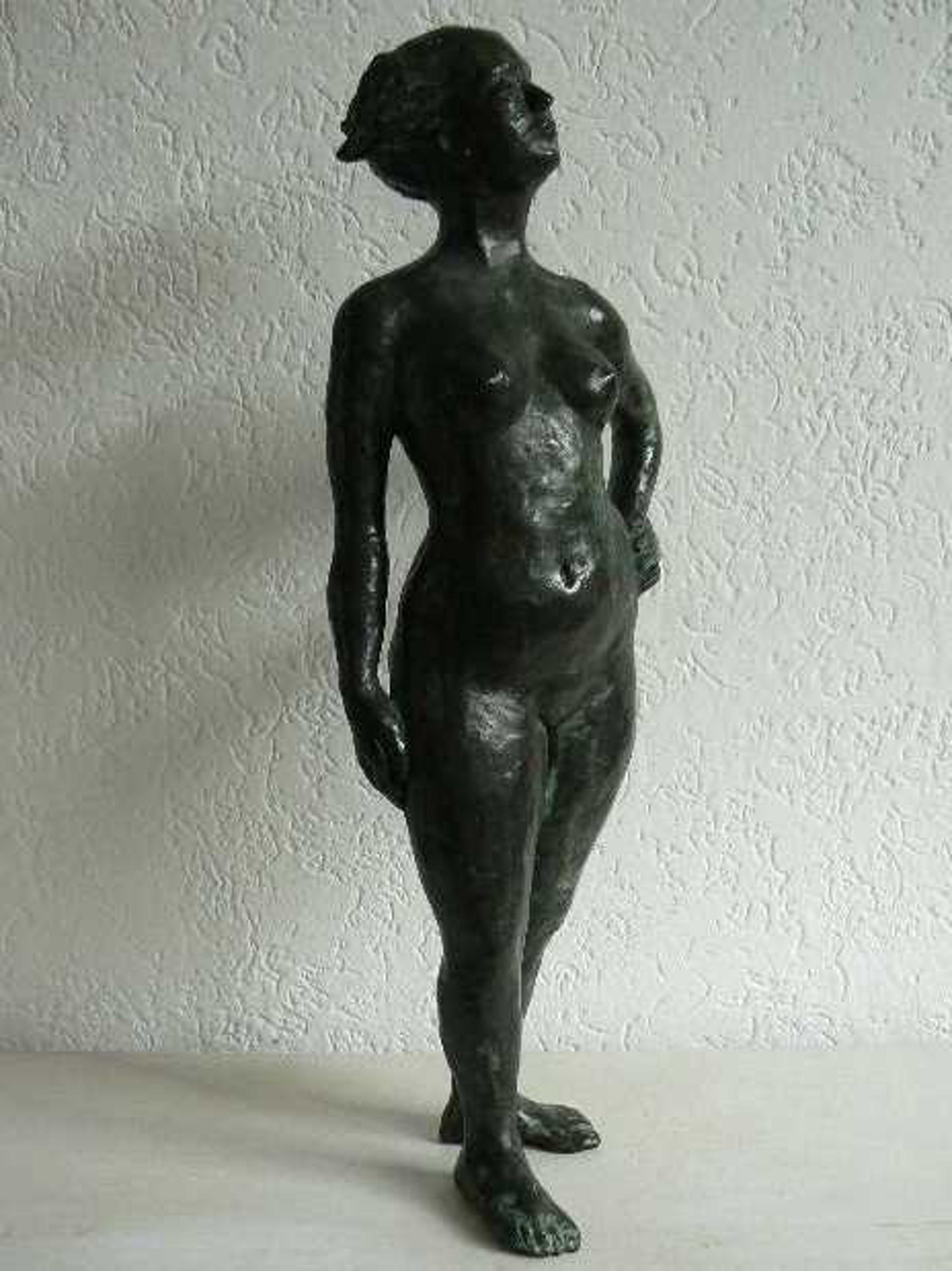 Brons naakt werk genaamd Pomoda gemaakt door Joke van der Mijle ( Dordrecht).Een zwaar beeld van ongeveer 15 kg gegoten door Myron waar maar 1 van gemaakt is dus uniek!Kan op een sokkel geplaatst worden, ( bijv voor tuin ornament) door dat er 4 schroef gaten aanwezig zijn aan de onderzijde.