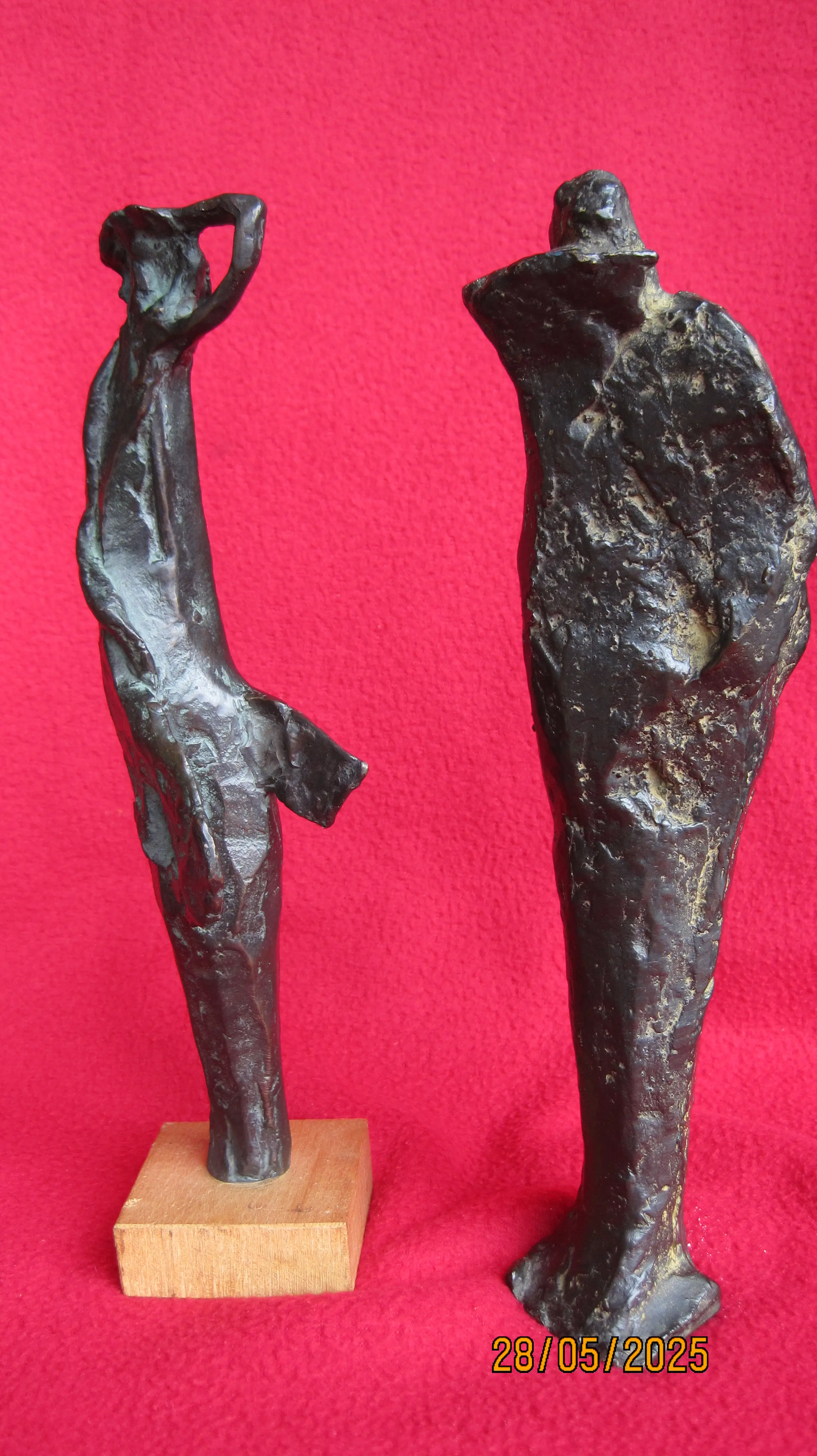 Afmetingen vrouw zonder sokkel: 24 x 4,5 x 6 cm. Gewicht 1200 gram. Gesigneerd MSK 2. Afmetingen man: 26,5 x 6,5 x5,5 cm. Gewicht 1200 gram. Gesigneerd MSK 1/5