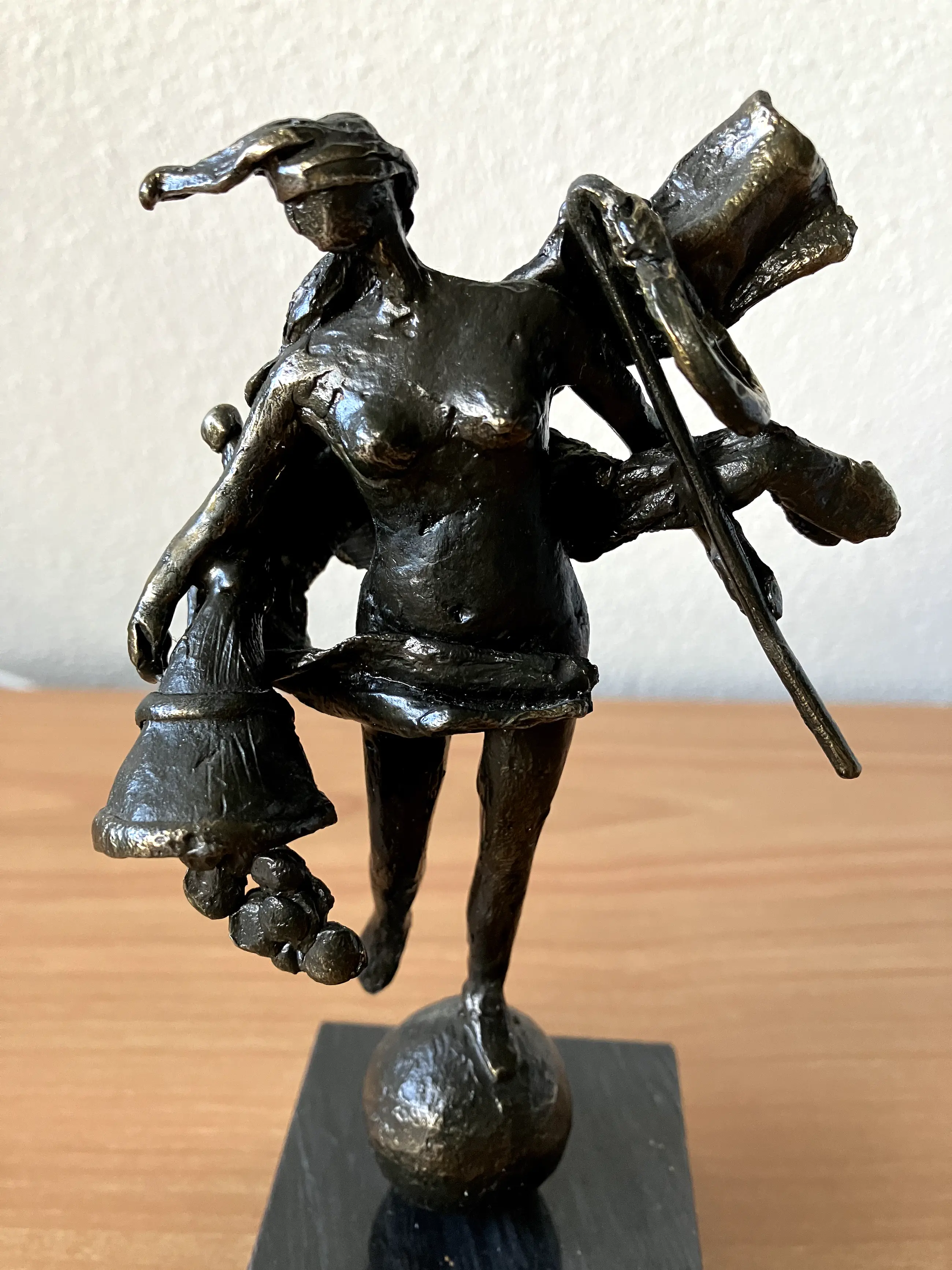 Het beeld staat op een zwart marmeren voet - het geheel is 16 cm hoog.