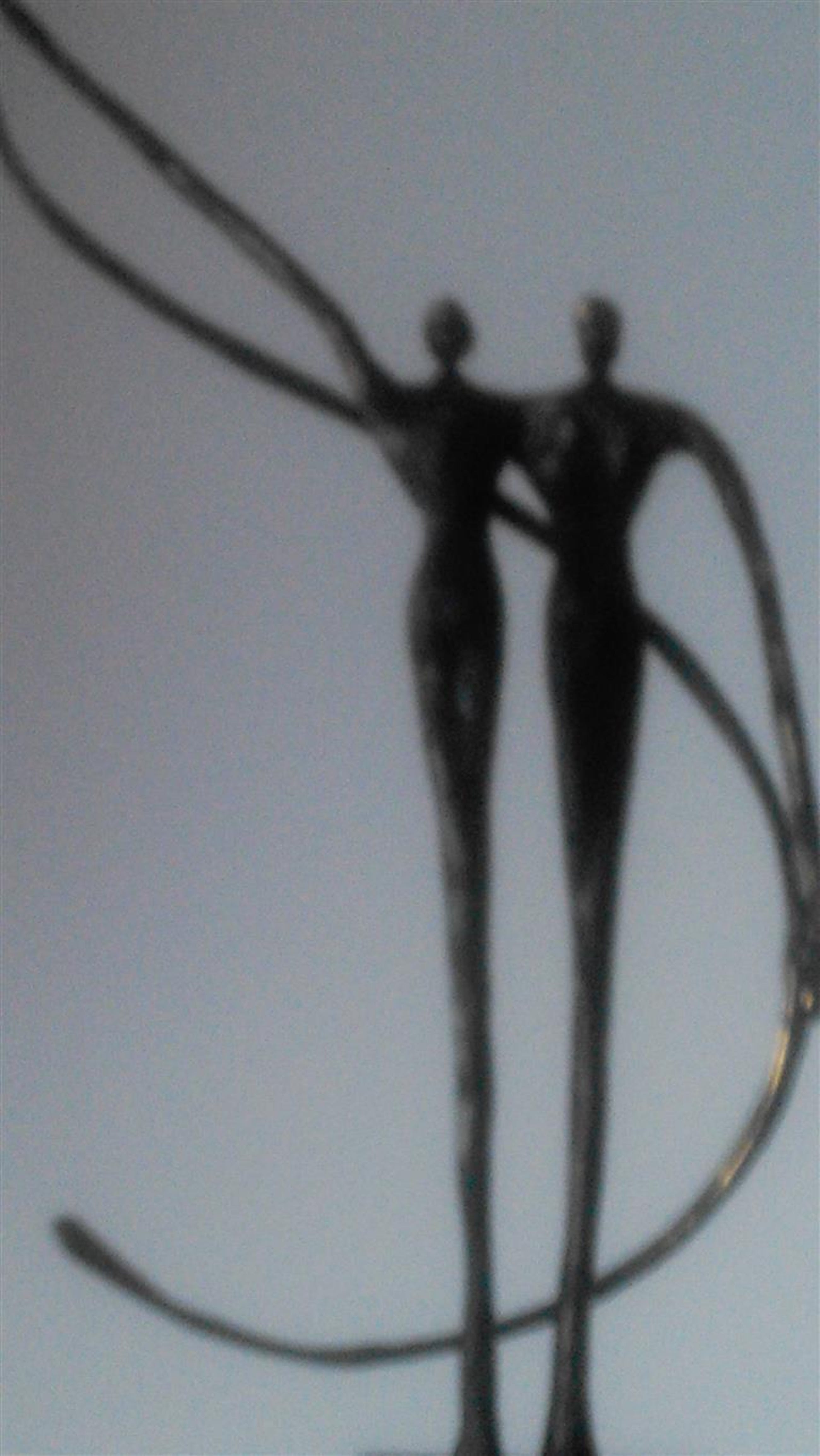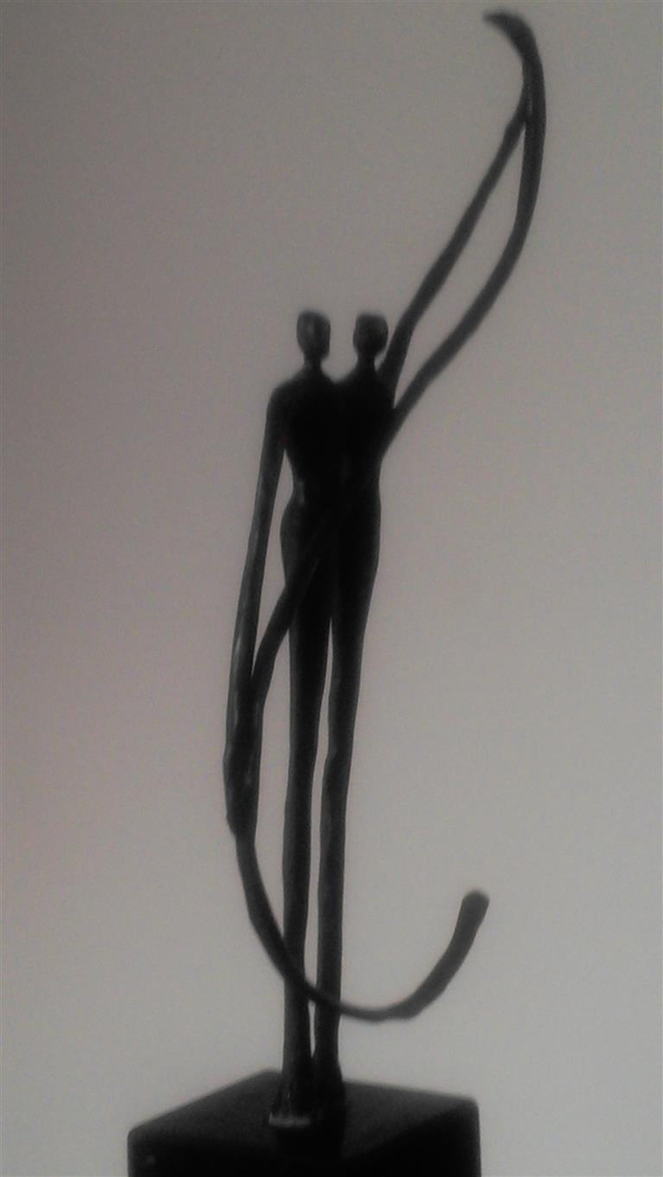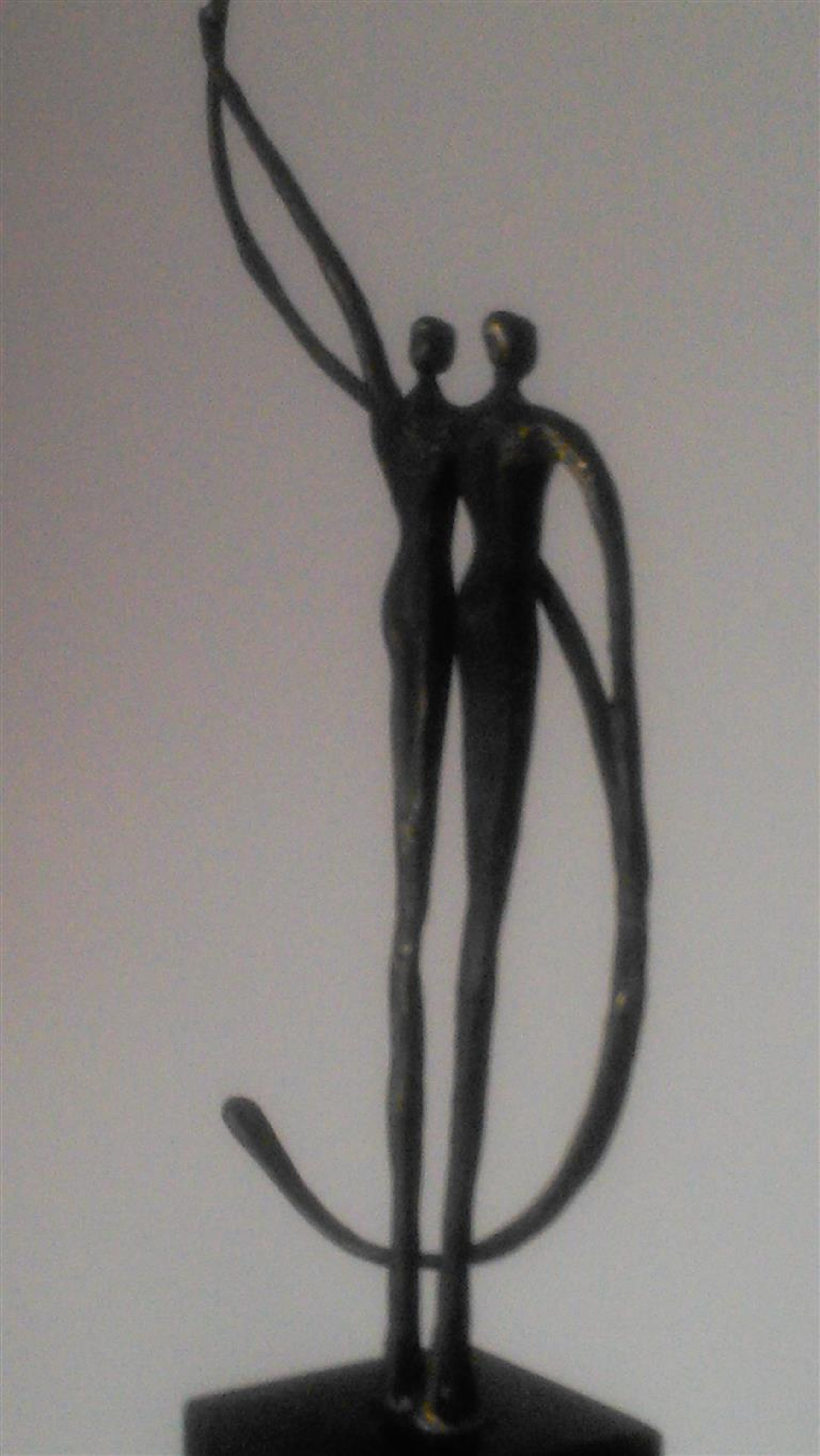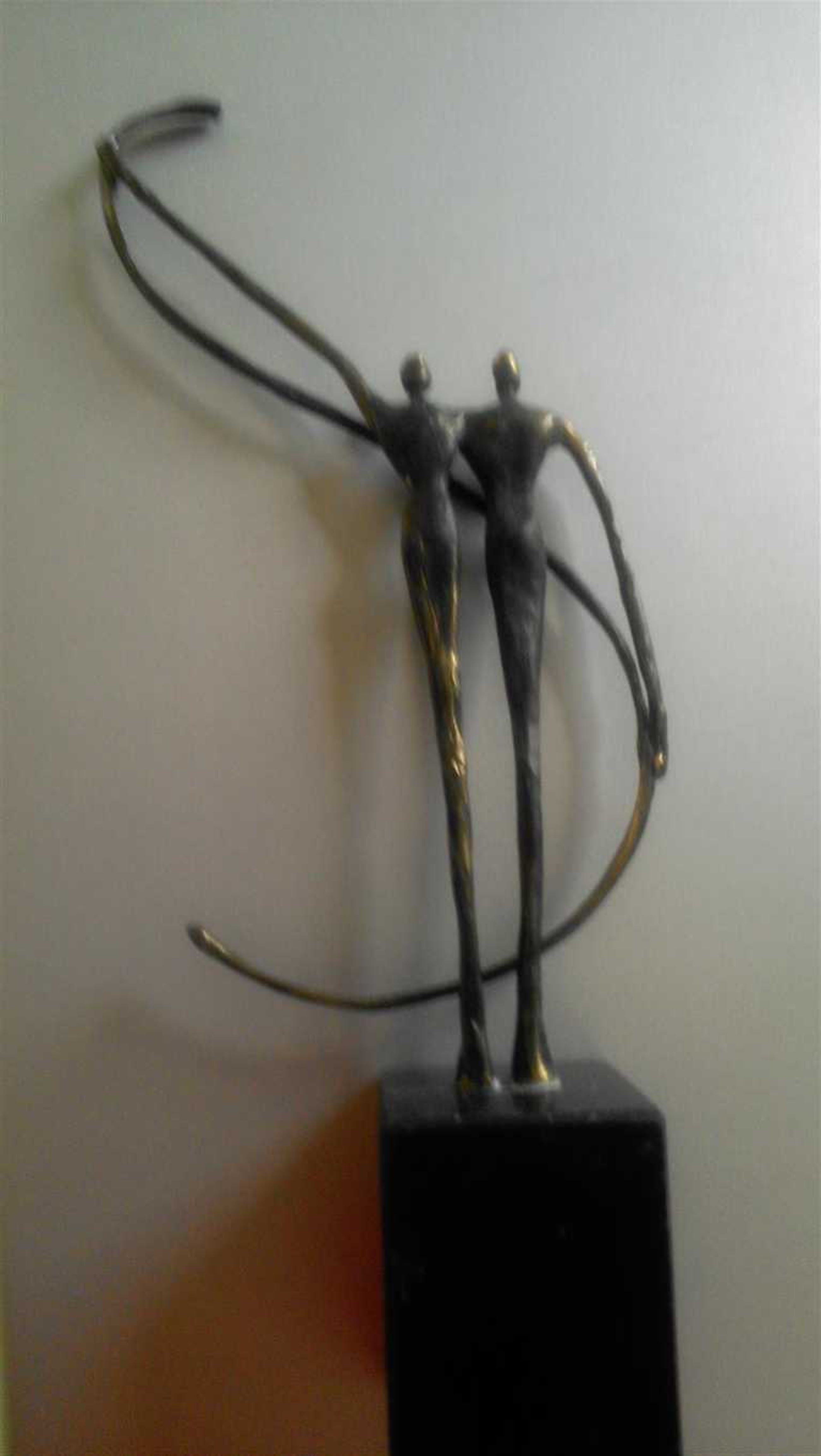 Welhaast zeker van Corry Ammerlaan qua stijl heeft het beeldje er veel mee overeen Samen hebben ze iets moois volbracht en dat moet gevierd worden Op zwarte natuurstenen sokkel van 5 x 5 cm en 7 cm hoog