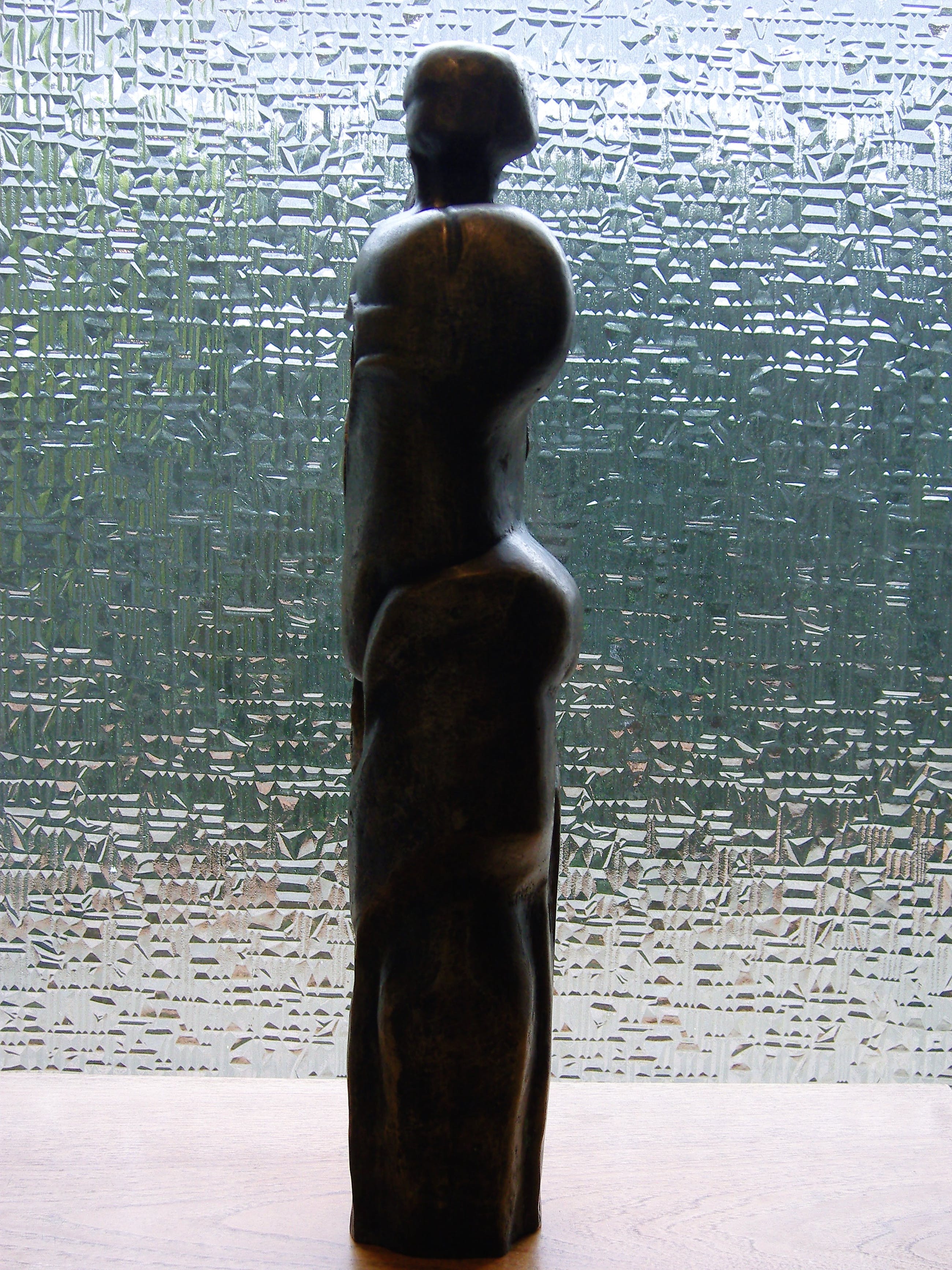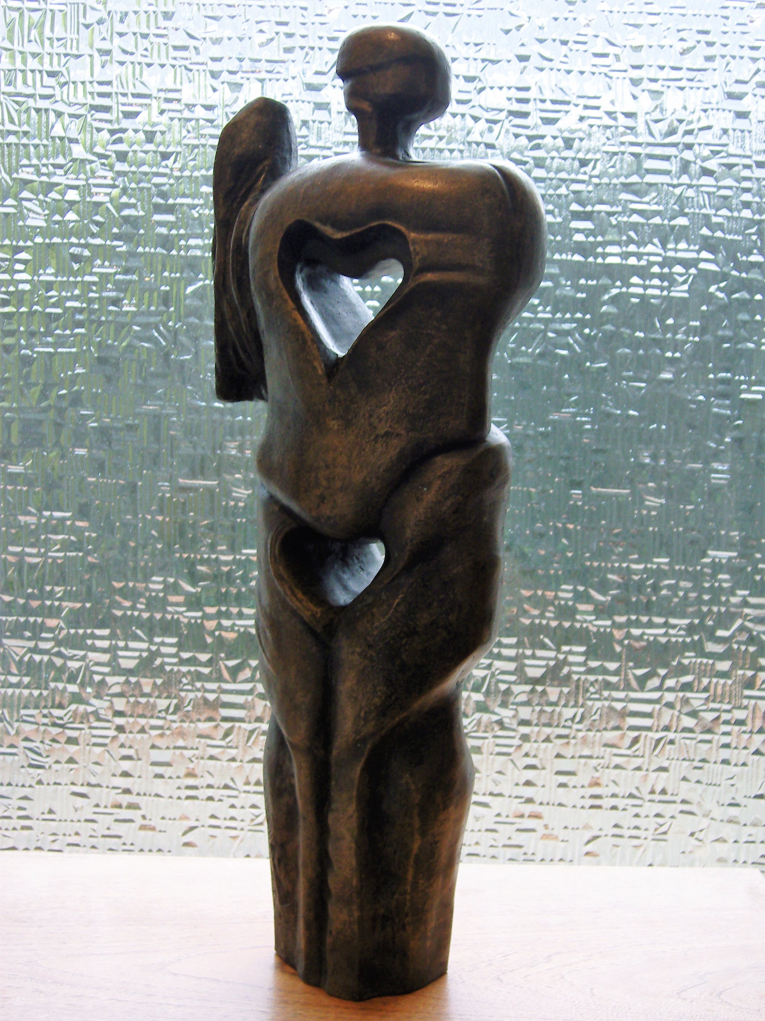 Zeer fraai geabstraheerd beeld, helaas weet ik niet meer wie de kunstenaar is. Volgens de overlevering zou het beeld “Amor” heten. TOPBEELD!! Gewicht 19,5 KG !! Hoogte 50 cm , breedte 18 cm, diep ca 8cm. Beeld met aanzienlijke waarde!