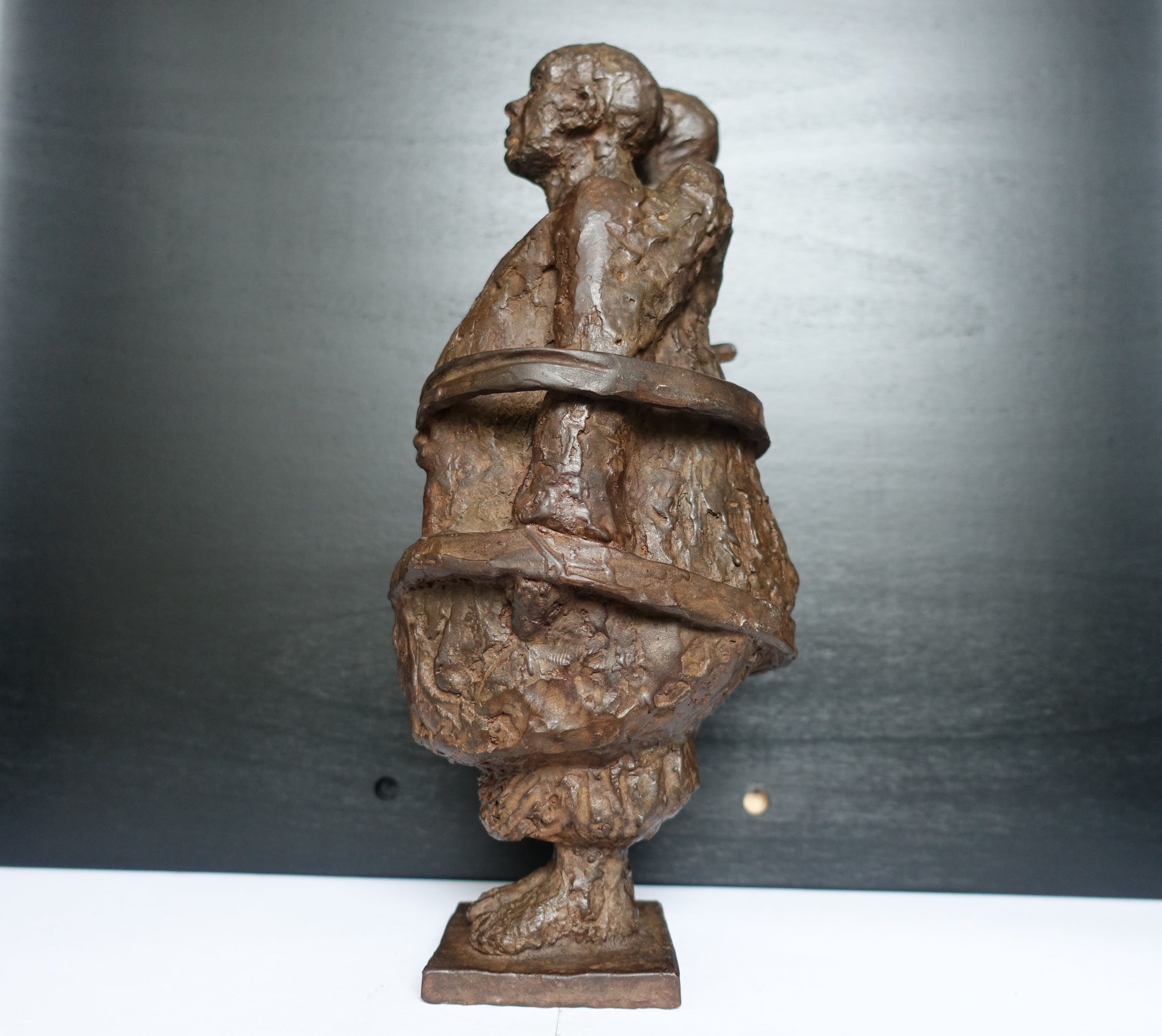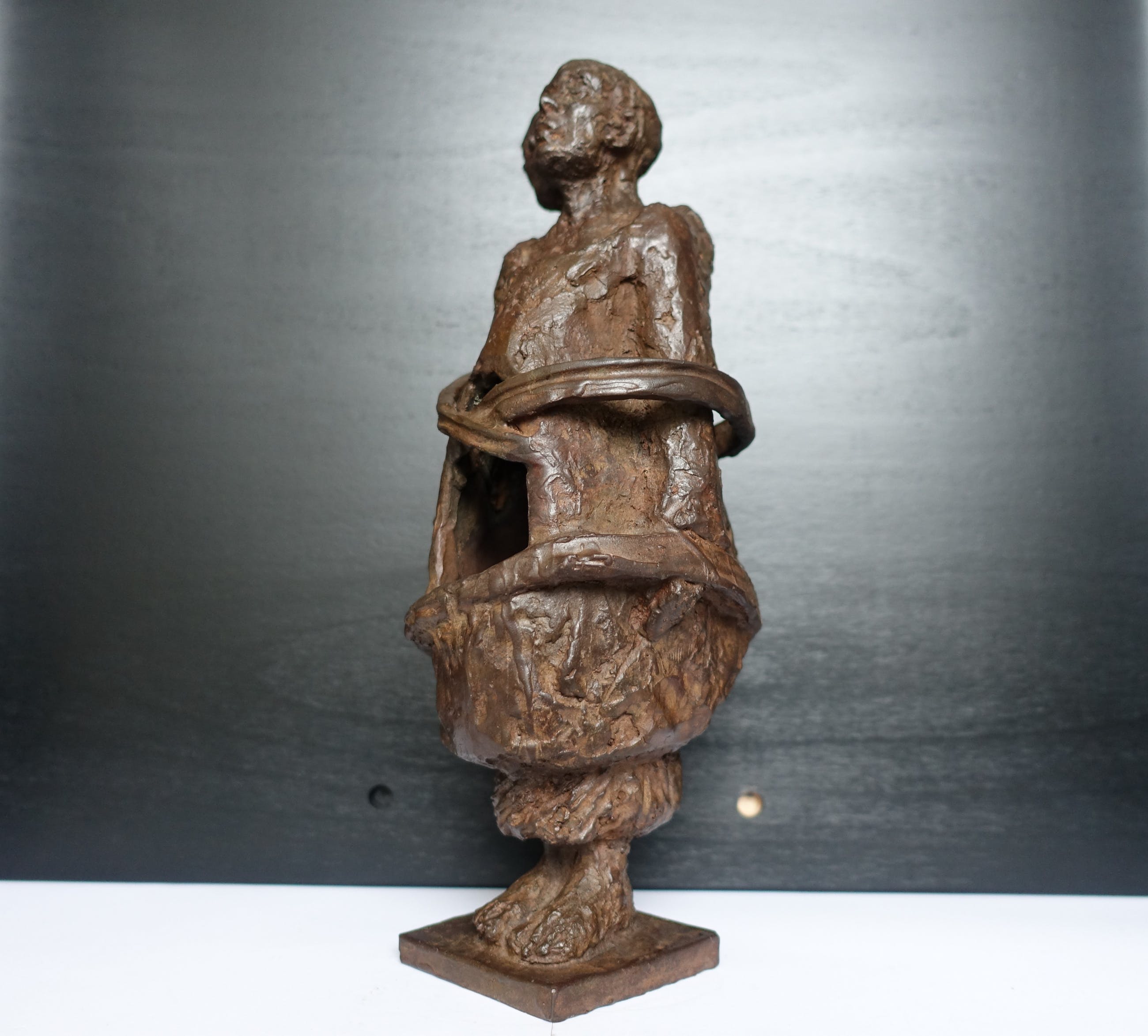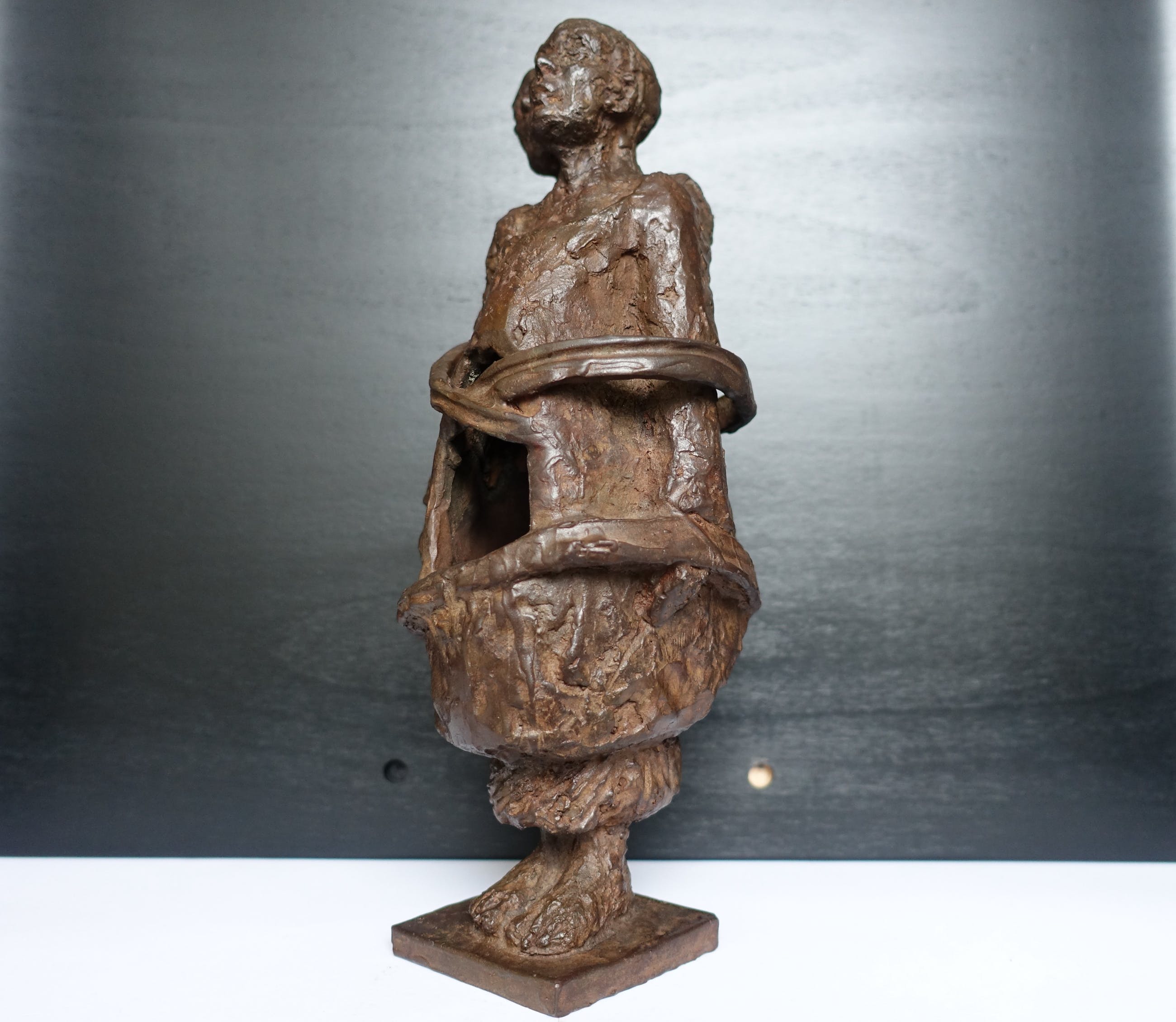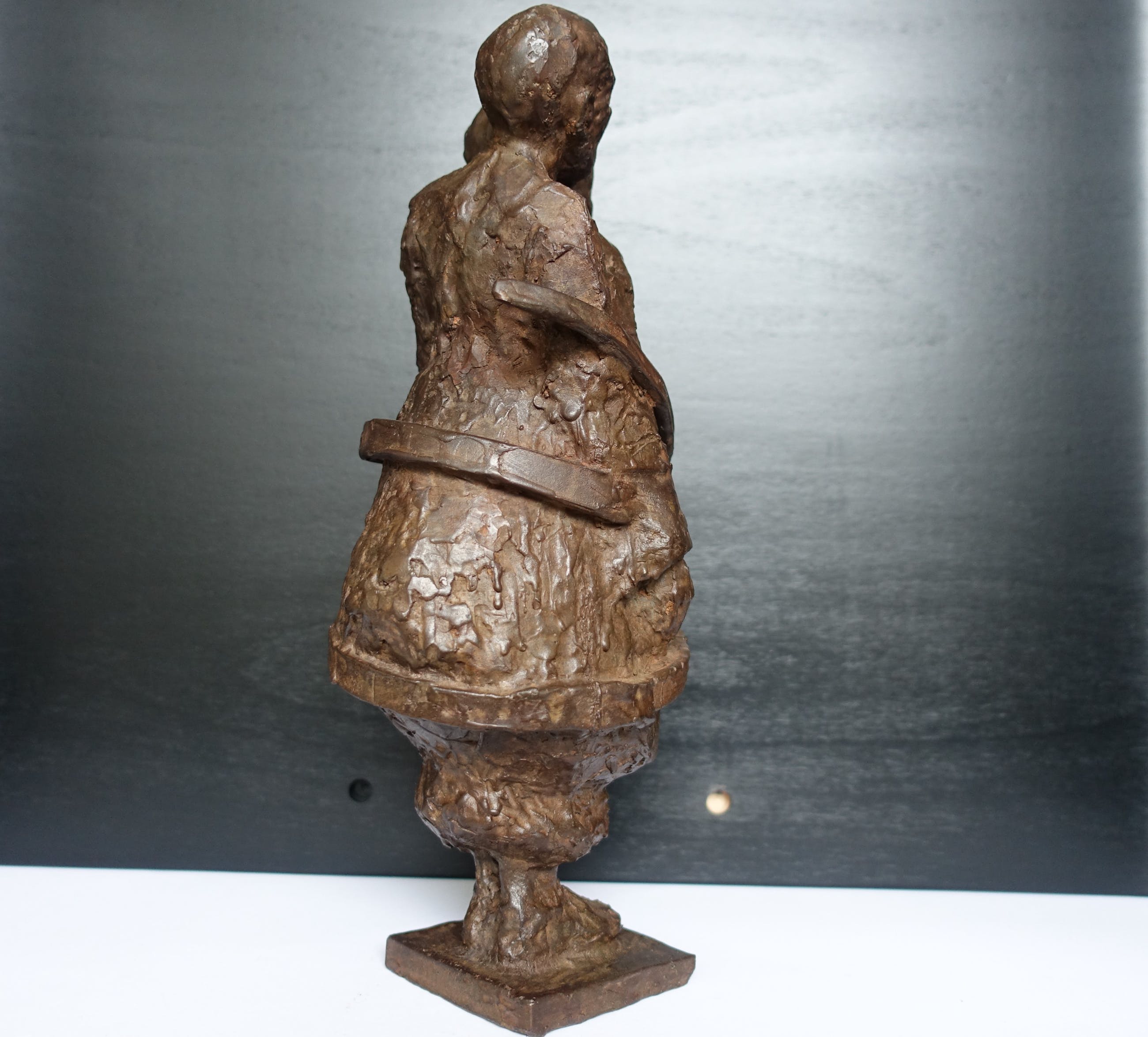 Een beeld wat hoop en verbondenheid uitstraalt in een tijd waarin afstand geboden is. Het is een zwaar beeld, 7 kg! Het beeld is gesigneerd M v P (??)