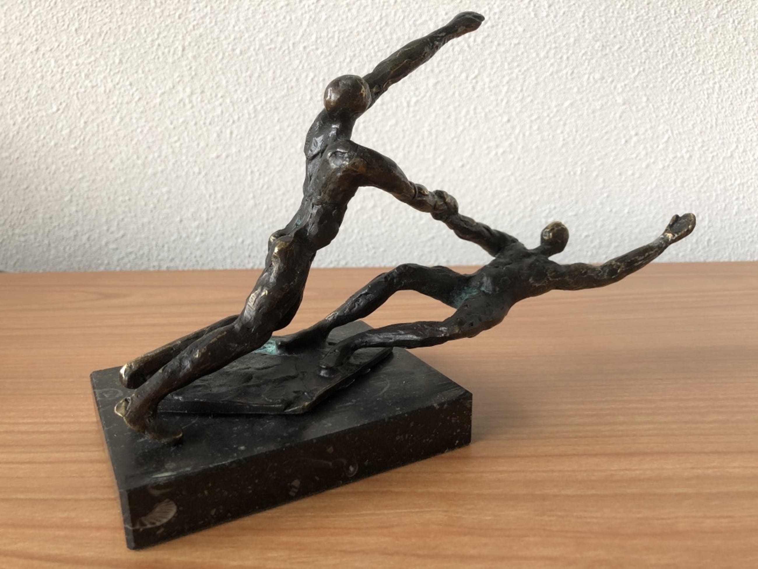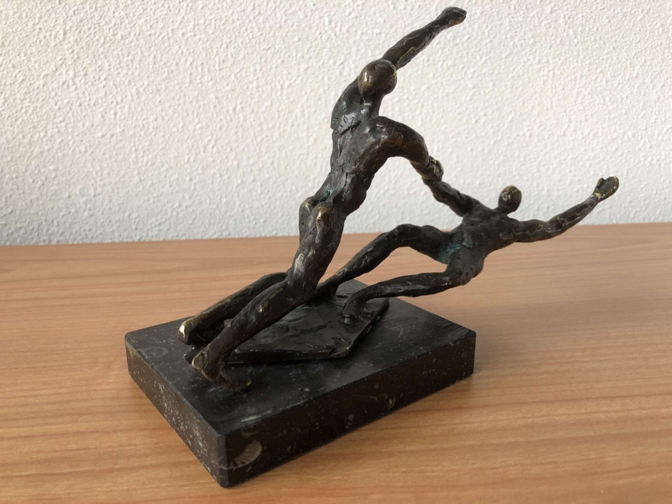 Is gesigneerd op de voet van het beeld, maar helaas weet ik niet wie de kunstenaar is.