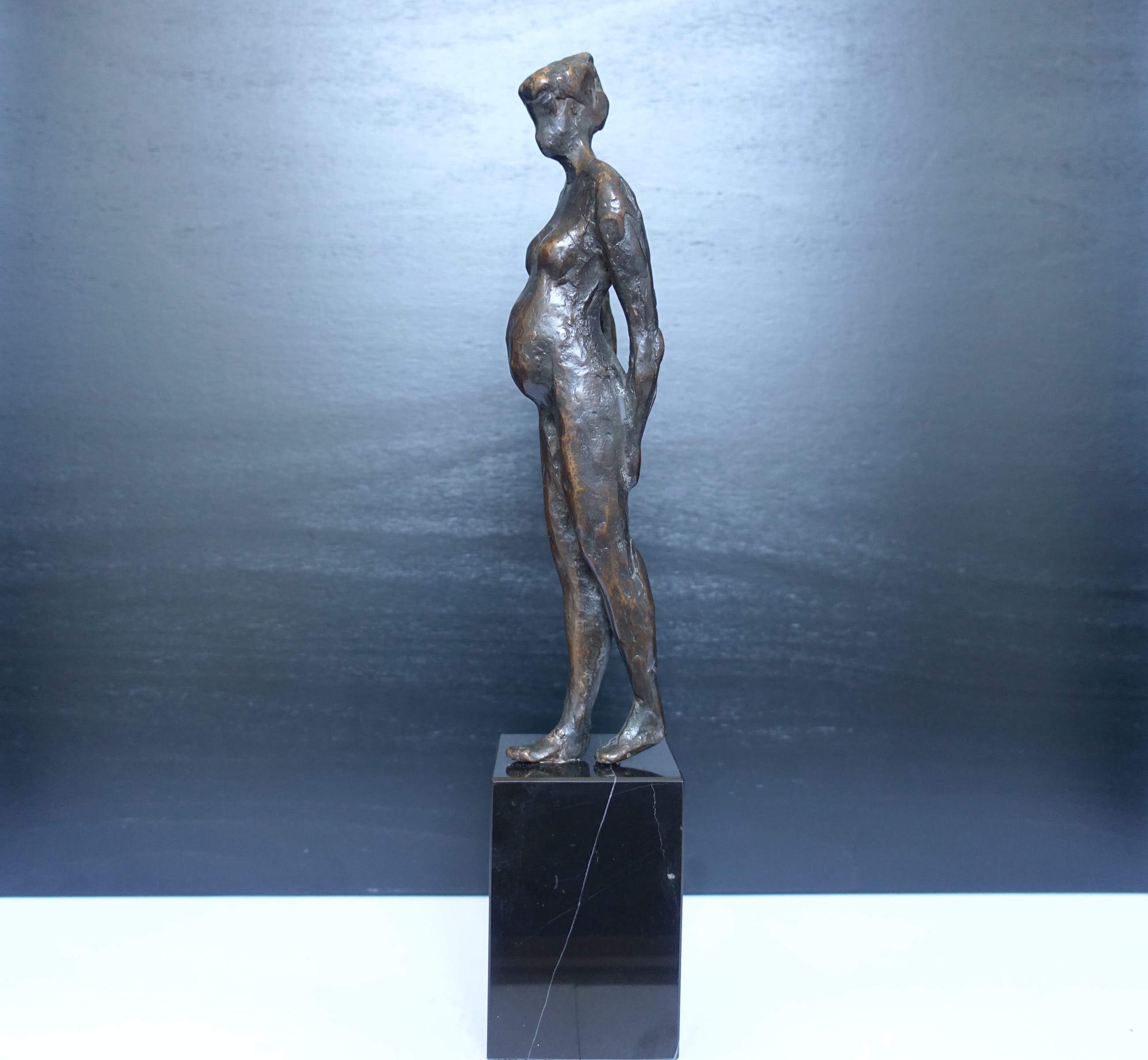 Zeer fraai beeldje van zwanger vrouw in mooie pose. De vermelde afmetingen zijn incl. de sokkel.