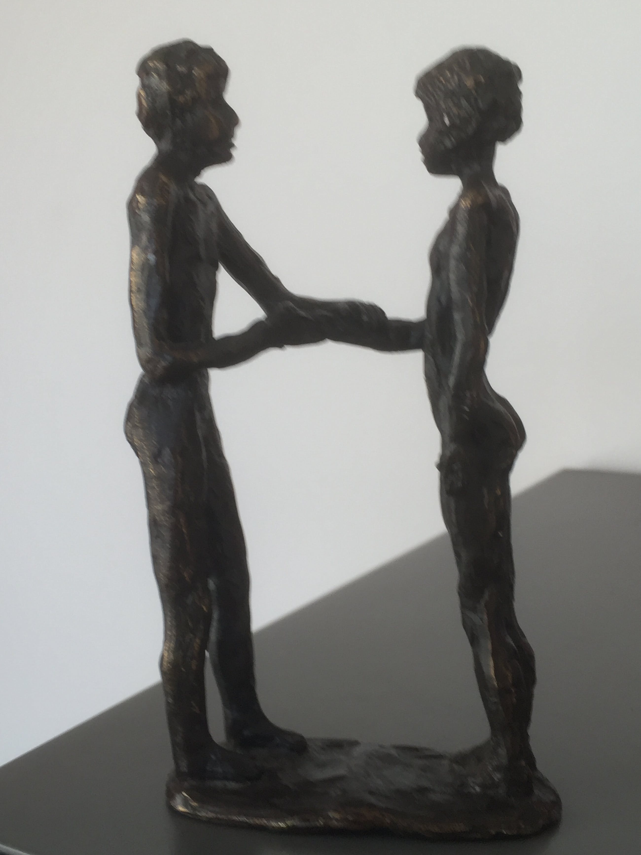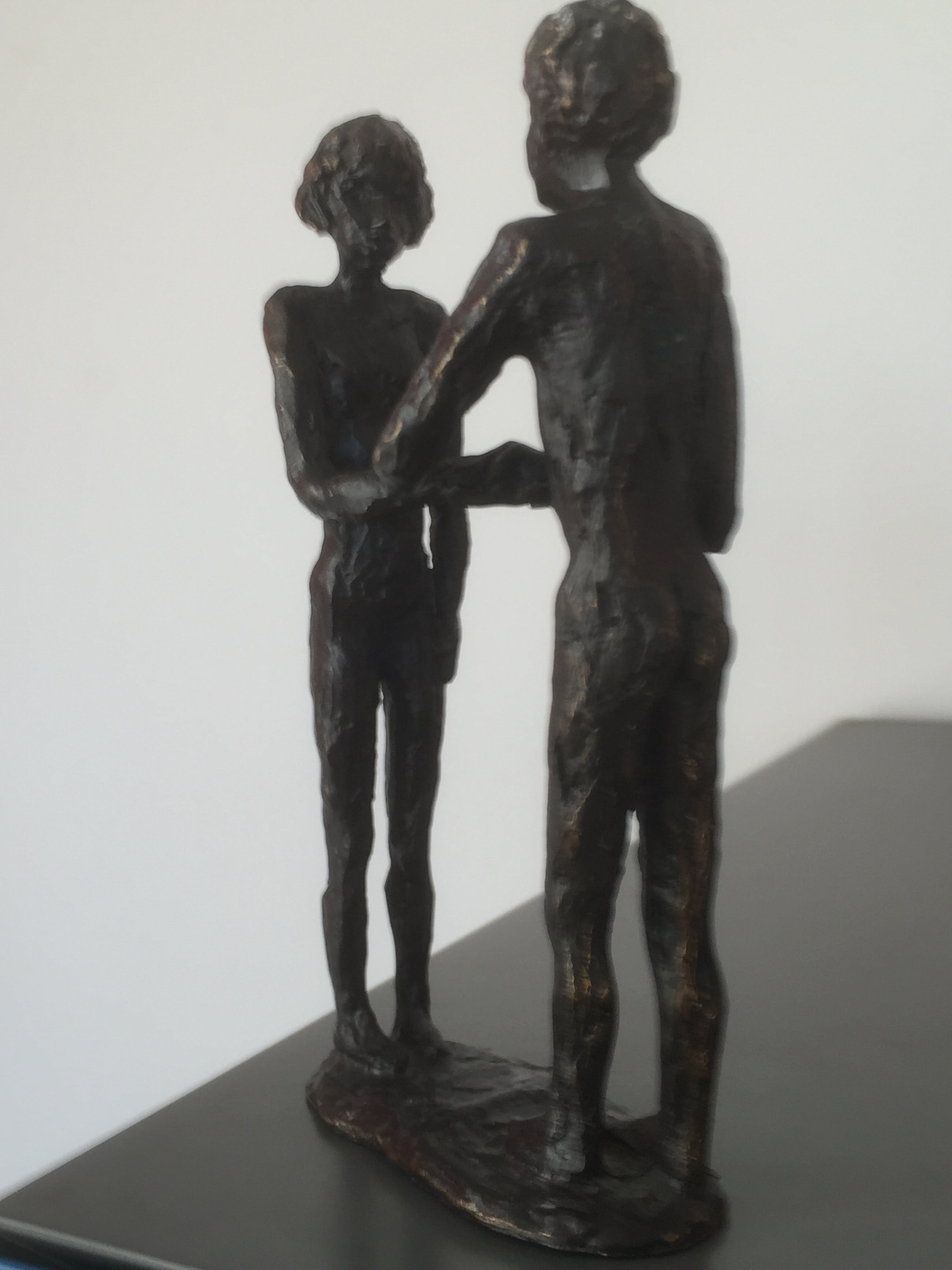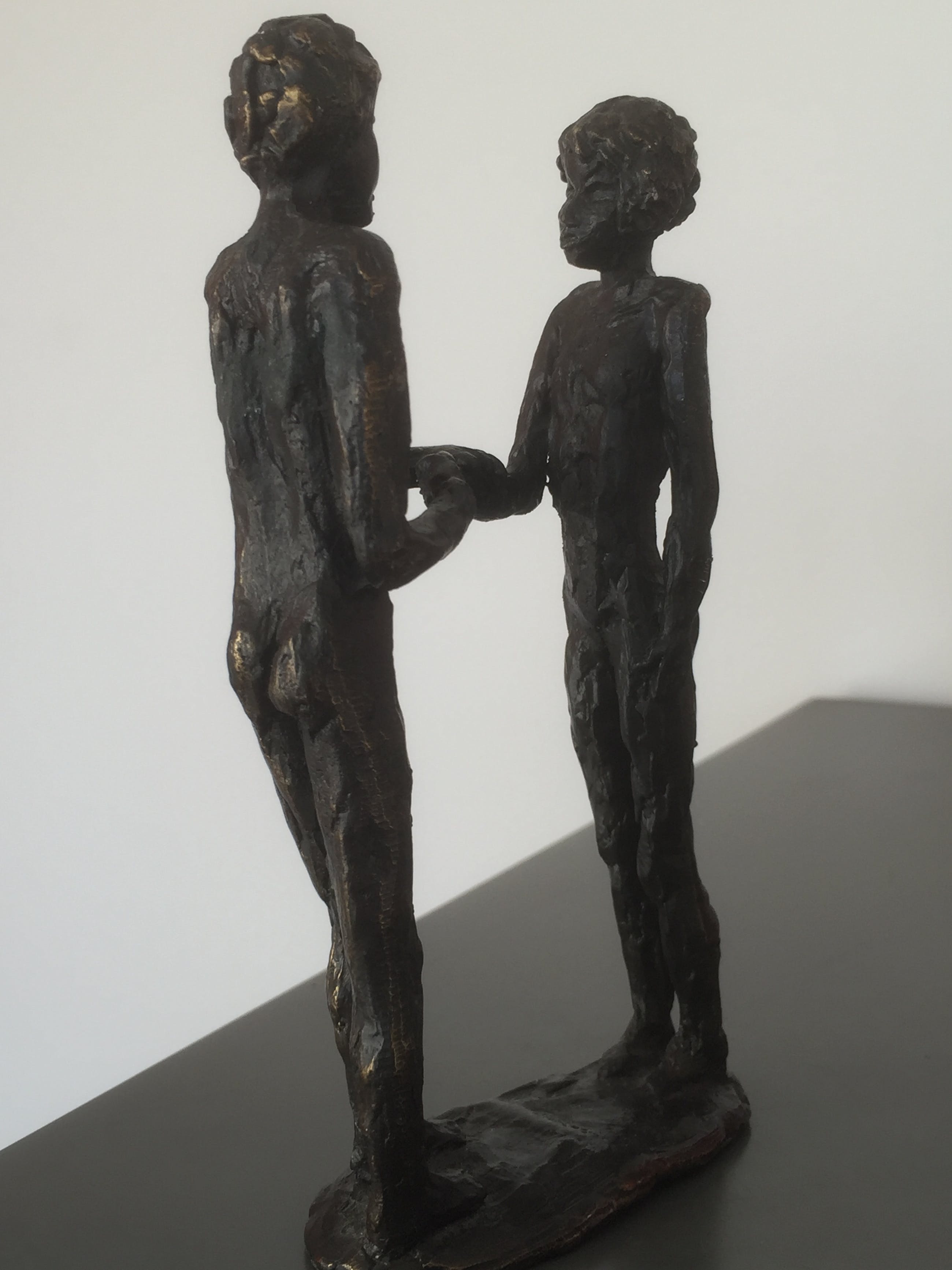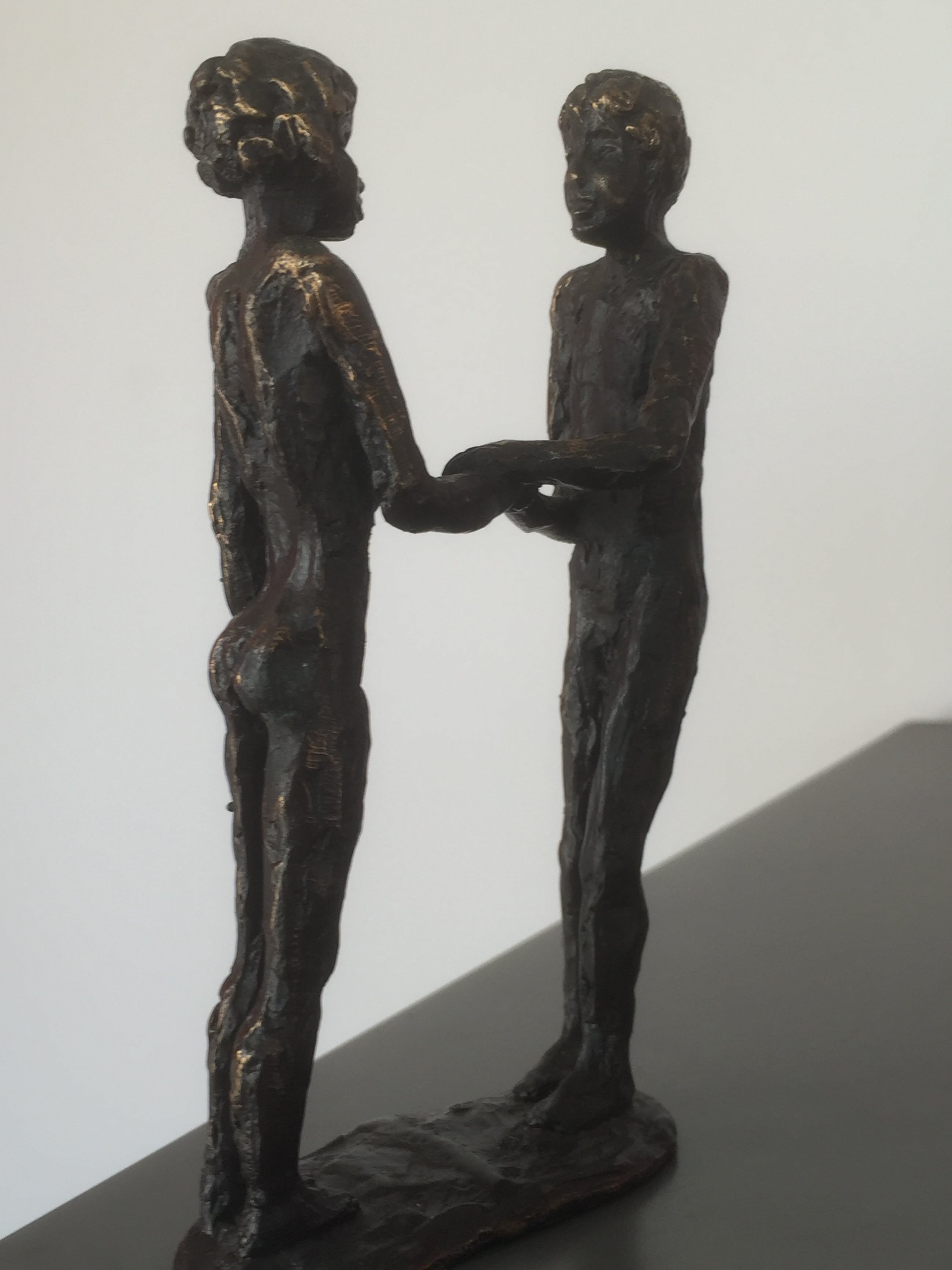 Pril, jong en onhandig, ik vind je aardig! Dat straalt dit massieve bronzen beeldje uit