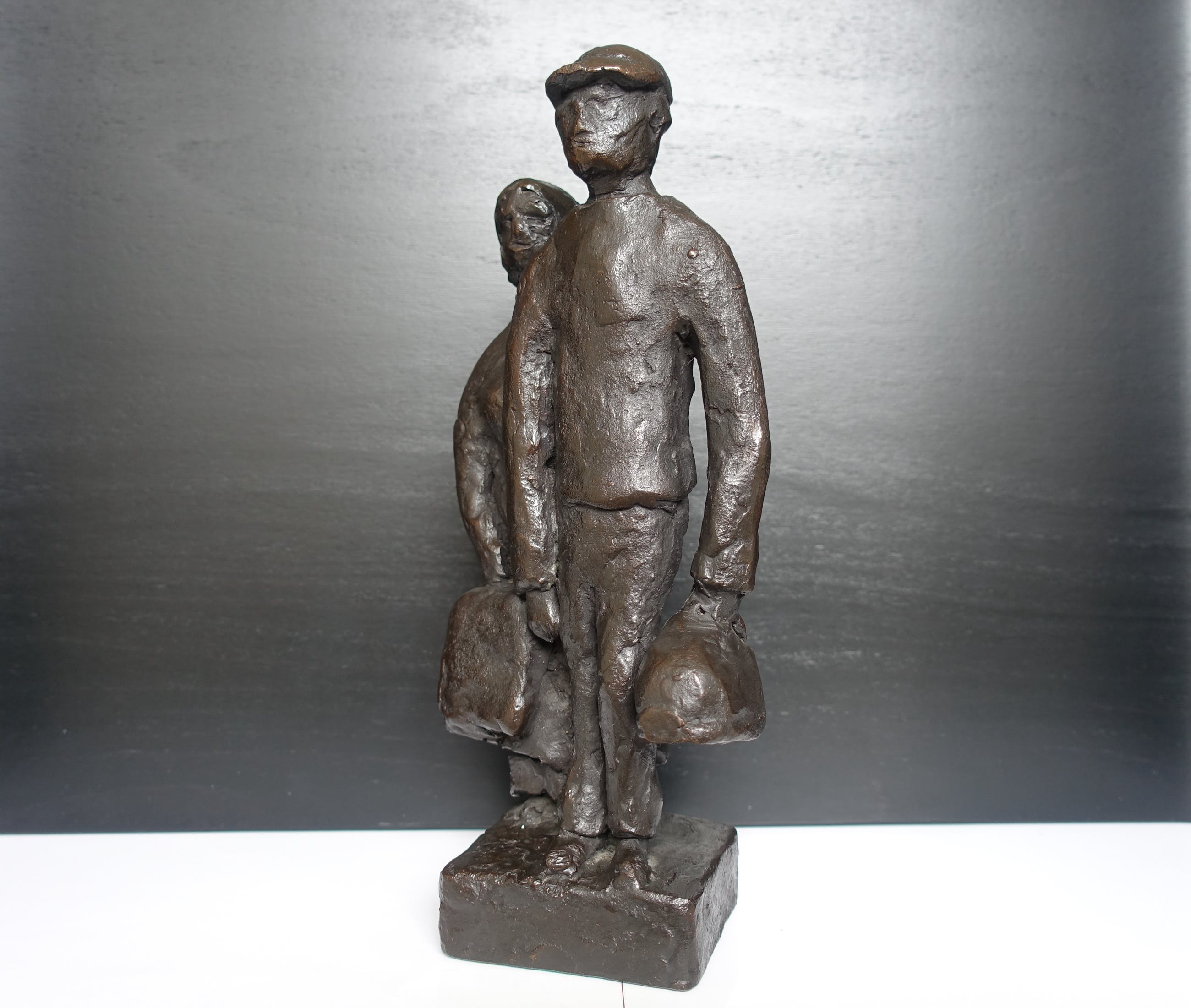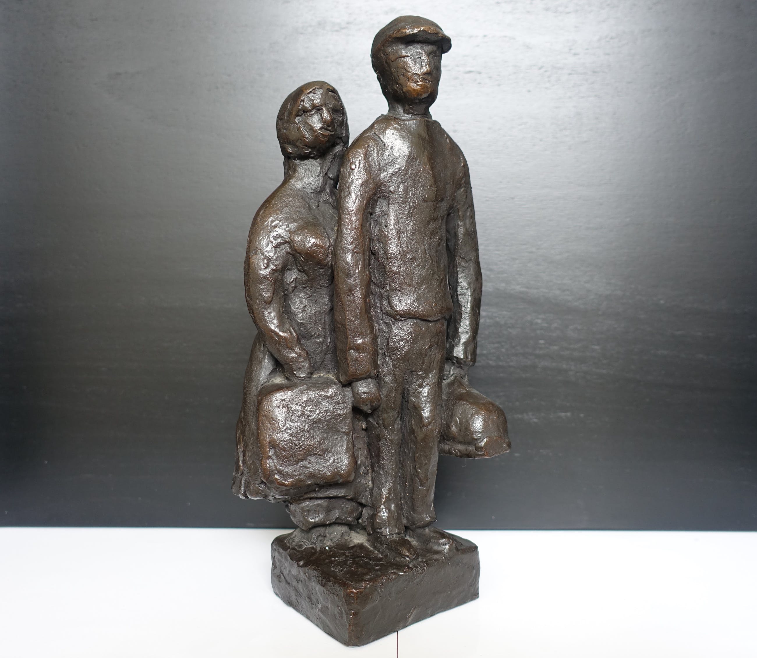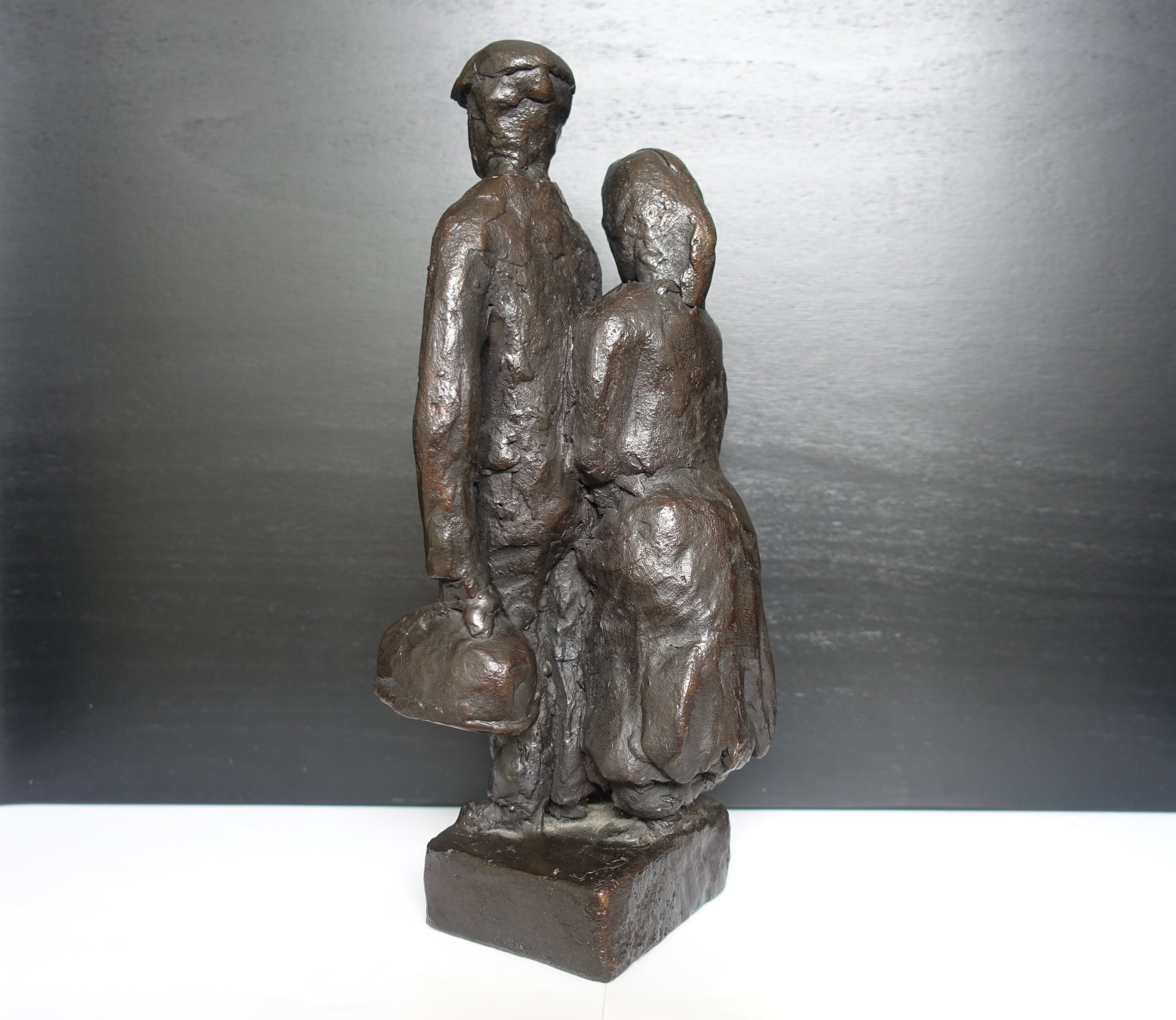 Leuk primitief beeld van ouder koppel wat op stap gaat . Een beeldje wat eenvoud en liefde uitstraalt. Massief brons van 7 kg!!