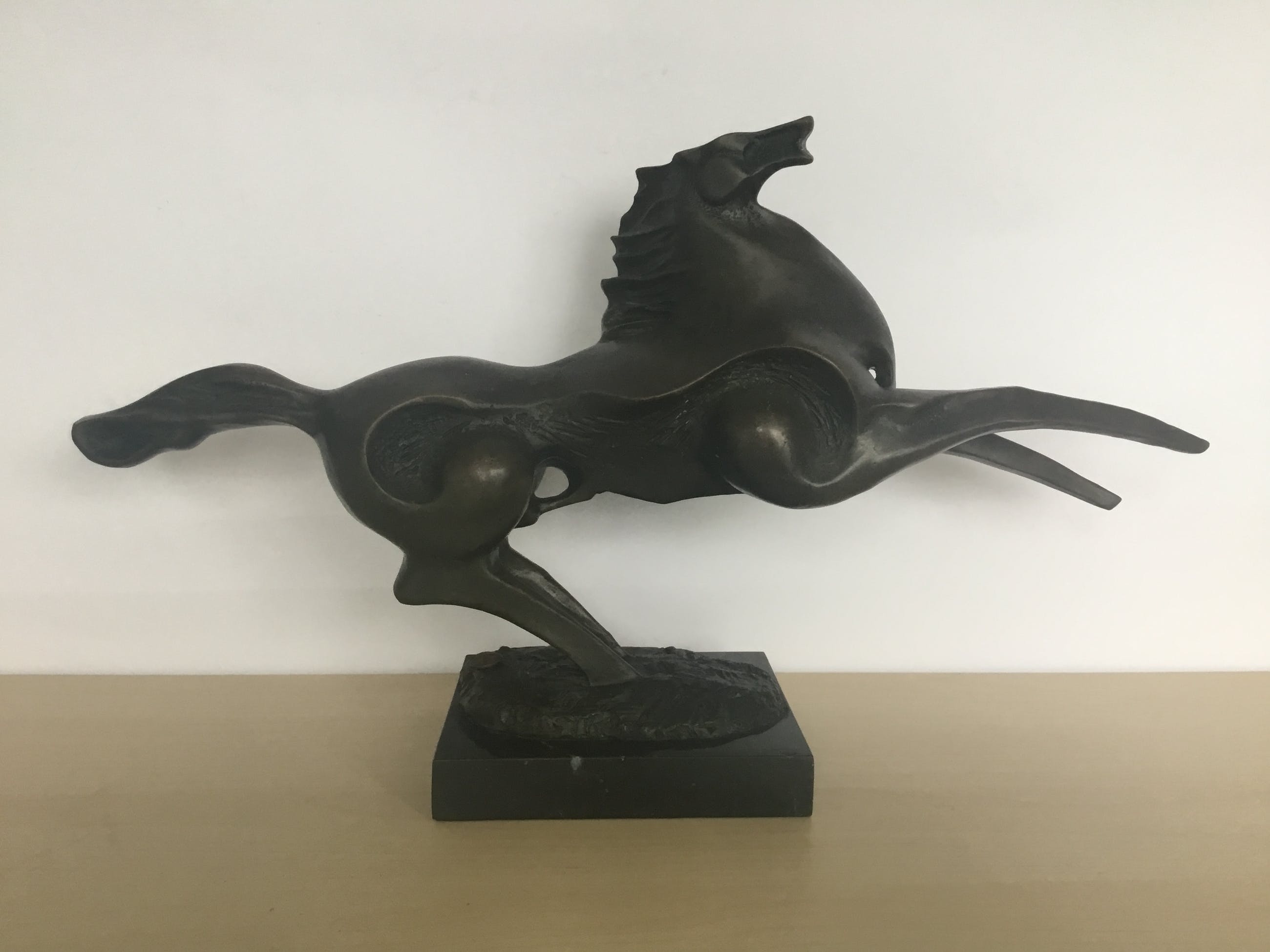 Mooi groot gestileerd beeld van een paard, voorzien van stempel.