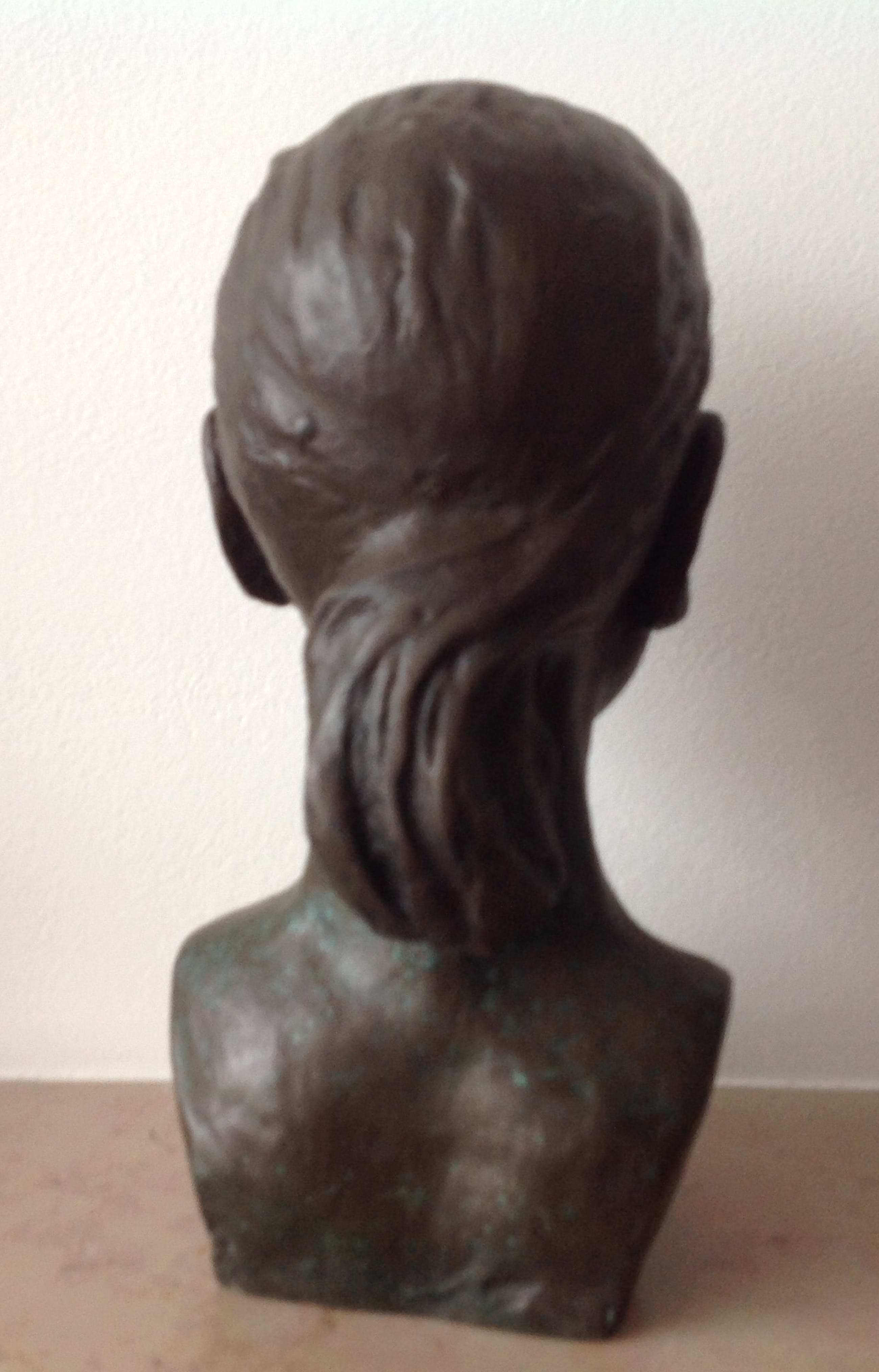 Intrigerend portret van een jonge vrouw. Misterieuze uitstraling. Getekend A. Westrik. Zware kwaliteit brons.