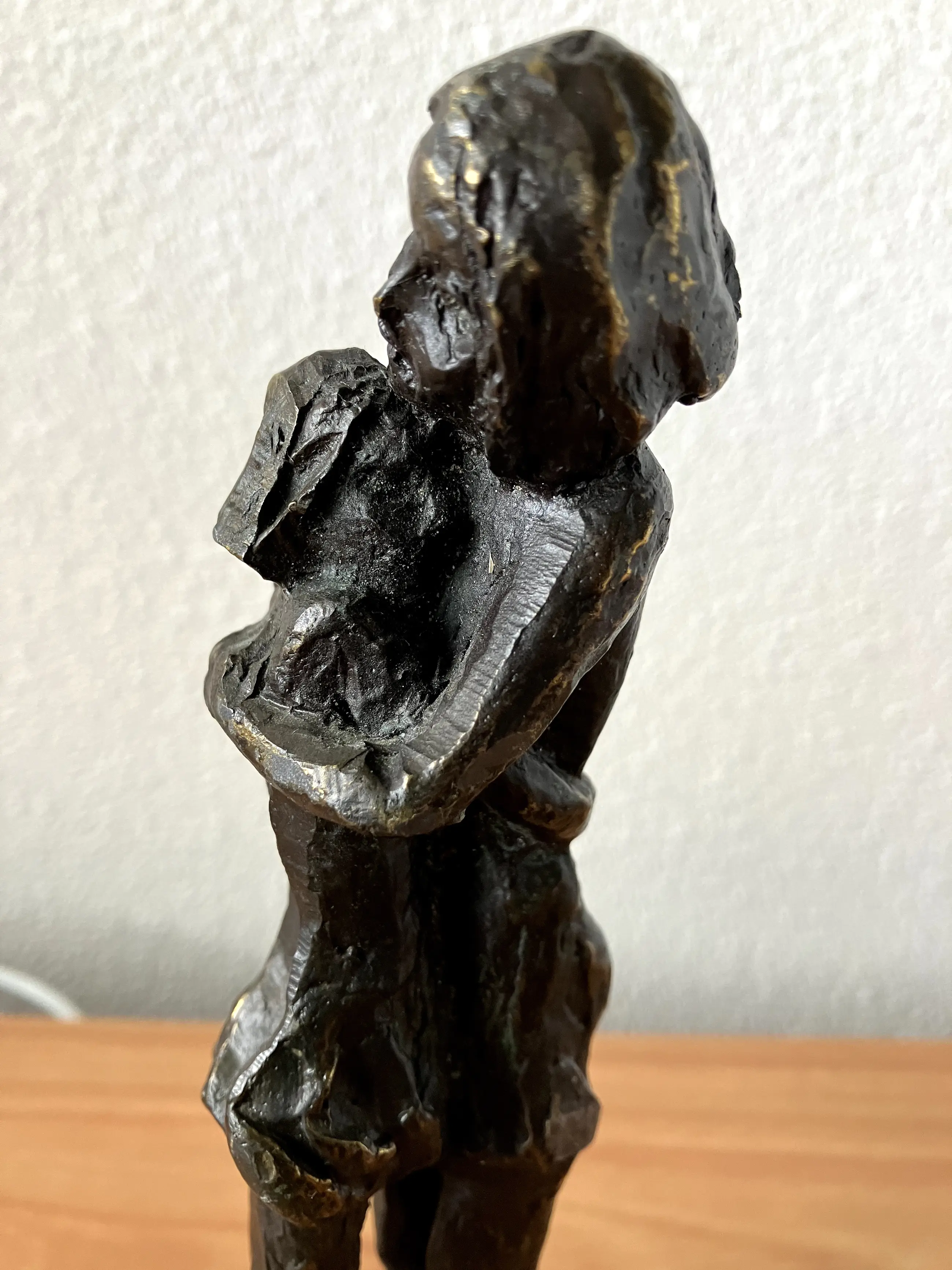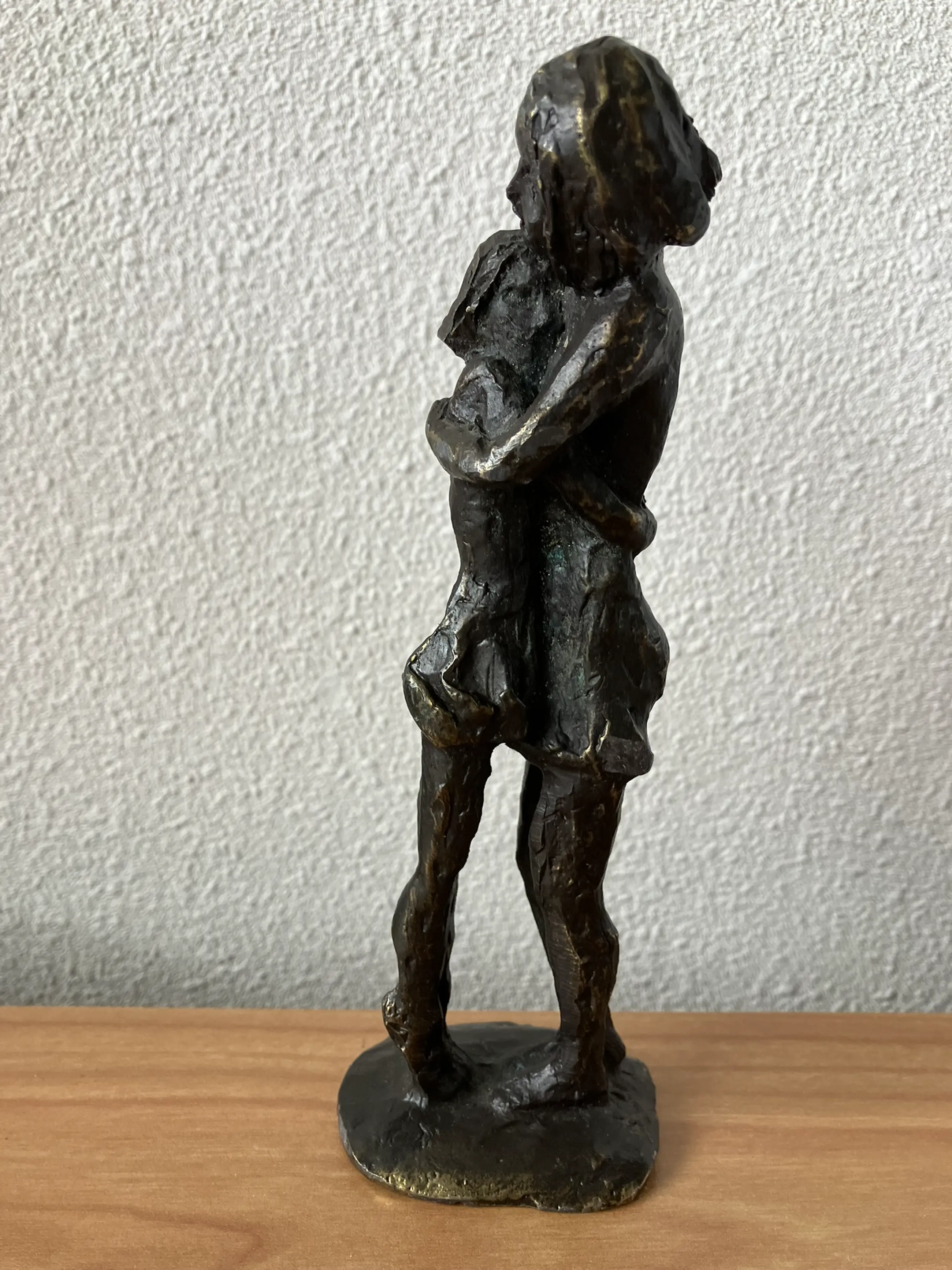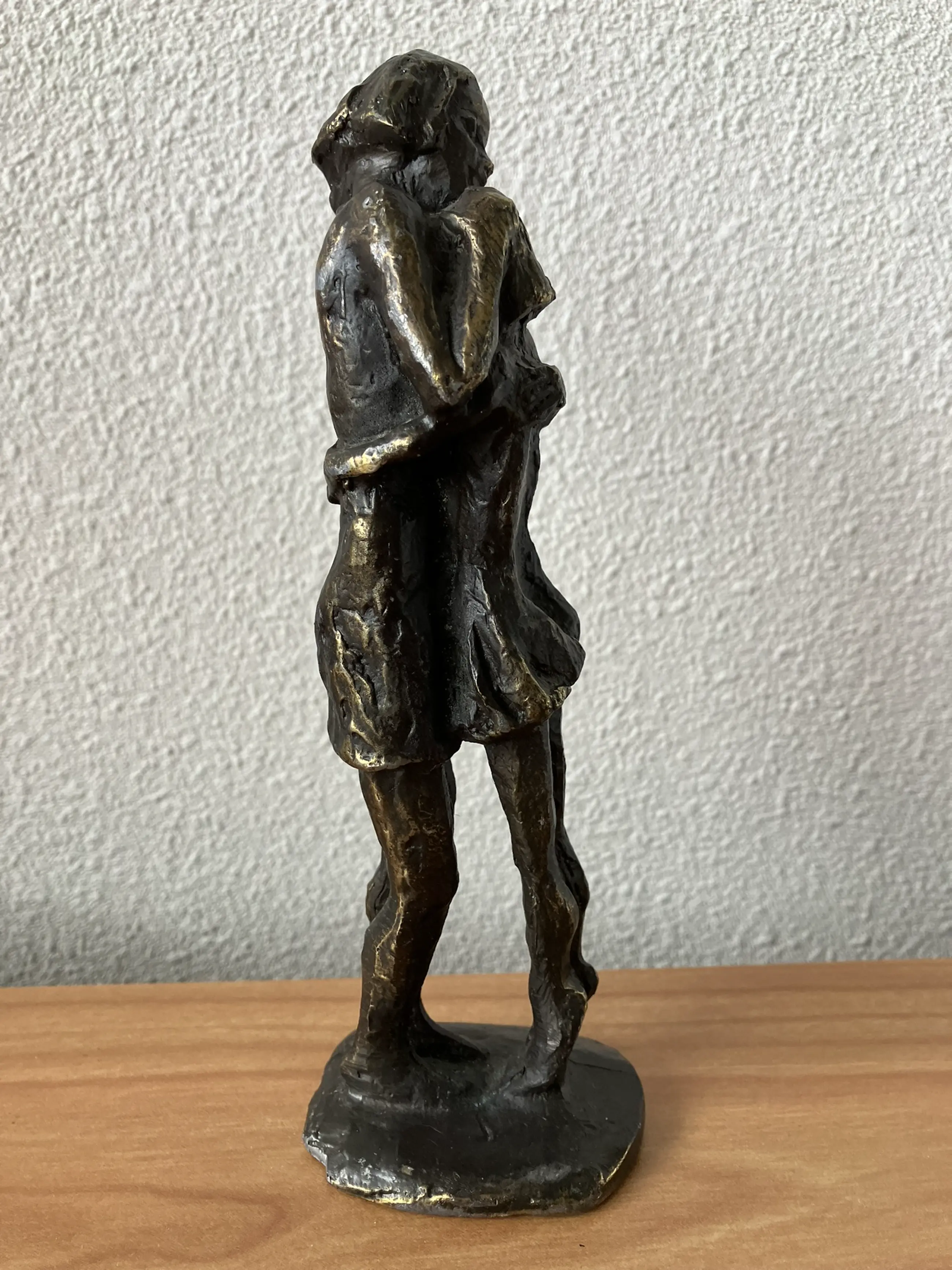 Het betreft een zeer mooi beeld van een moeder en dochter die elkaar omhelzen.