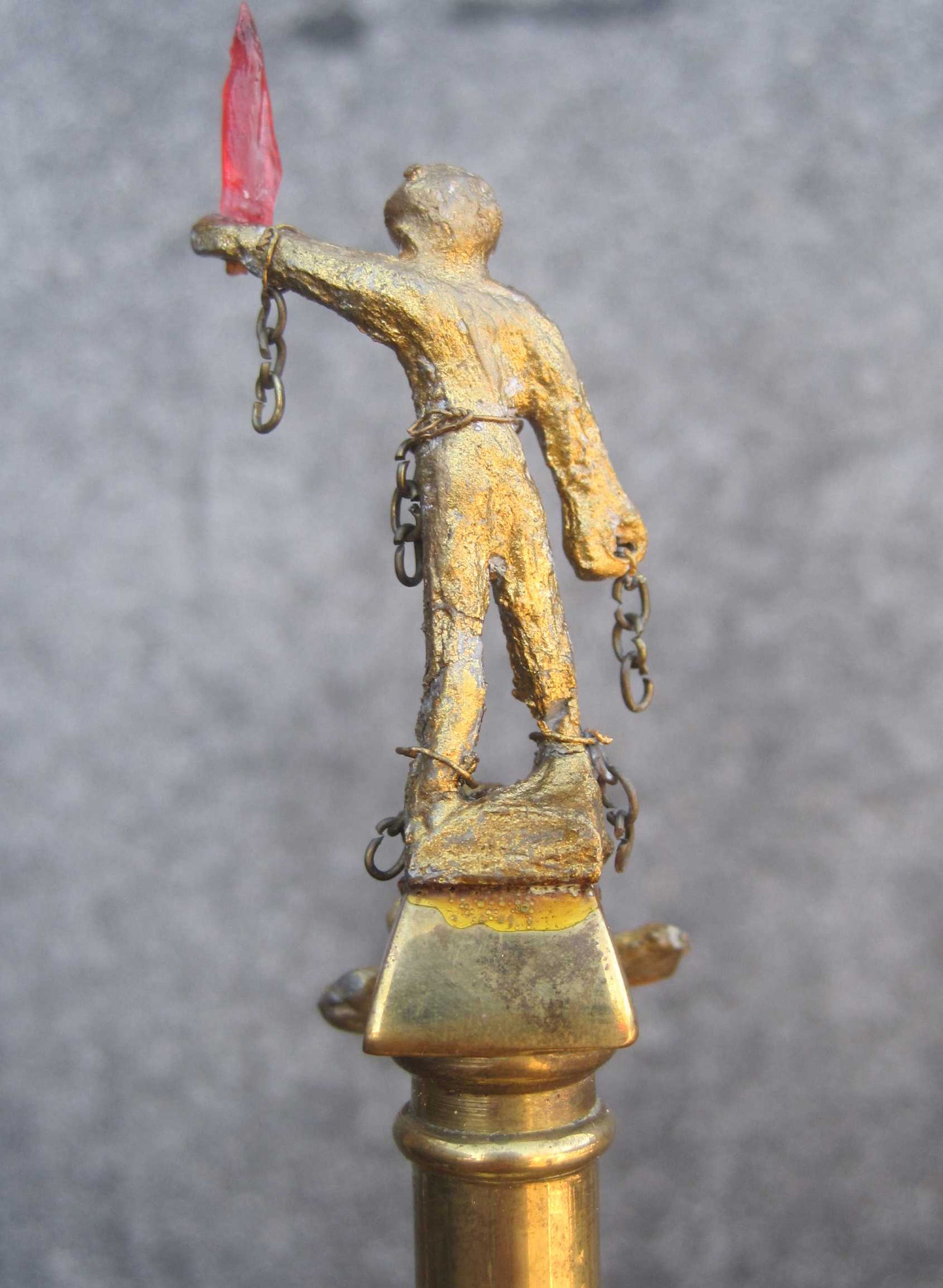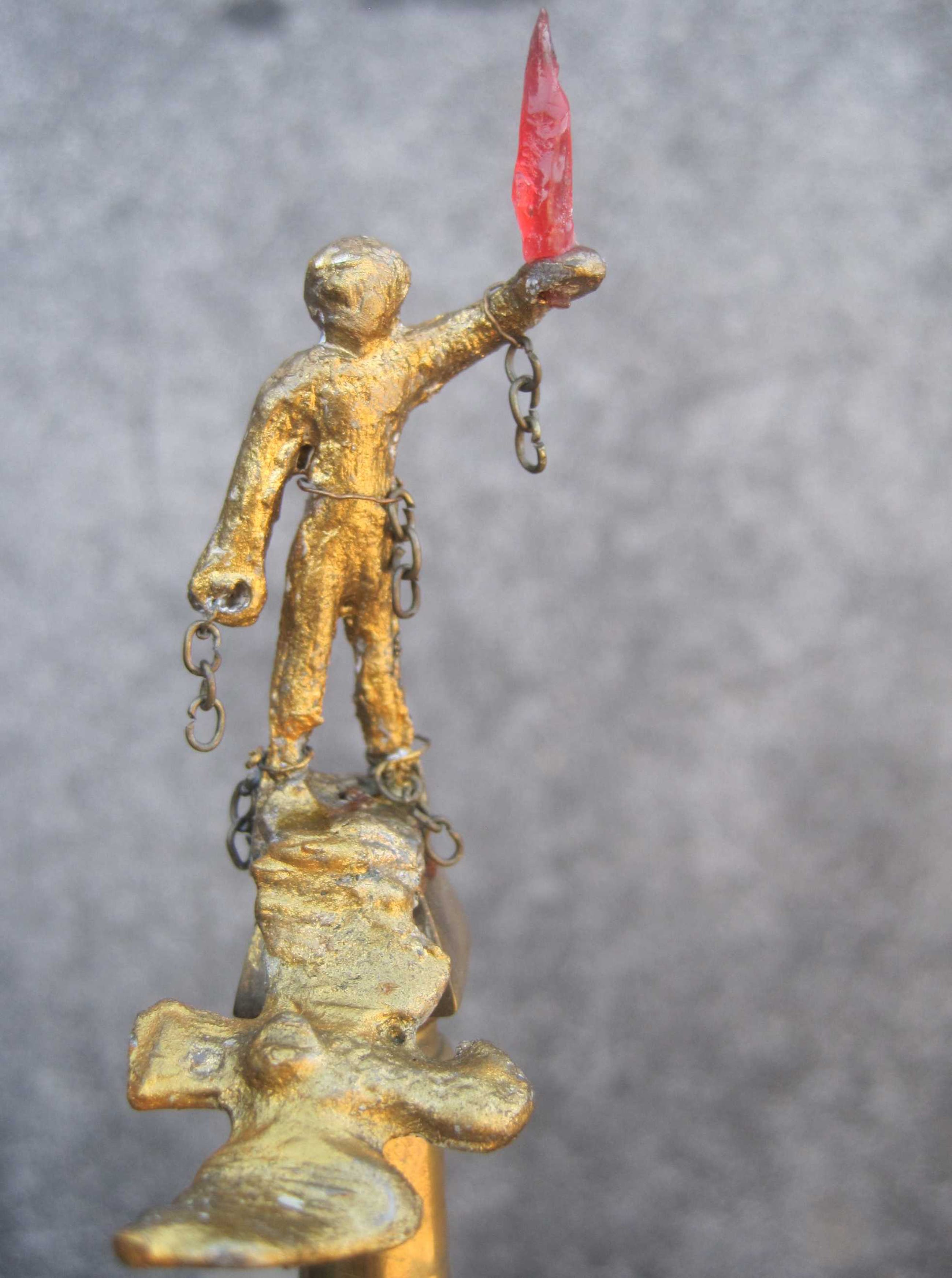 Dit is een bijzonder beeld uit de voormalige Sovjet Unie. Het stelt het monument voor ter gelegenheid van de 5e verjaardag van de Oktober Revolutie van 1917. Het monument staat in de stad Dniprodzerzhynsk in het huidige Ukraïne. Sinds 2016 heet de stad Kamianske. Prometheus is een god uit de Griekse Mythologie. Omdat de mens weinig of geen gaven en vaardigheden had gekregen, kreeg Prometheus medelijden en gaf hij de mens het vuur. De andere goden namen Prometheus dat zeer kwalijk en ketenden hem aan een rots. Elke nacht, tot in de eeuwigheid kwam er een roofvogel Ethon, die zijn lever op at. daarna groeide de lever weer aan en de volgende nacht kwam de roofvogel weer terug voor zijn maal. Gelukkig voor Prometheus werd hij bevrijd door Herakles.