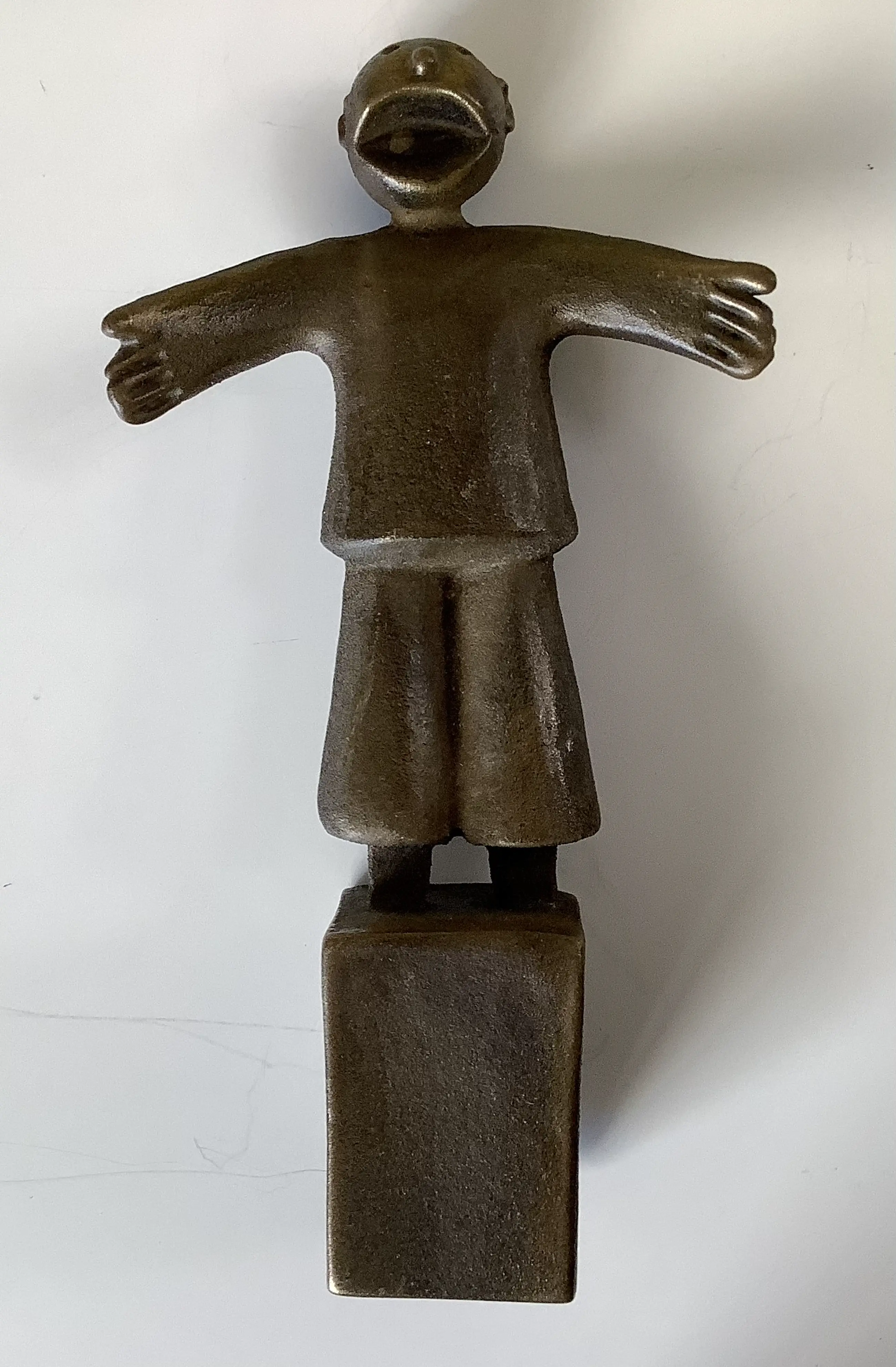 Massief brons, op voetstuk rechts monogram, (mij onbekend).