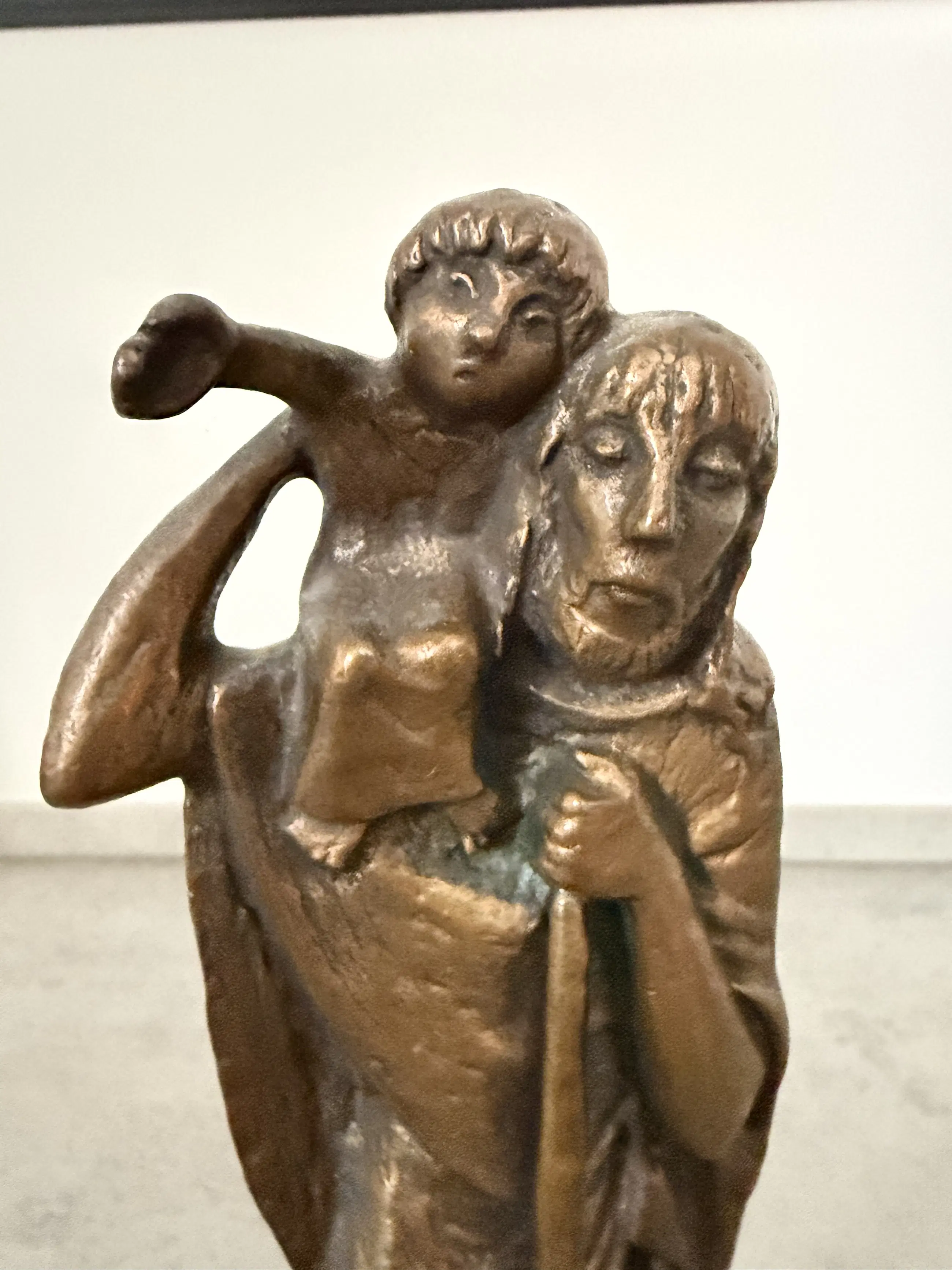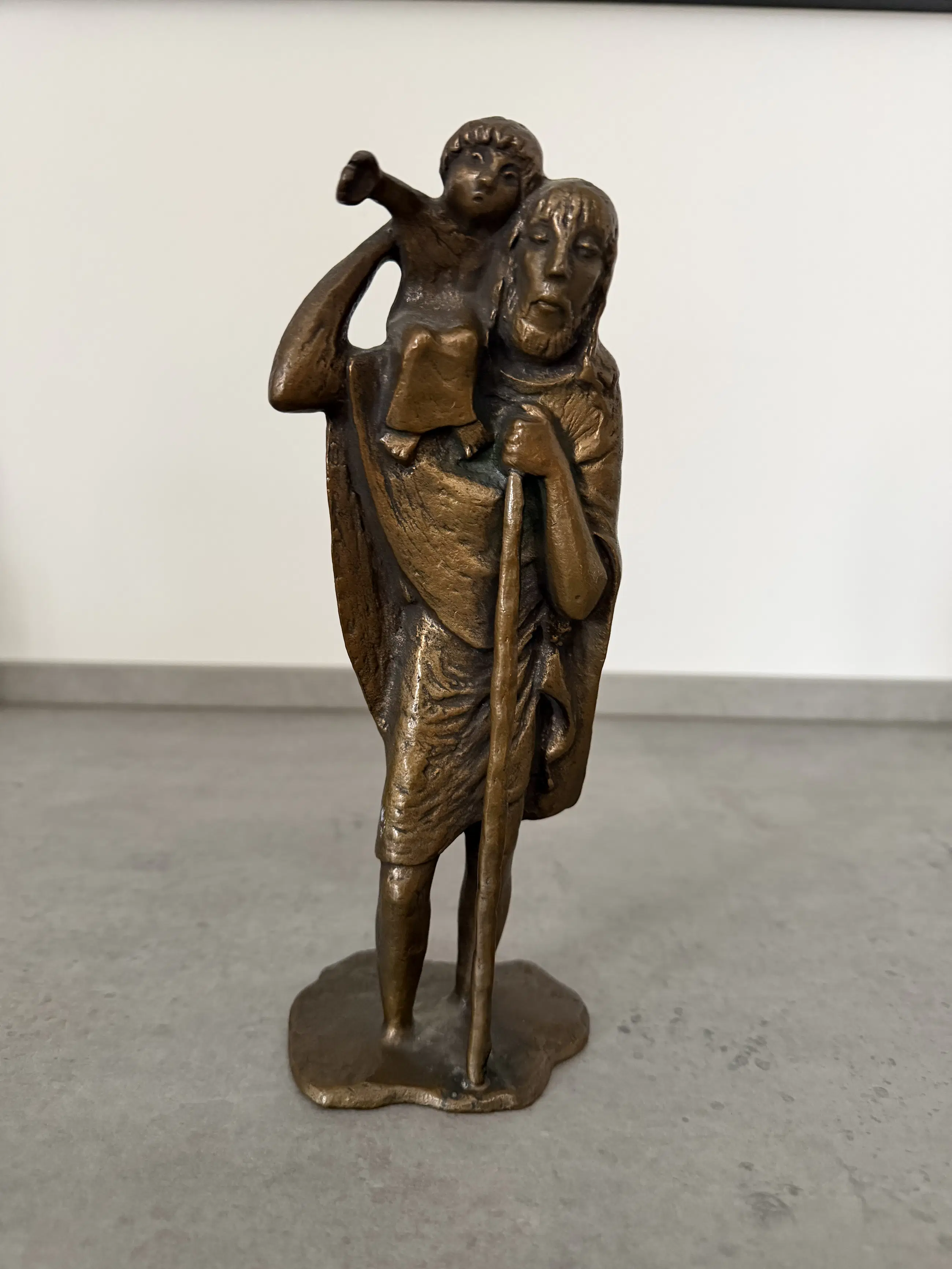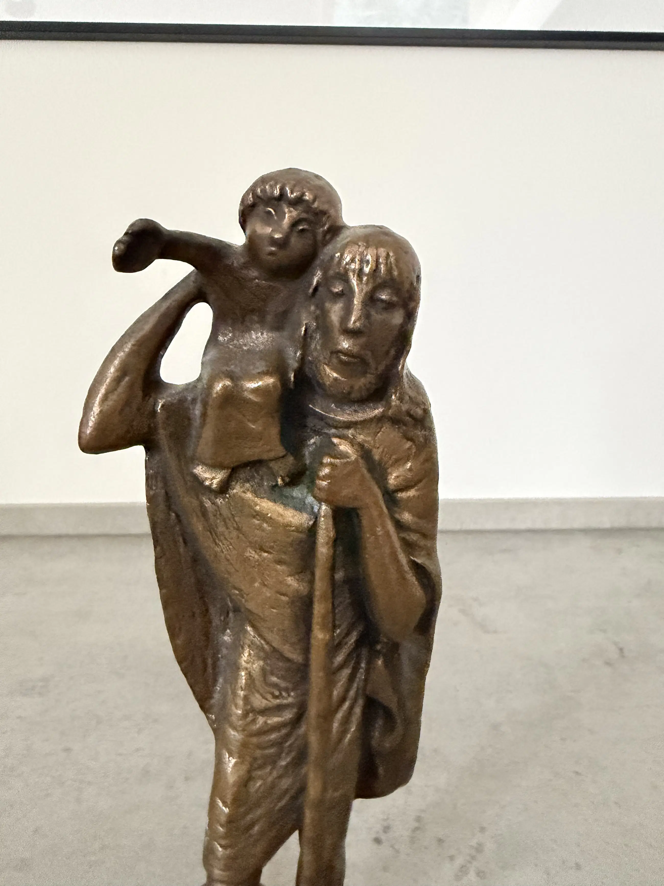 Fraaie sculptuur van Christoffel met kind Massief brons Krachtig beeld met symbolische waarde