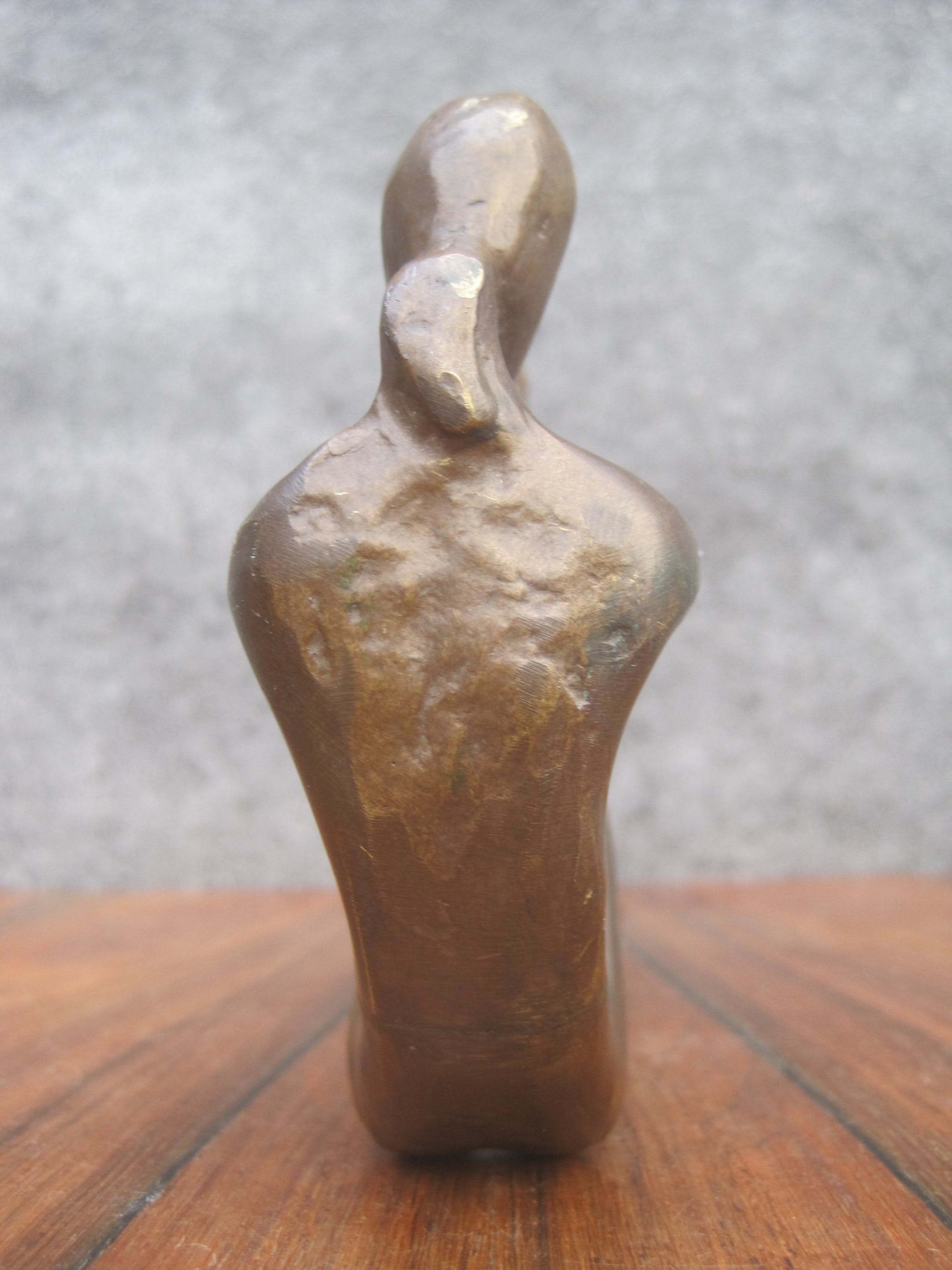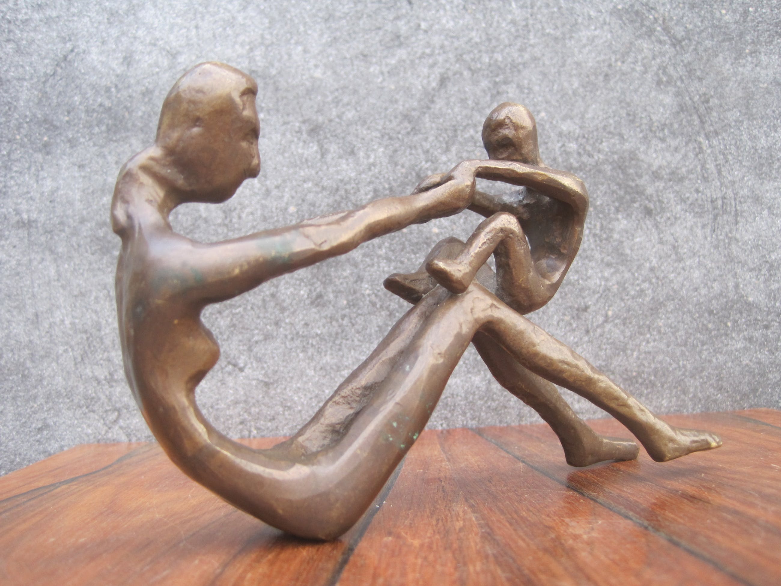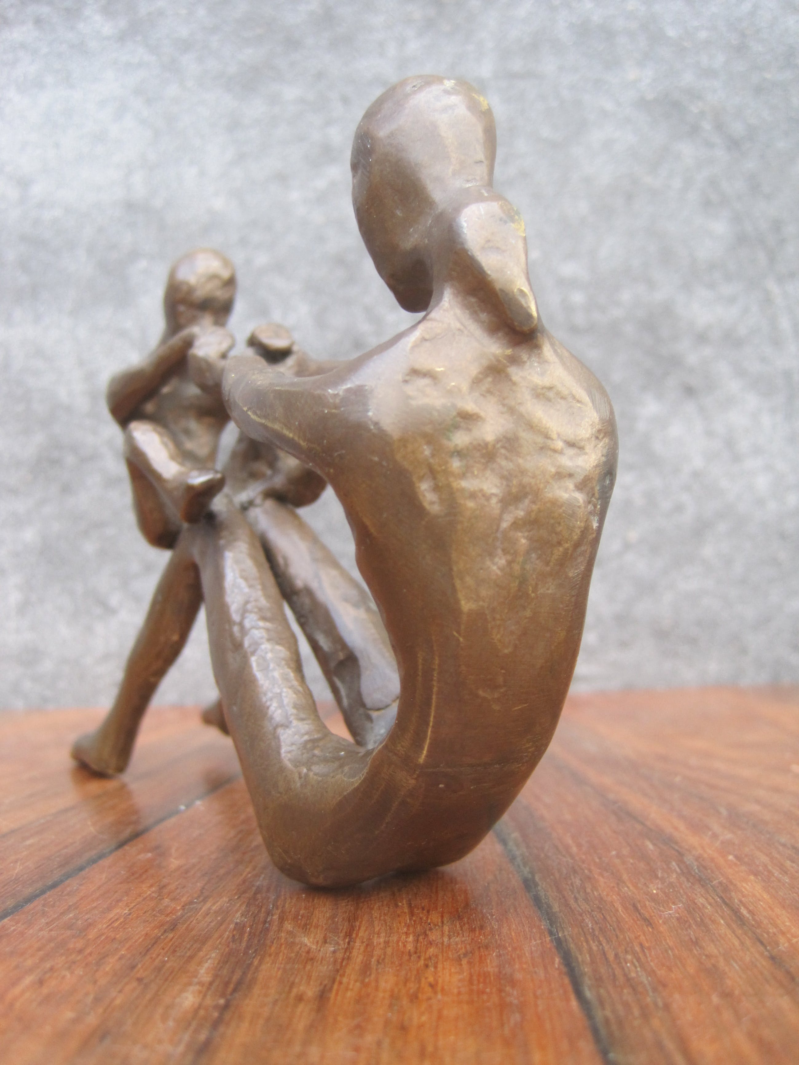 Een vertederend beeldje van een moeder met haar kind. Een zwaar massief bronzen beeldje. Het beeldje is niet gesigneerd.
