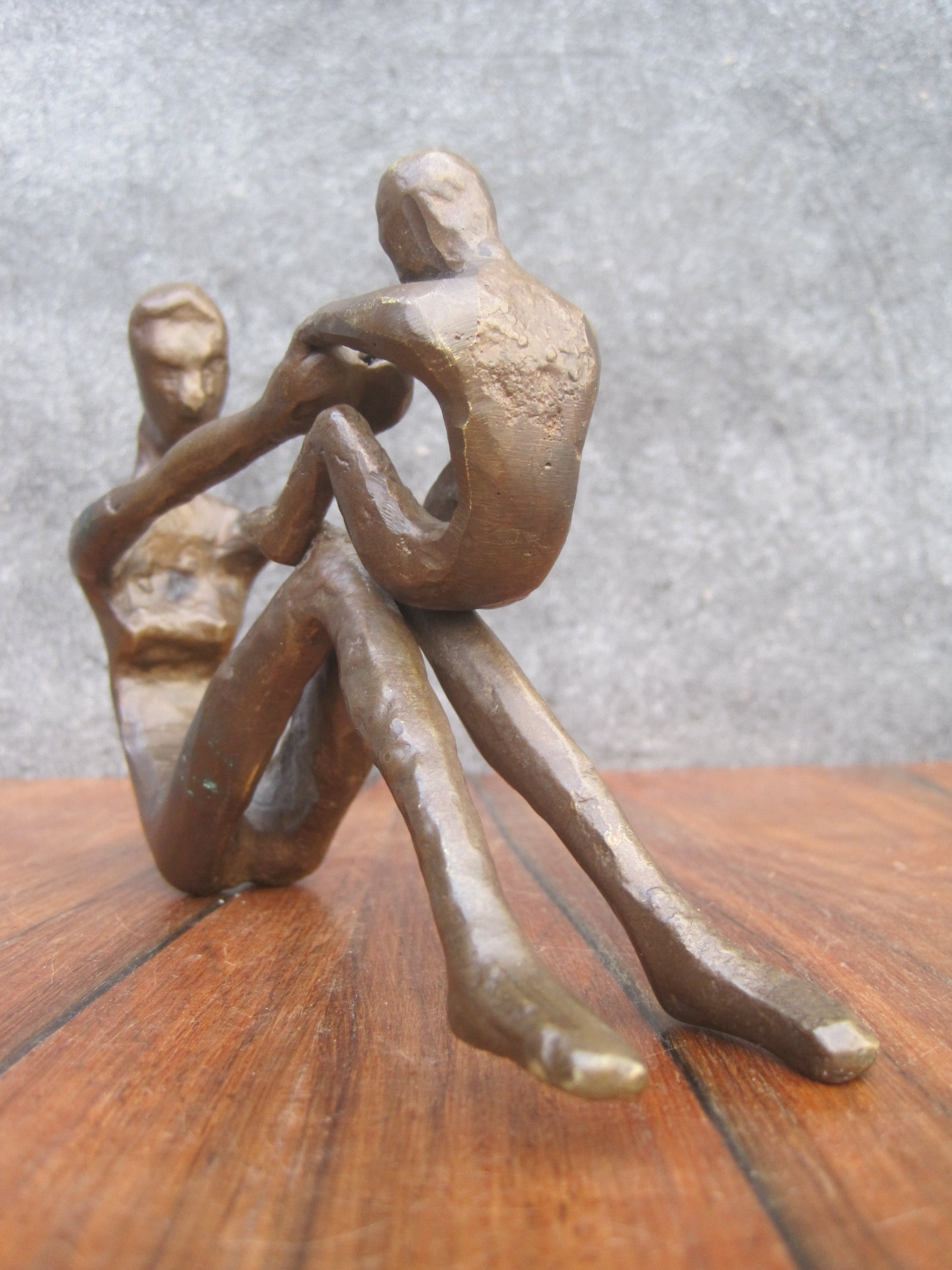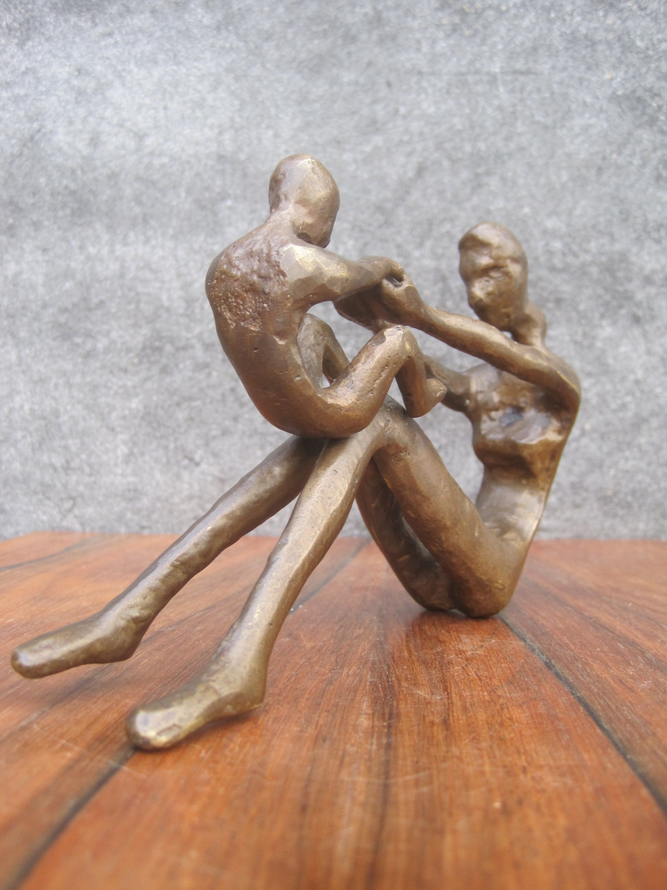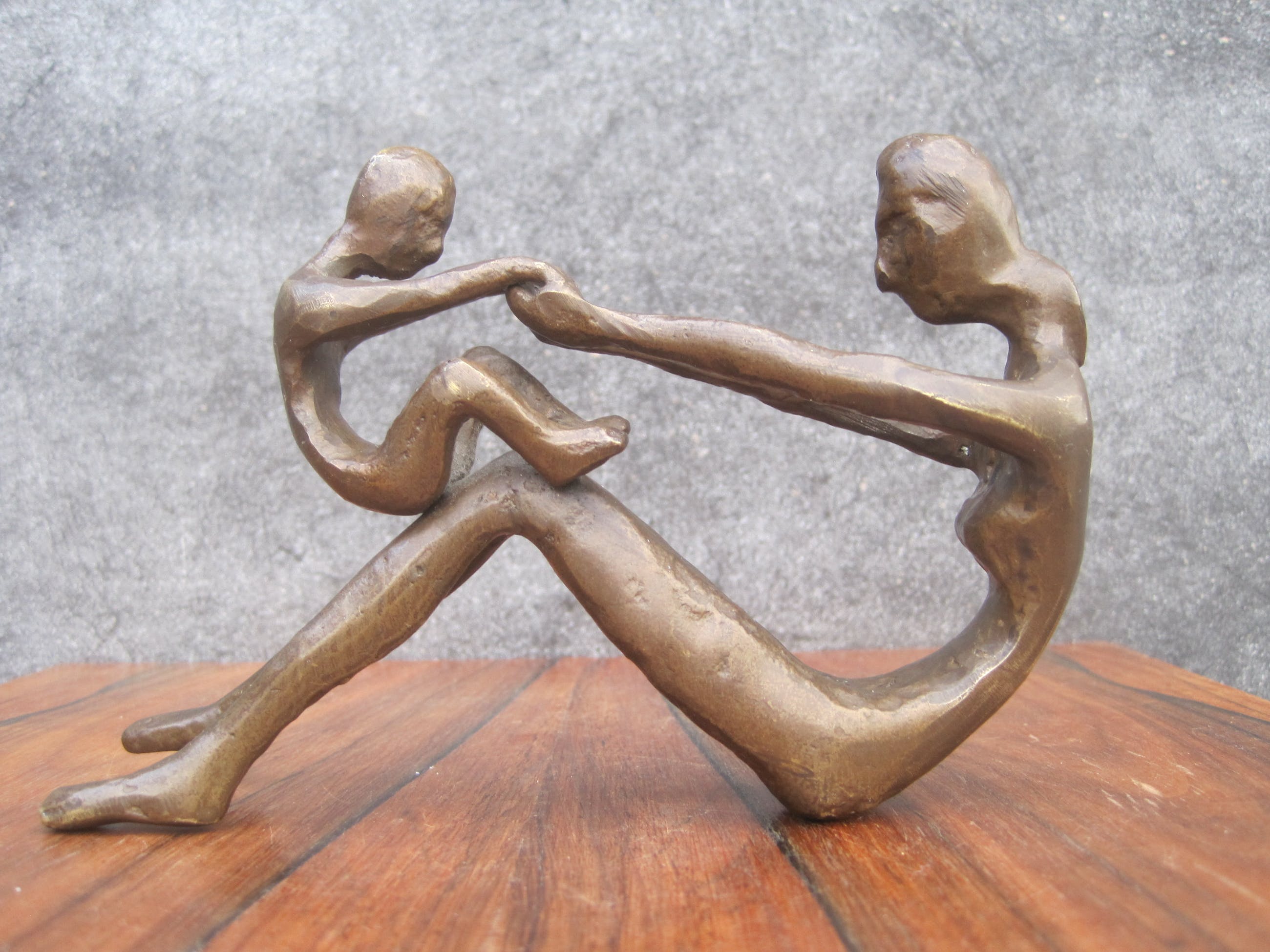 Een vertederend beeldje van een moeder met haar kind. Een zwaar massief bronzen beeldje. Het beeldje is niet gesigneerd.
